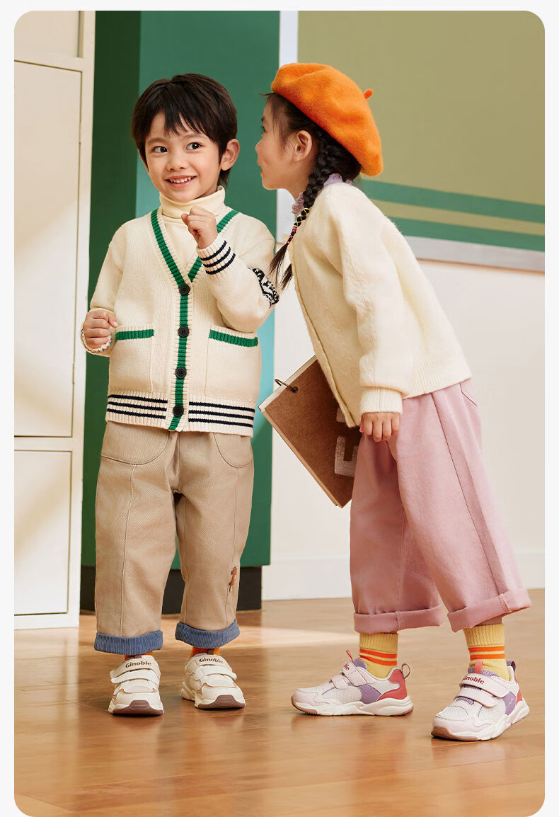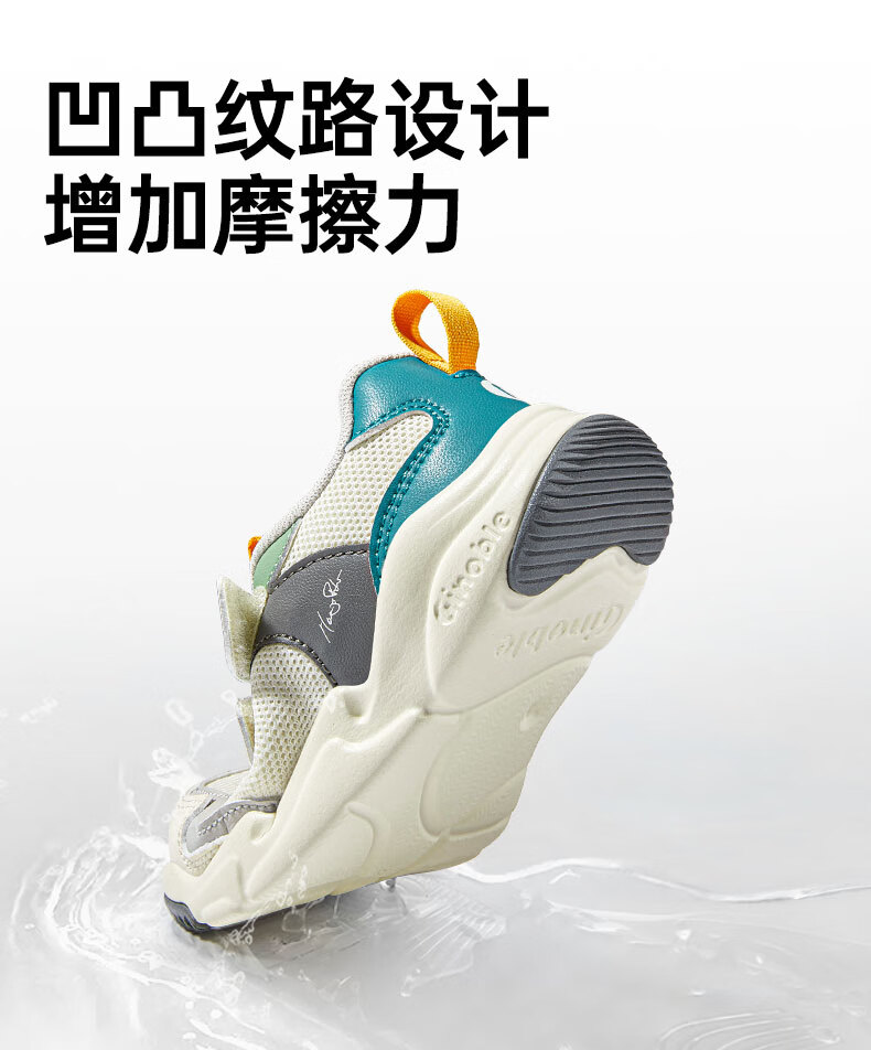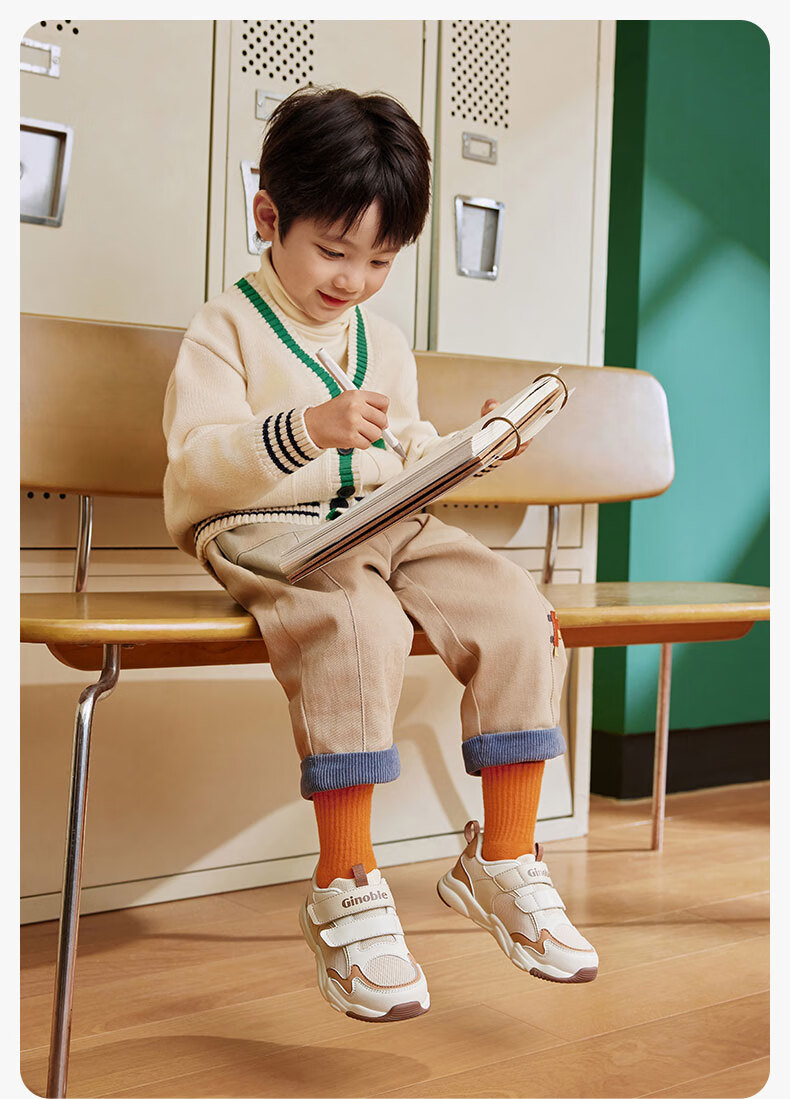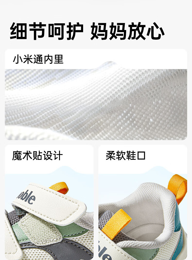 基诺浦男女童宝宝学步鞋 春秋透气幼儿童鞋 时尚百搭儿童机能鞋GY1610 象牙白/水草绿/灰色 29 185mm 适合脚长181-190mm