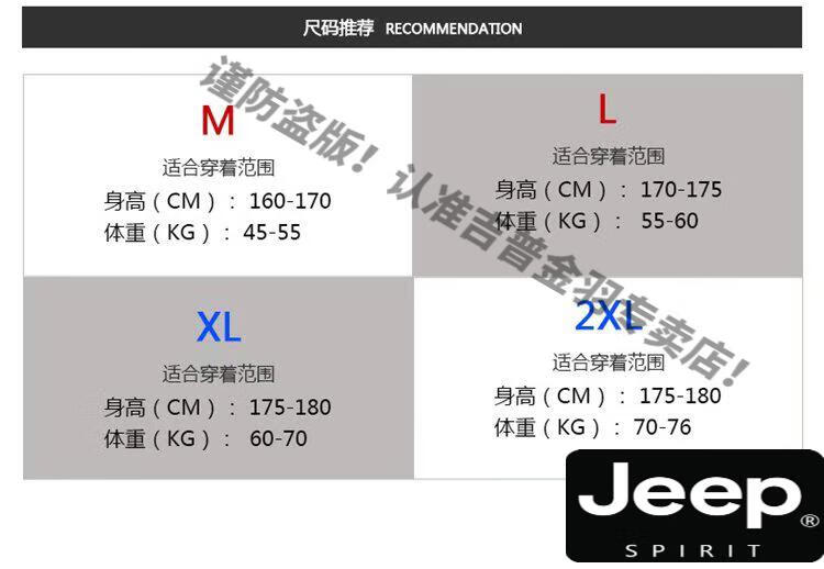 China (cm) 165 / 88-90 170 / 96-98 175 / 108-110 180 / 118-122 185 / 126-130