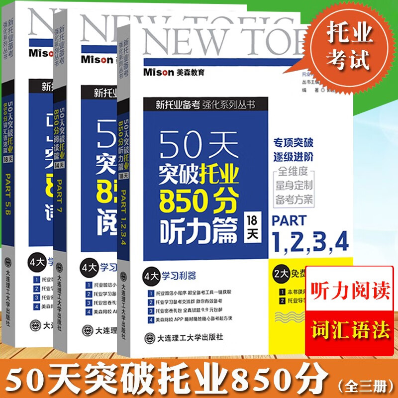 美森教育50天突破托业850分 听力阅读词汇语法篇Part1234567三册大连理工大学出版社TOEIC新托业考试托业强化练习托业全真题库真题