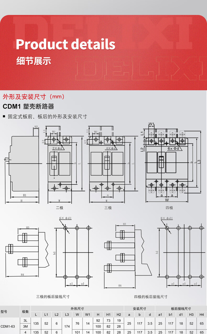 德力西(DELIXI)德力西DELIXI塑壳断路器CDM1空气开关100A 250A 400A 630A空开NM1 3P 500A