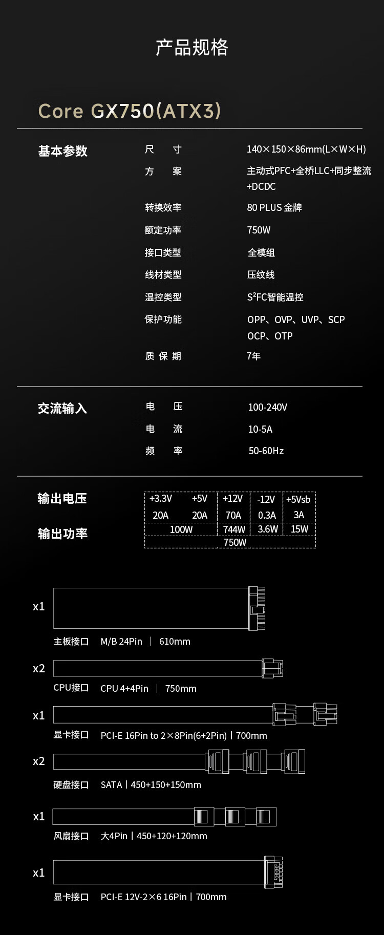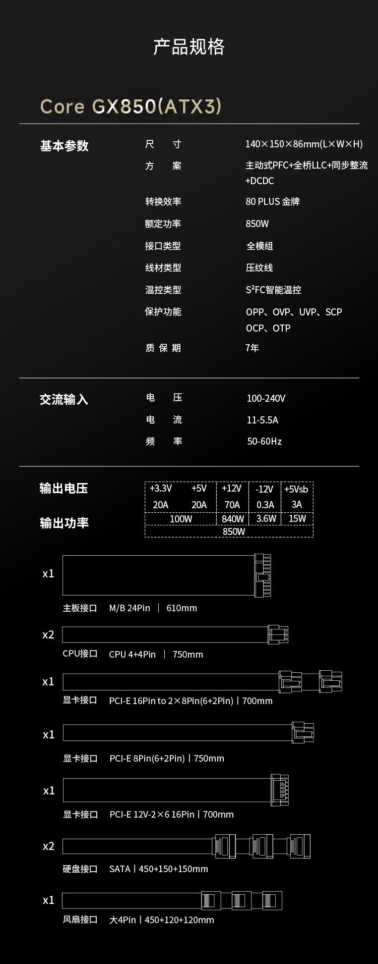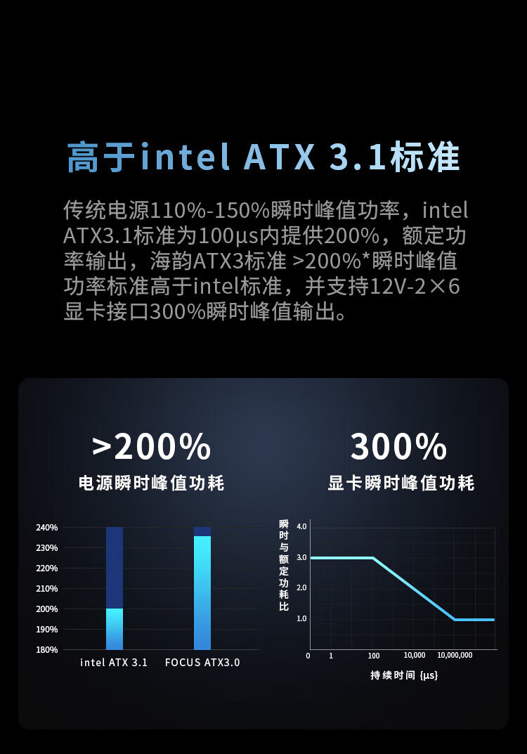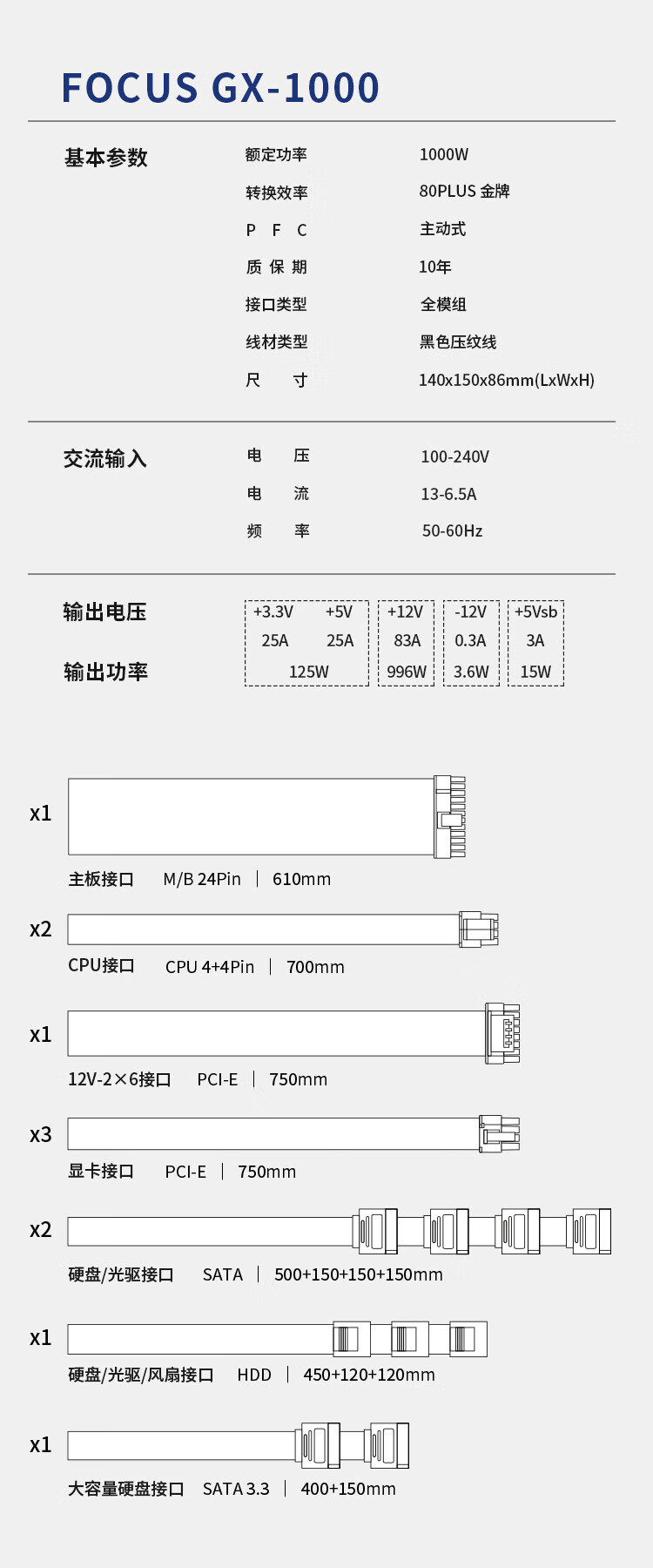 海韵新款ATX3(2024)海韵电源FOCUS GX1000 850 750ATX3金牌全模全日系电容压纹线原生12V-2×6支持5090 新版FOCUS GX1000 ATX3(2024)