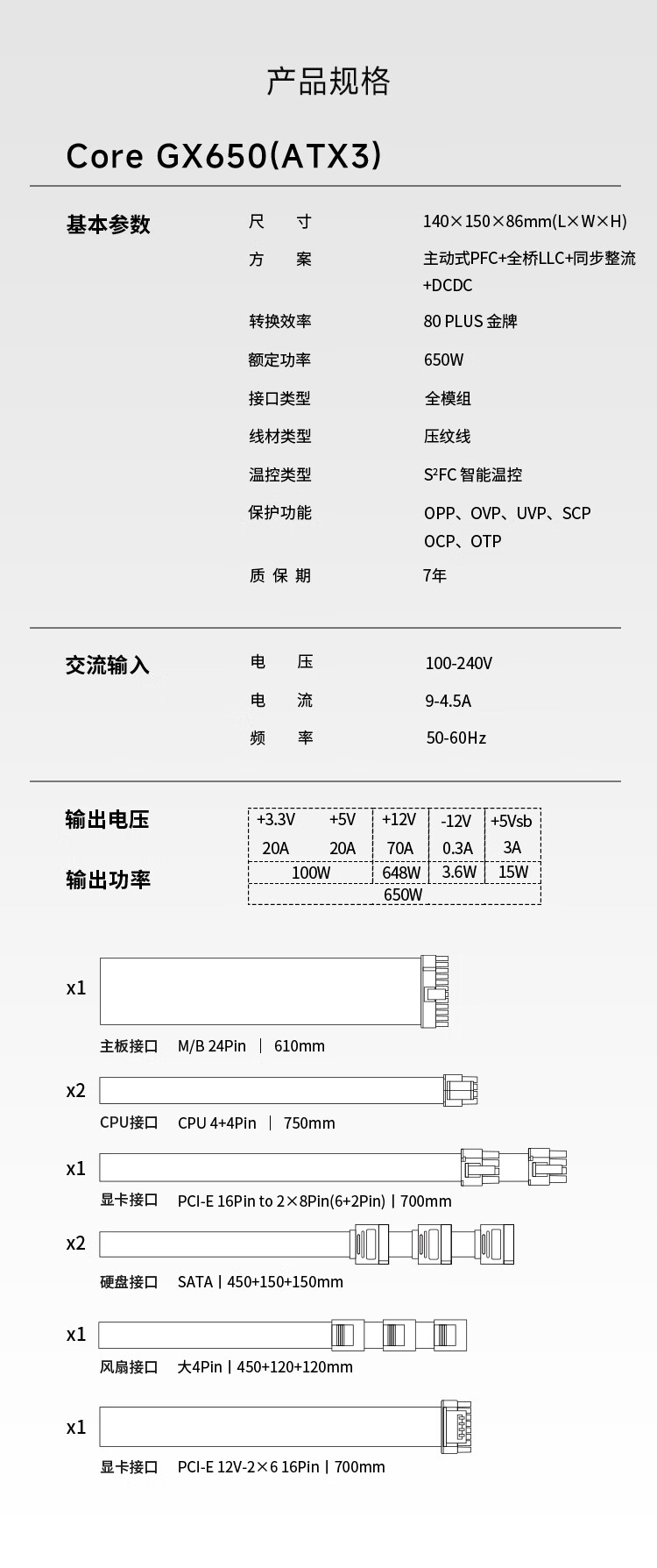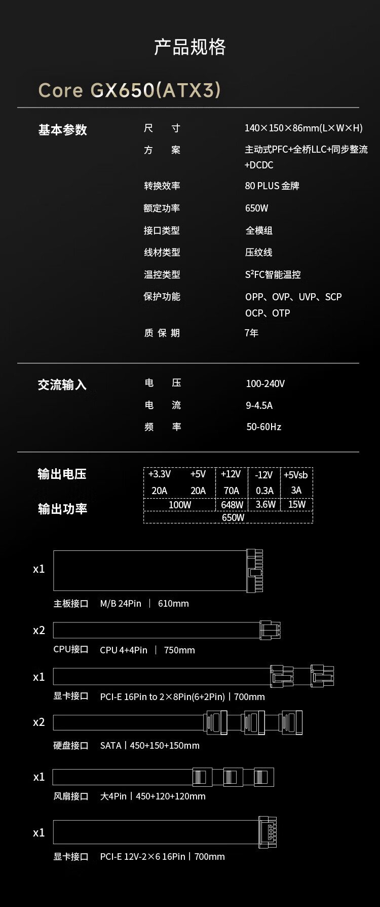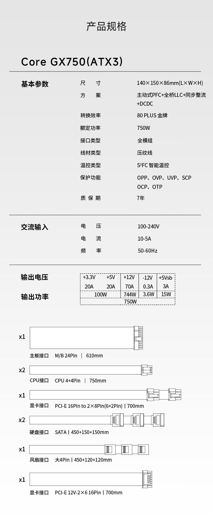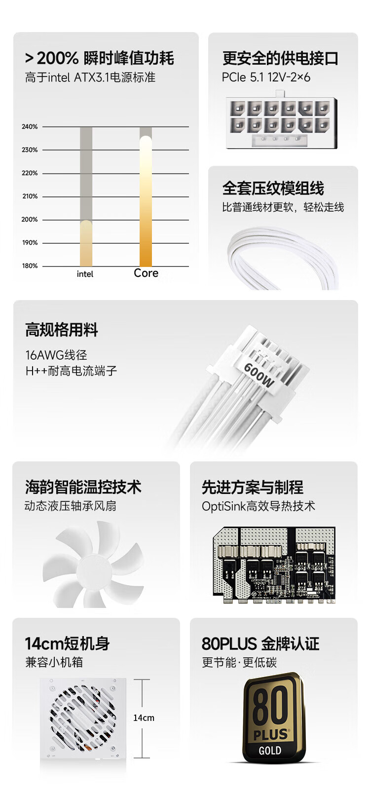 海韵新款ATX3(2024)海韵电源FOCUS GX1000 850 750ATX3金牌全模全日系电容压纹线原生12V-2×6支持5090 新版FOCUS GX1000 ATX3(2024)