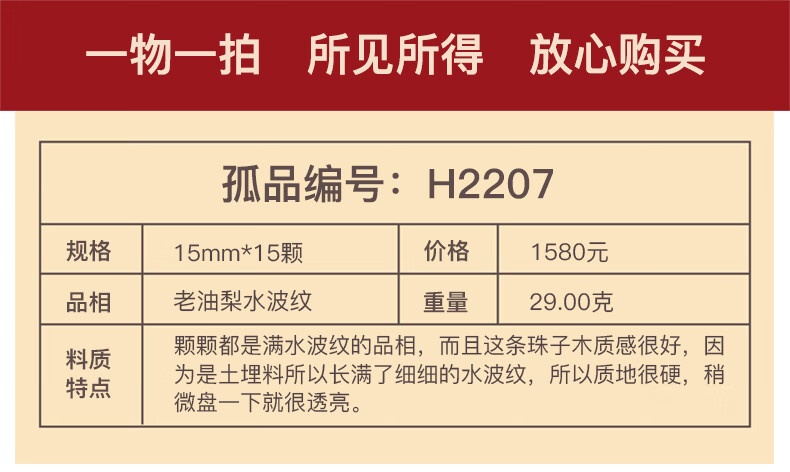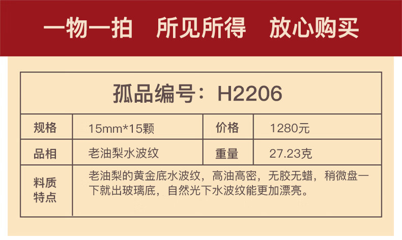 Tanzun old oil pear water ripple 15mm Hainan Huanghuali bracelet with incense yellow sandalwood old material Buddha beads and cultural toy bracelet unique item No. H2206 (with national inspection certificate)