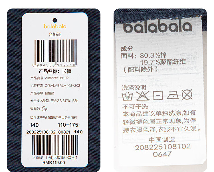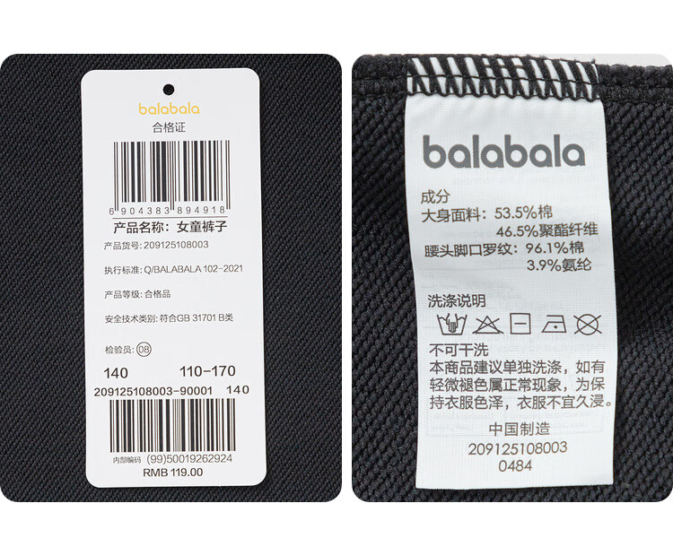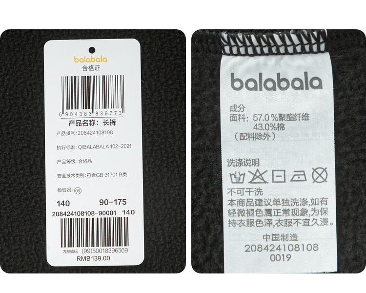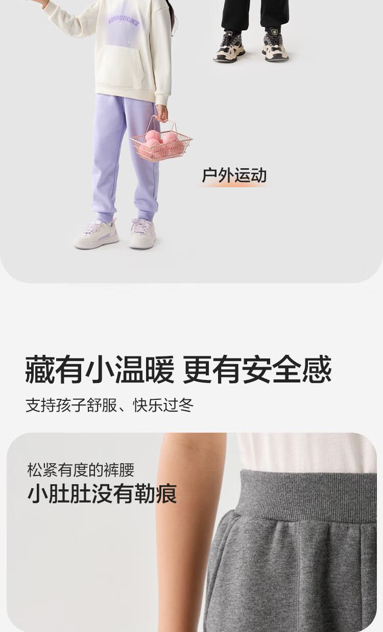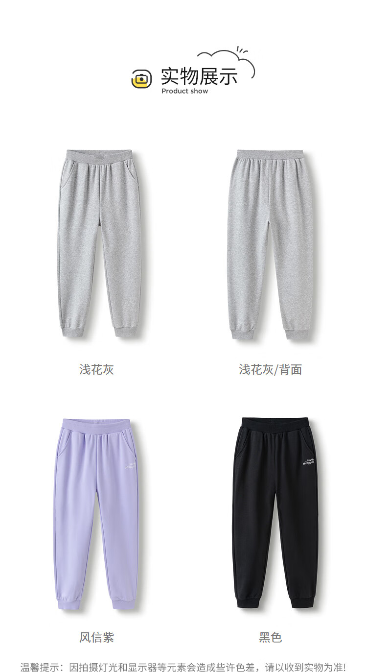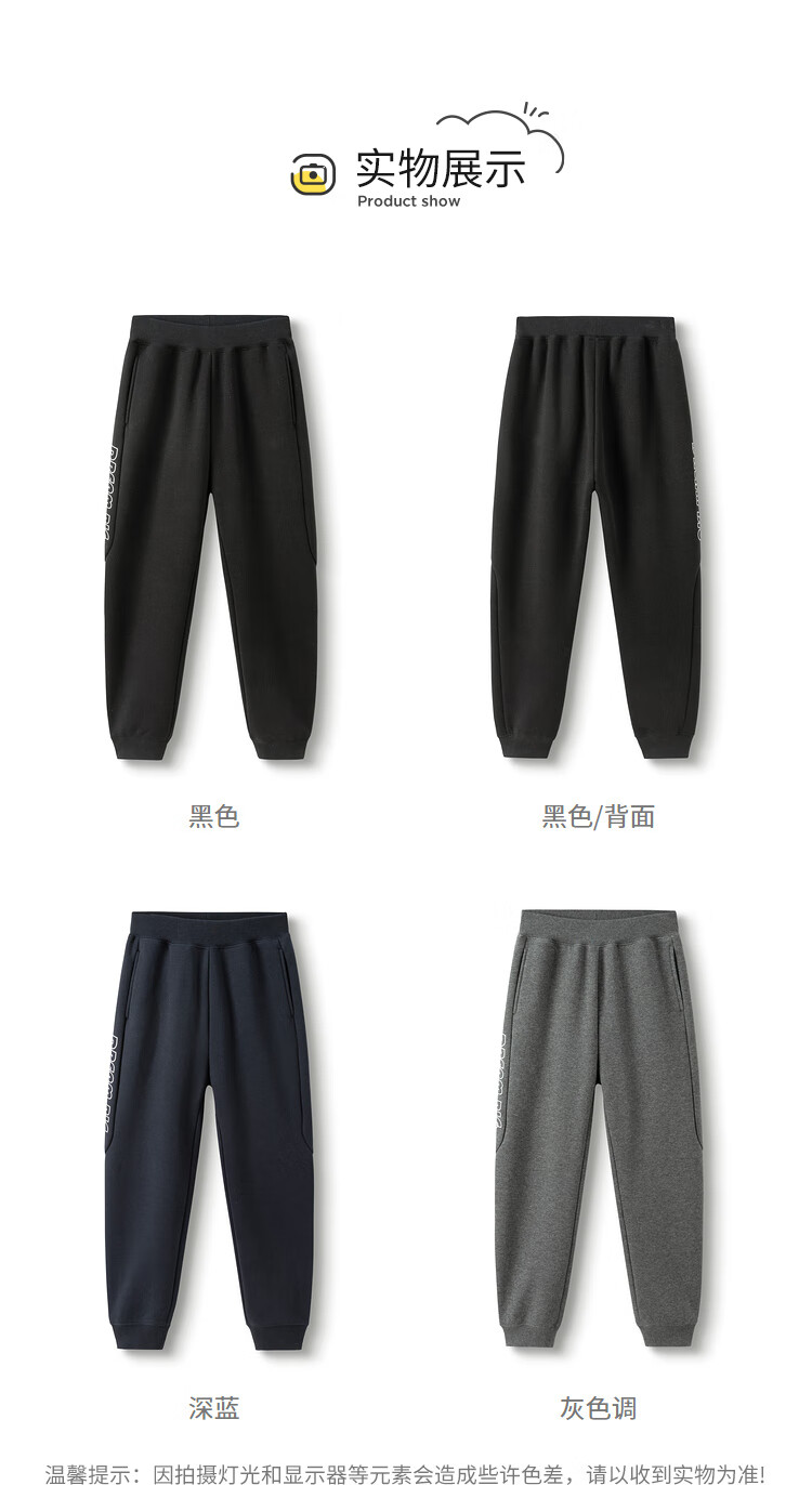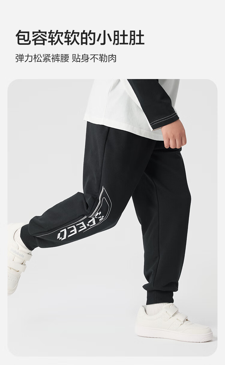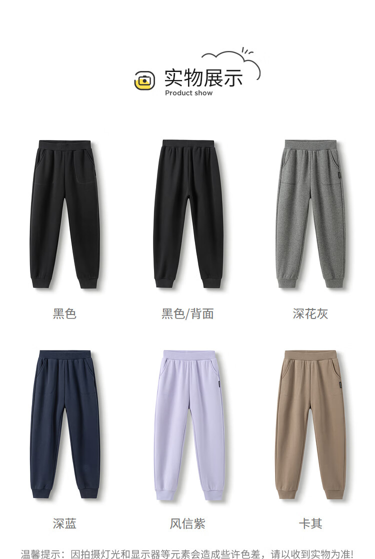 Balabala children's clothing children's pants boys and girls trousers autumn and winter sports versatile casual pants fashion sweatpants leggings trendy winter black - plus velvet to keep warm 130