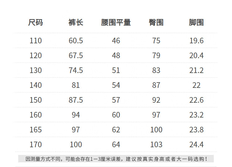 Outseam (cm) 99 cm 101.5 cm 104 cm 106.5 cm 109 cm