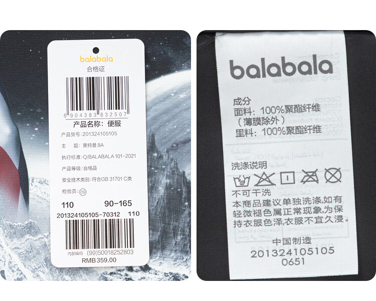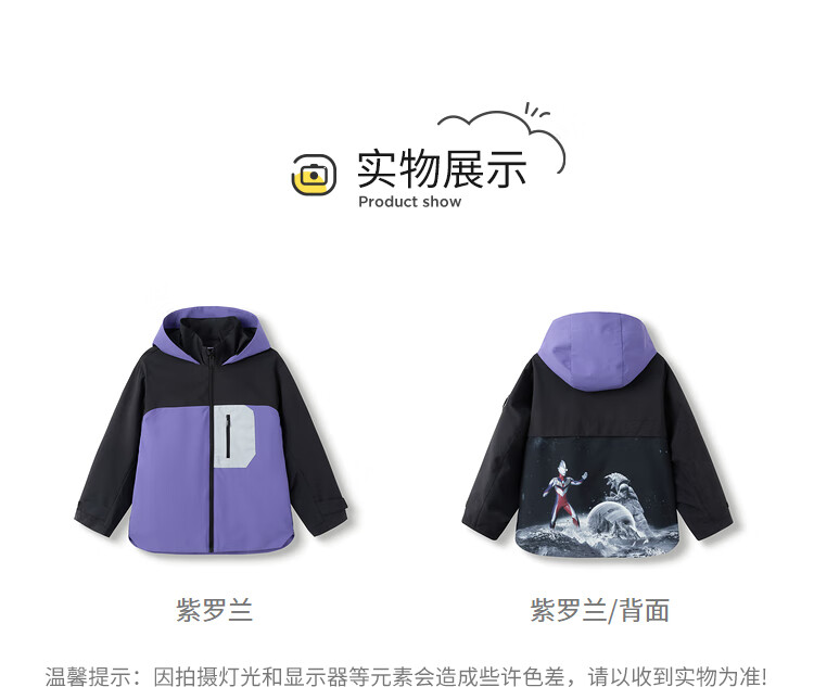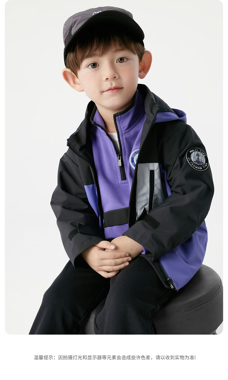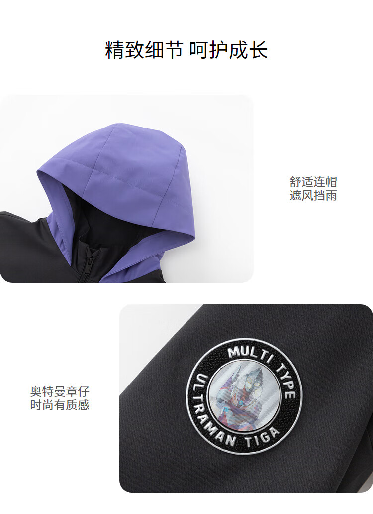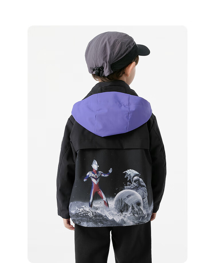 巴拉巴拉【奥特曼IP】童装男童外套秋装连帽上衣防风防水透湿拼接 紫罗兰70312 100