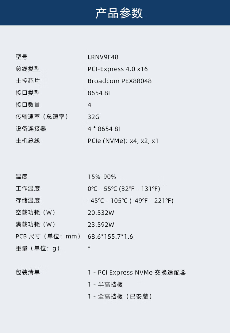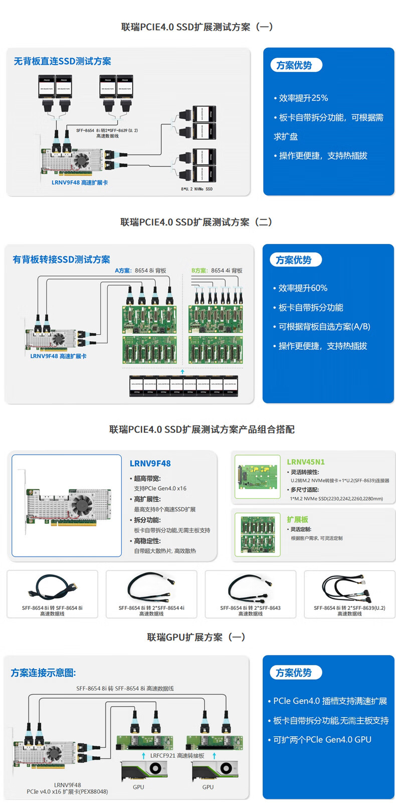 Tarjeta de expansión LINKREALPCIe 4.0 x16 a tarjeta gráfica adaptadora de disco duro U.2 de 8654 8I NVMe integrada de 4 puertos PEX88048 sin dividir para expandir la GPU