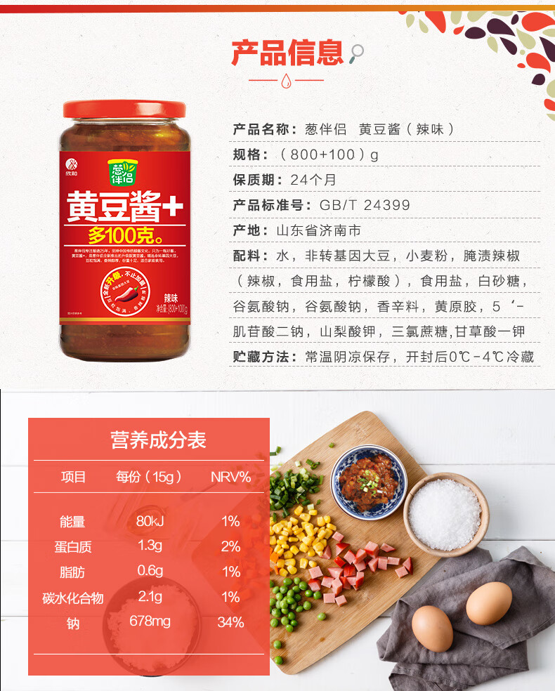 欣和( Shinho)葱伴侣原味黄豆酱原酿豆瓣酱 蒜蓉黄豆酱718g*2瓶