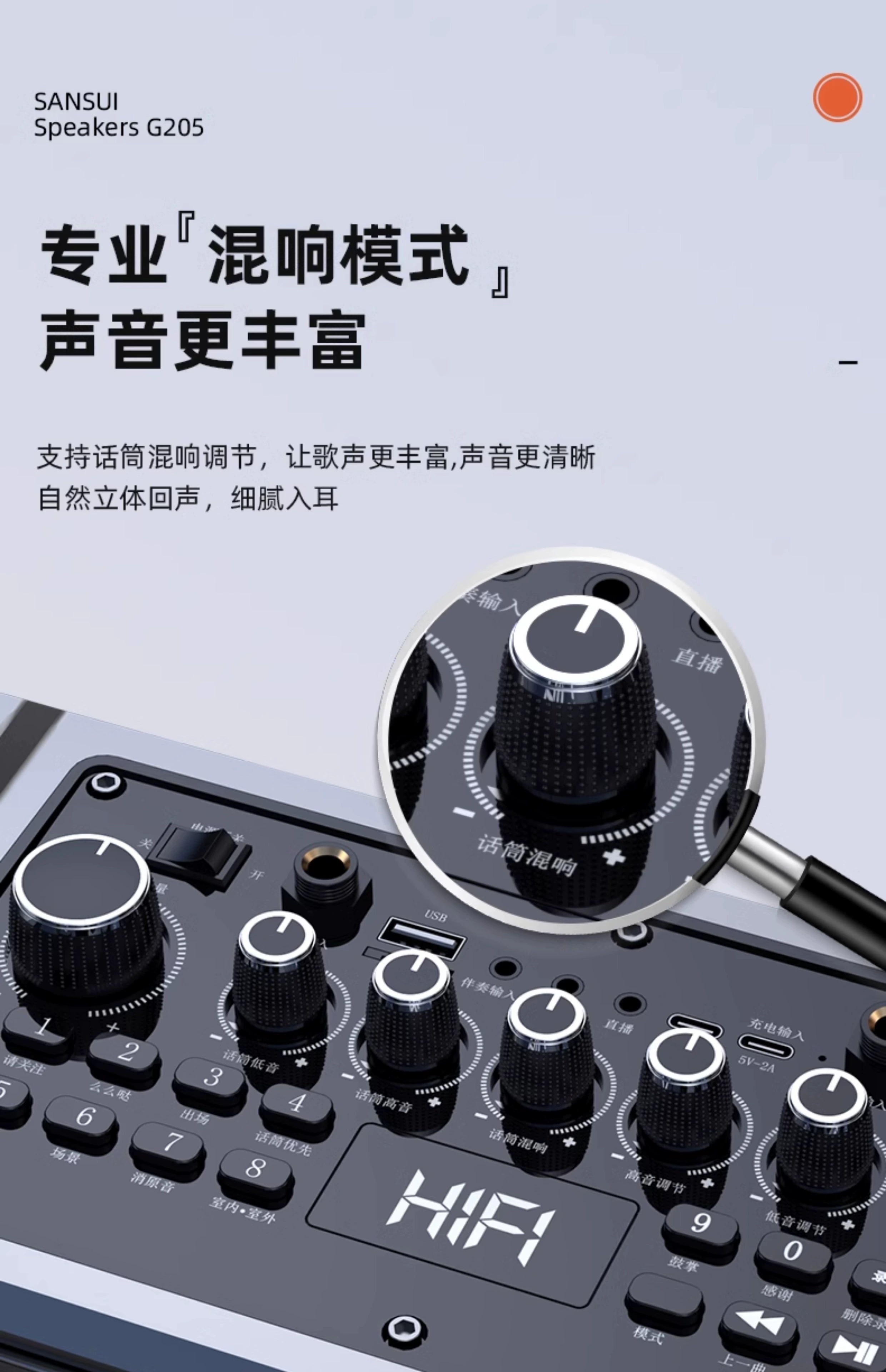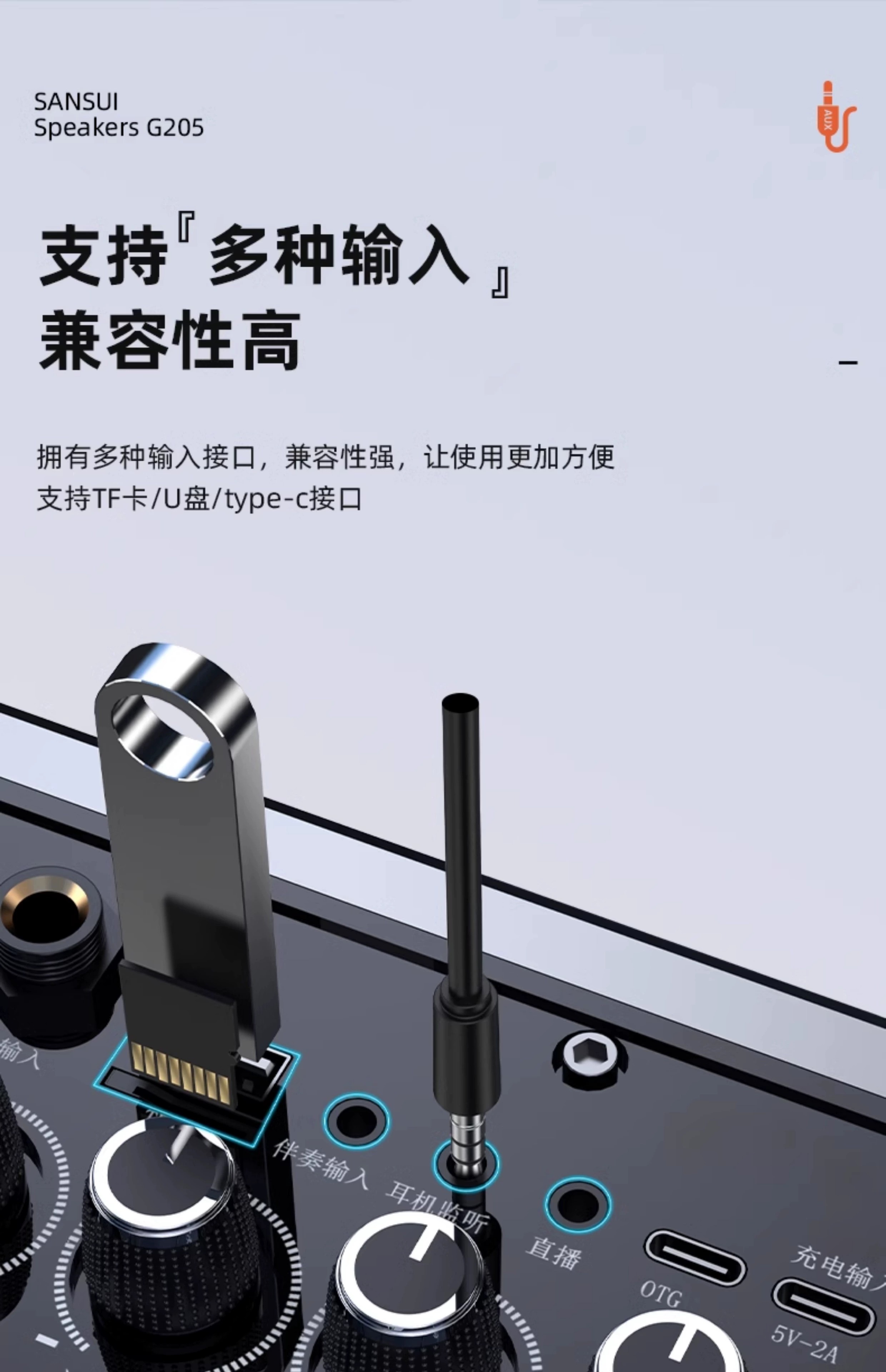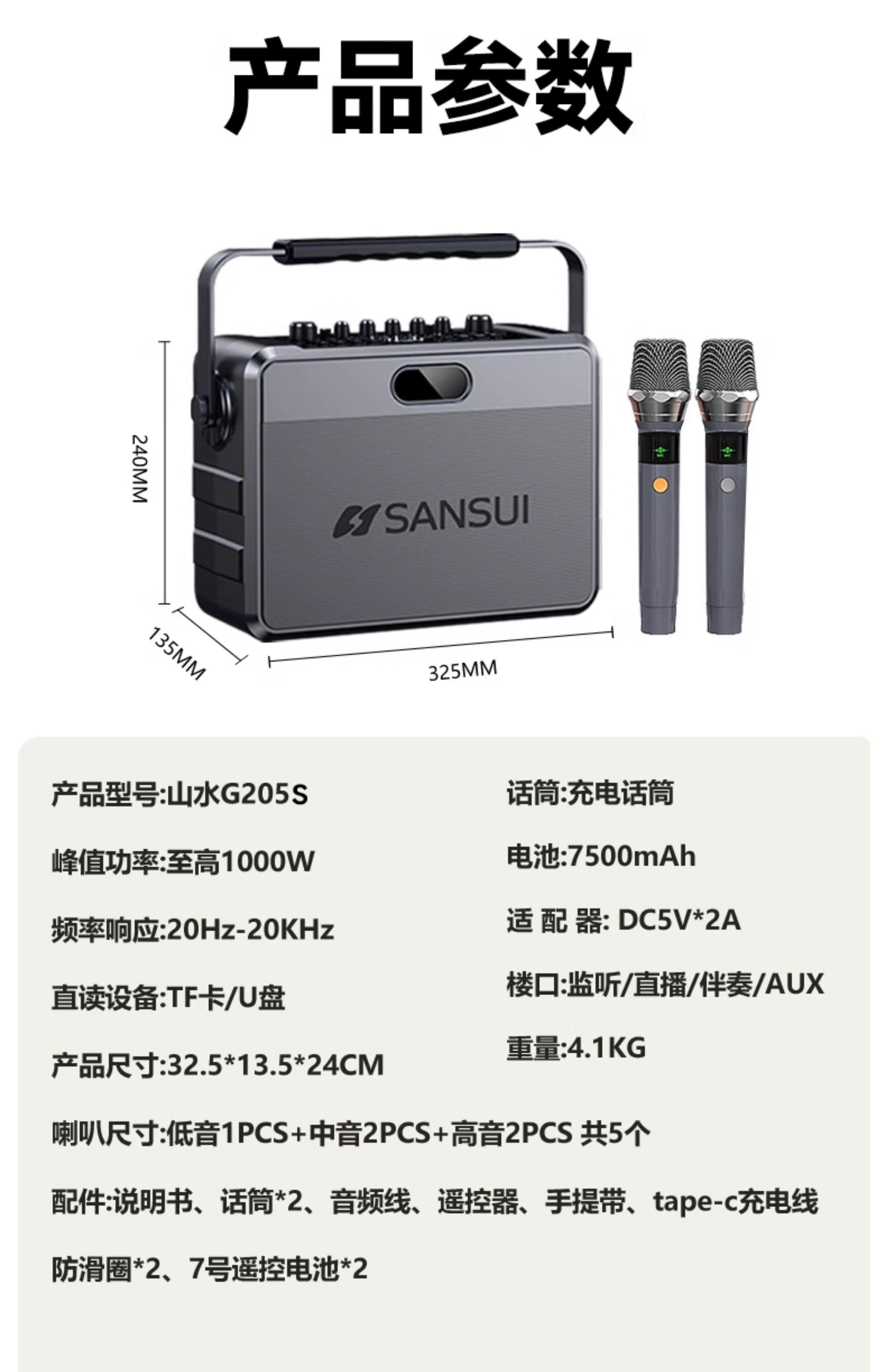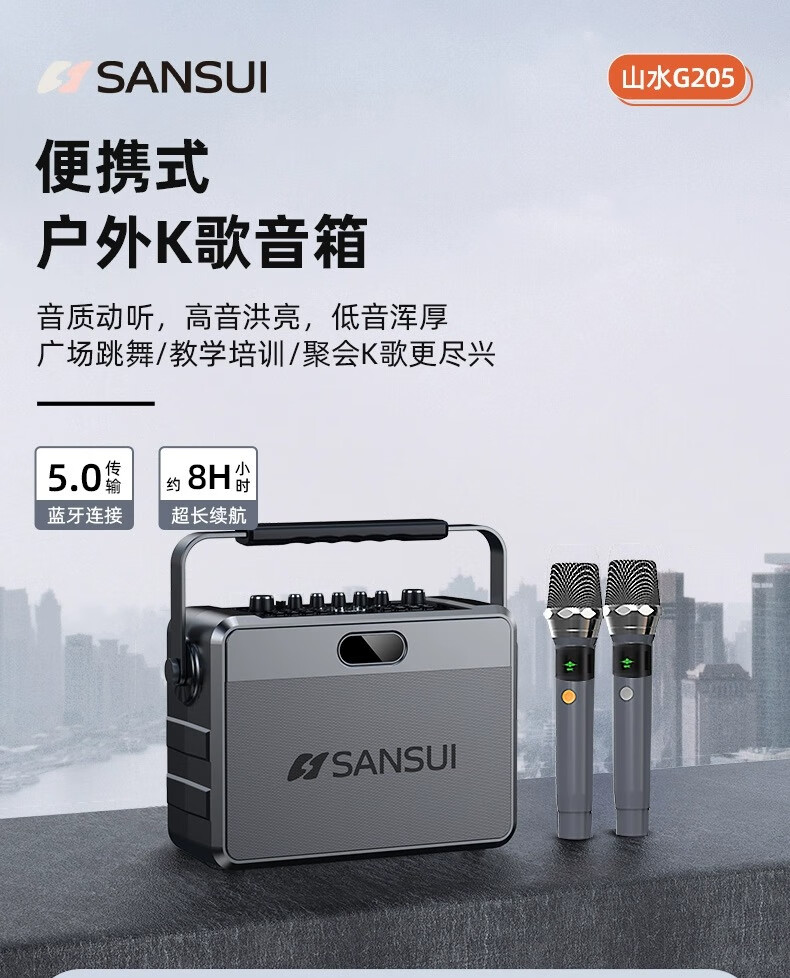 山水G205S音响功放一体机2025新款全新升级家用户外便携手提式直播声卡大功率广场舞音响无线蓝牙音箱 山水G205S旗舰版【配音响包】
