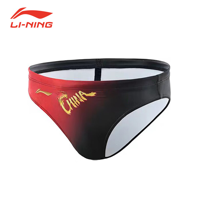 李宁国家跳水队泳裤 巴黎战袍男士专业竞速青少年竞技训练速干泳裤 黑红 M