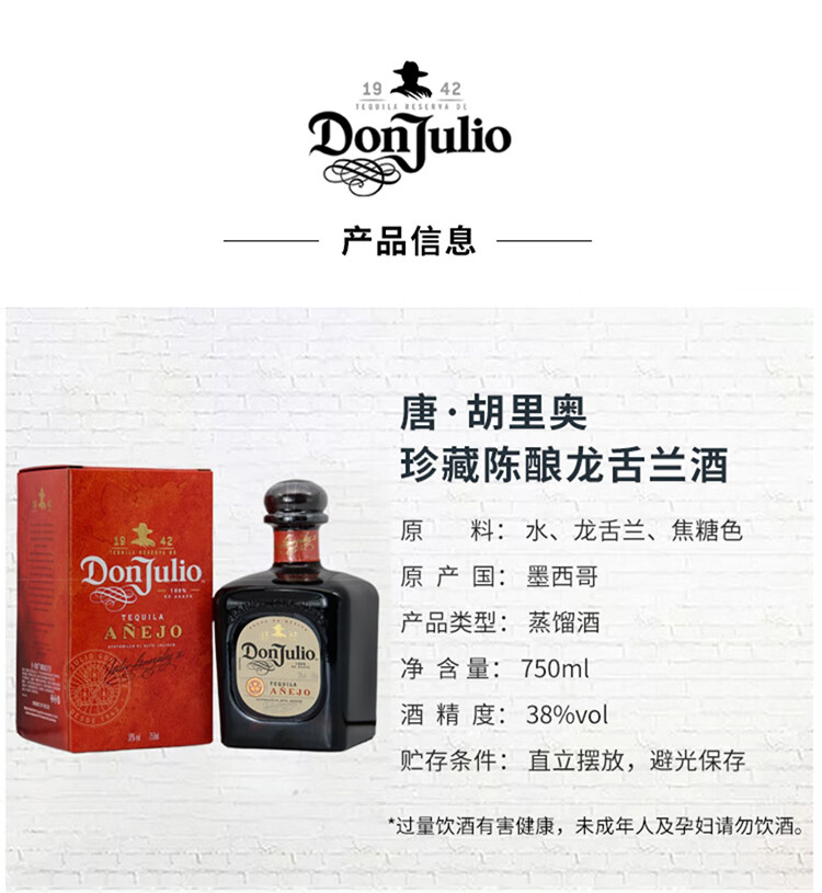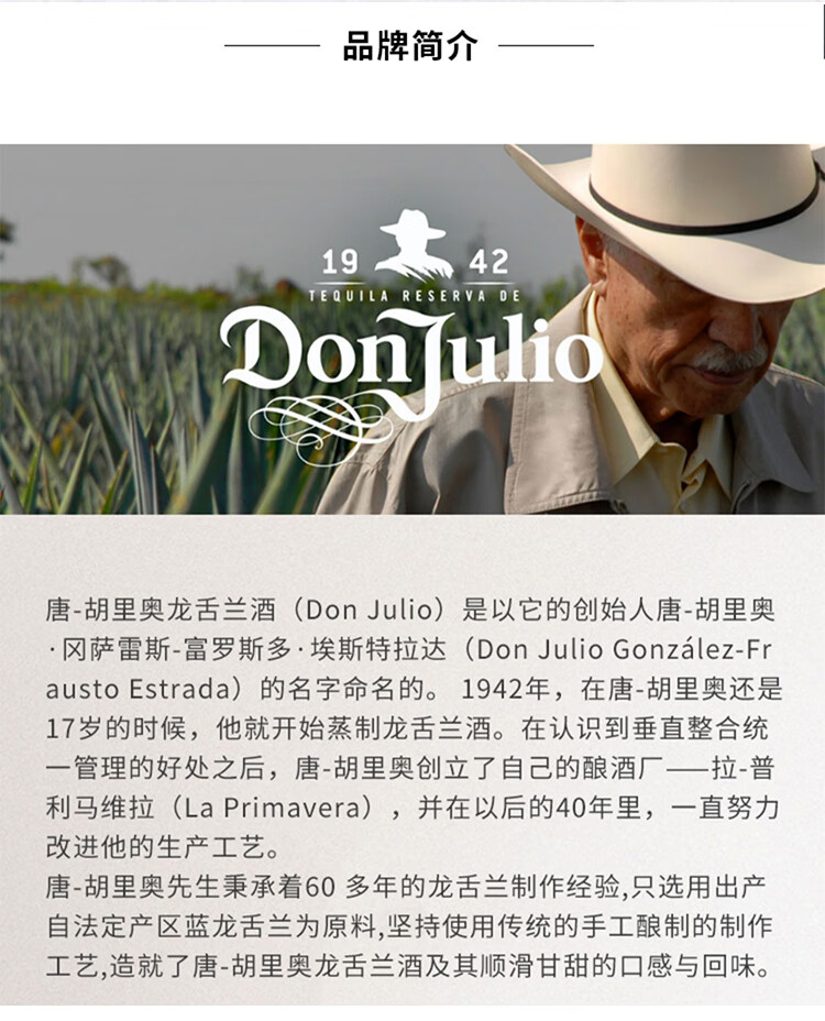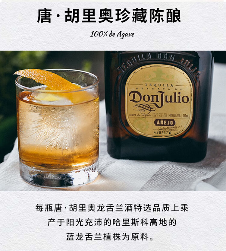 唐胡里奥龙舌兰白标银标金标墨西哥进口调酒基酒洋酒烈酒 唐胡里奥珍藏白标 750mL 1瓶