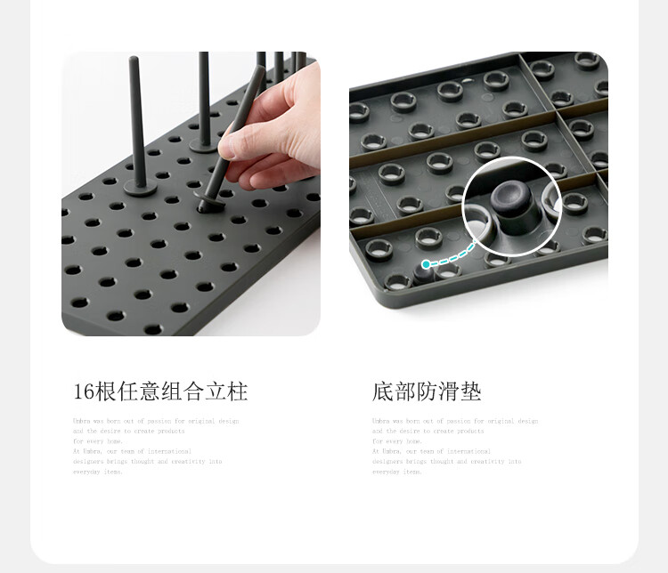 Umbra加拿大杯架厨房置物架家用水杯倒挂沥水架子茶杯玻璃杯收纳沥水架 白色/16支立柱/无包装