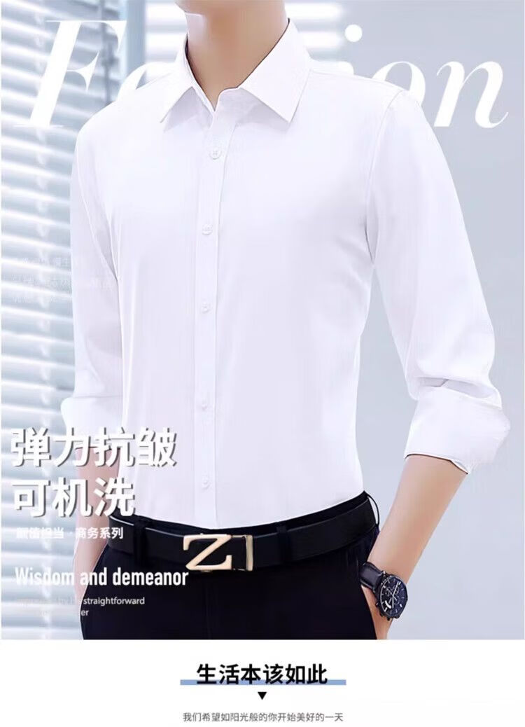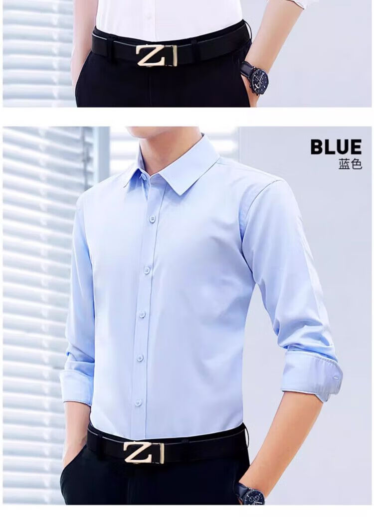 罗蒙衬衫男长袖秋冬季商务修身职业正装白衬衣男士休闲免烫上衣服男装 【常规两件装】白色+蓝色 XL (适合115-125斤)