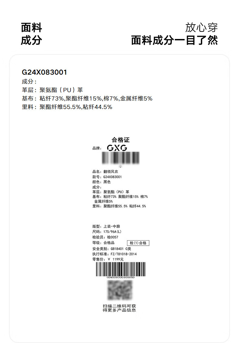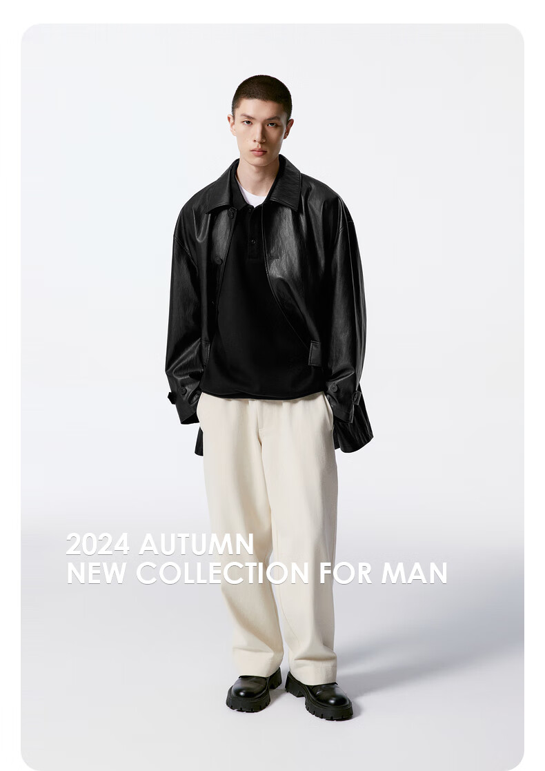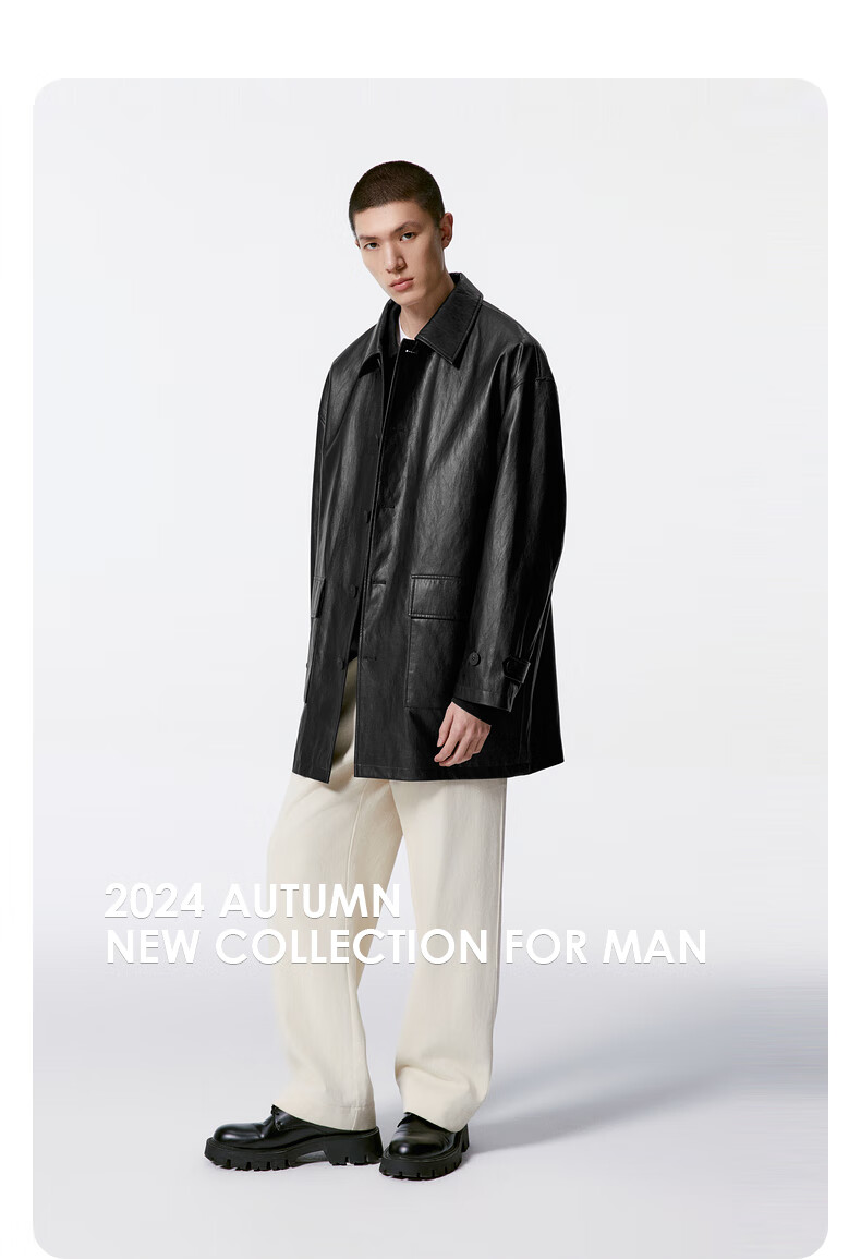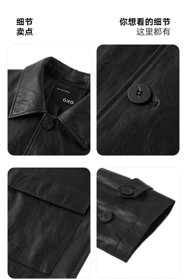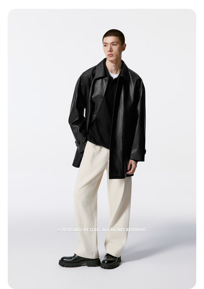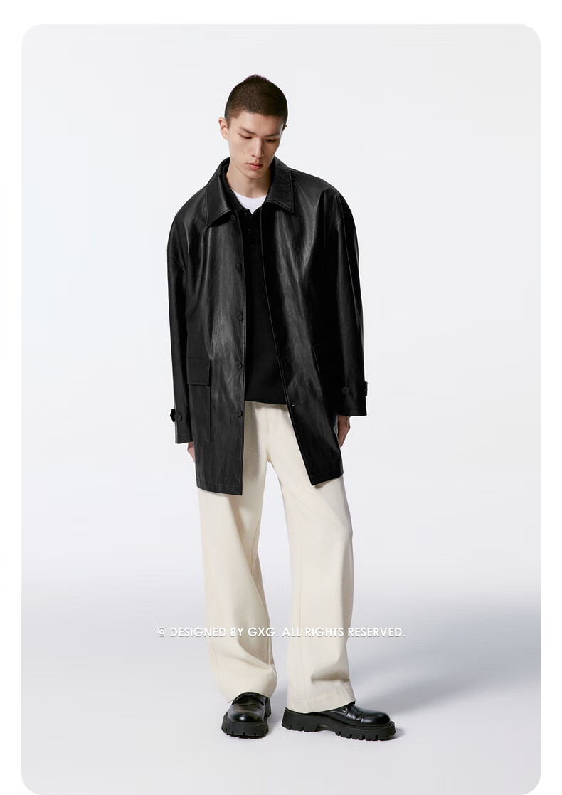 GXG男装 黑色pu皮口袋设计风衣外套男士秋季新品G24X083001 黑色 M