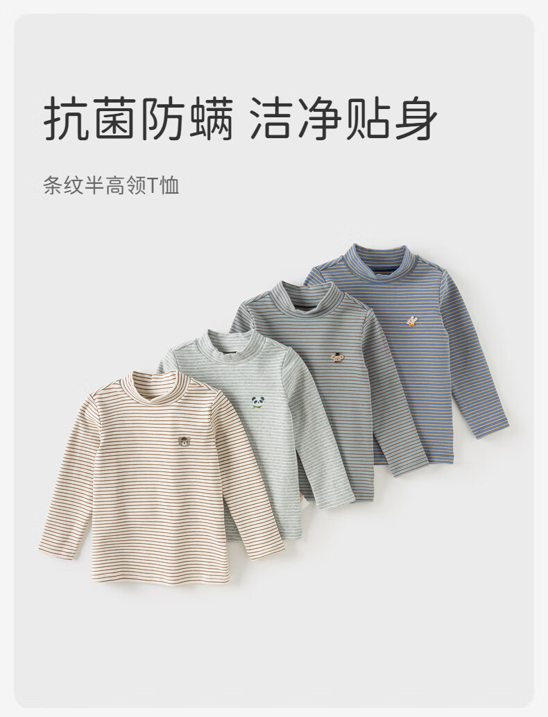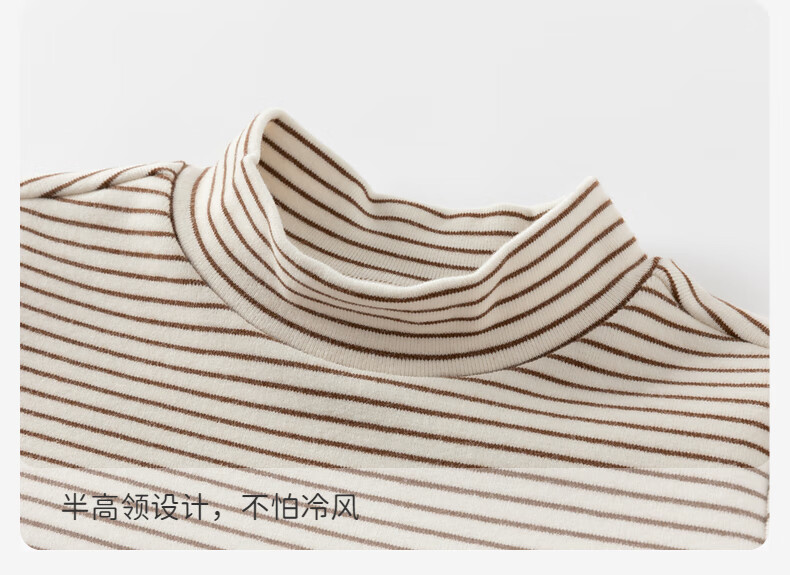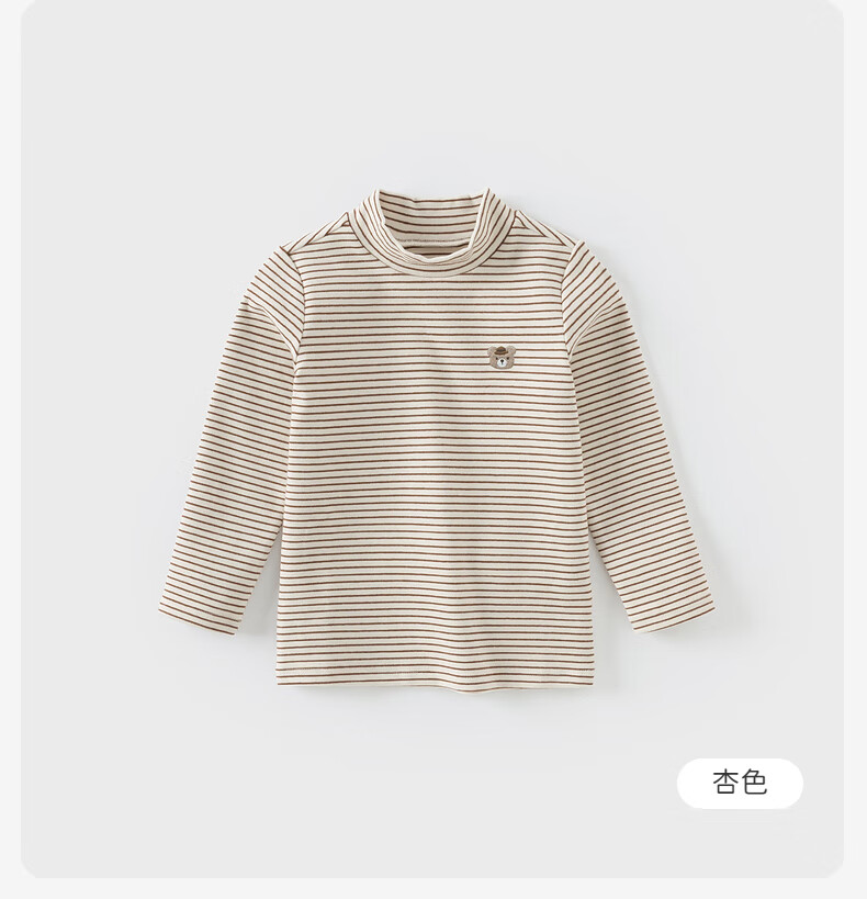戴维贝拉(DAVE&BELLA)秋冬新款小童条纹t恤宝宝半高领上衣男童衣服儿童长袖打底衫 杏色【DB4243492】 100 cm(建议身高90-100cm)