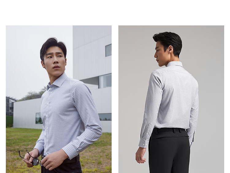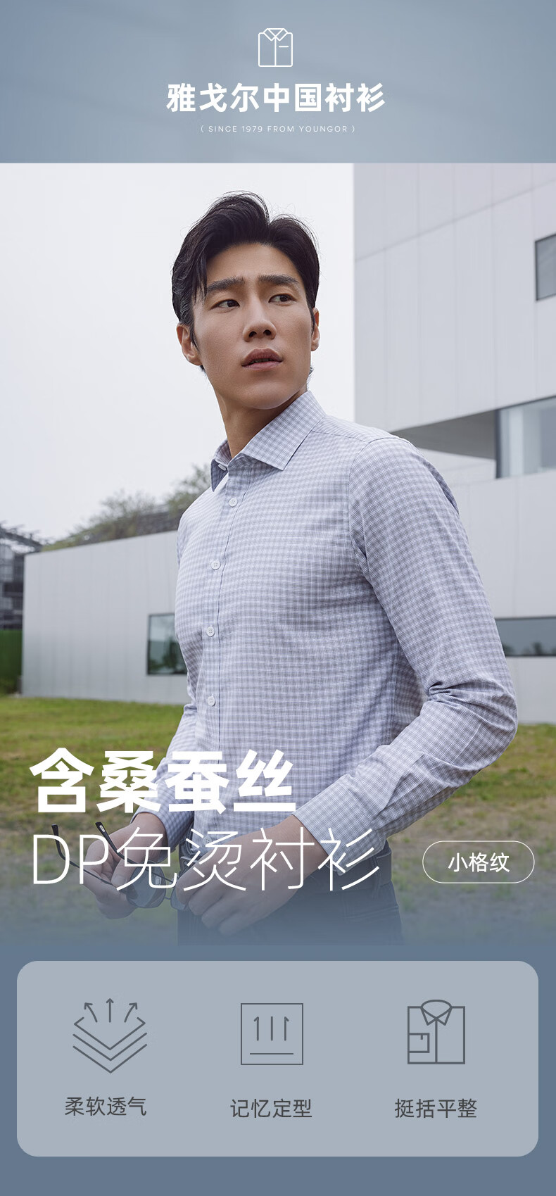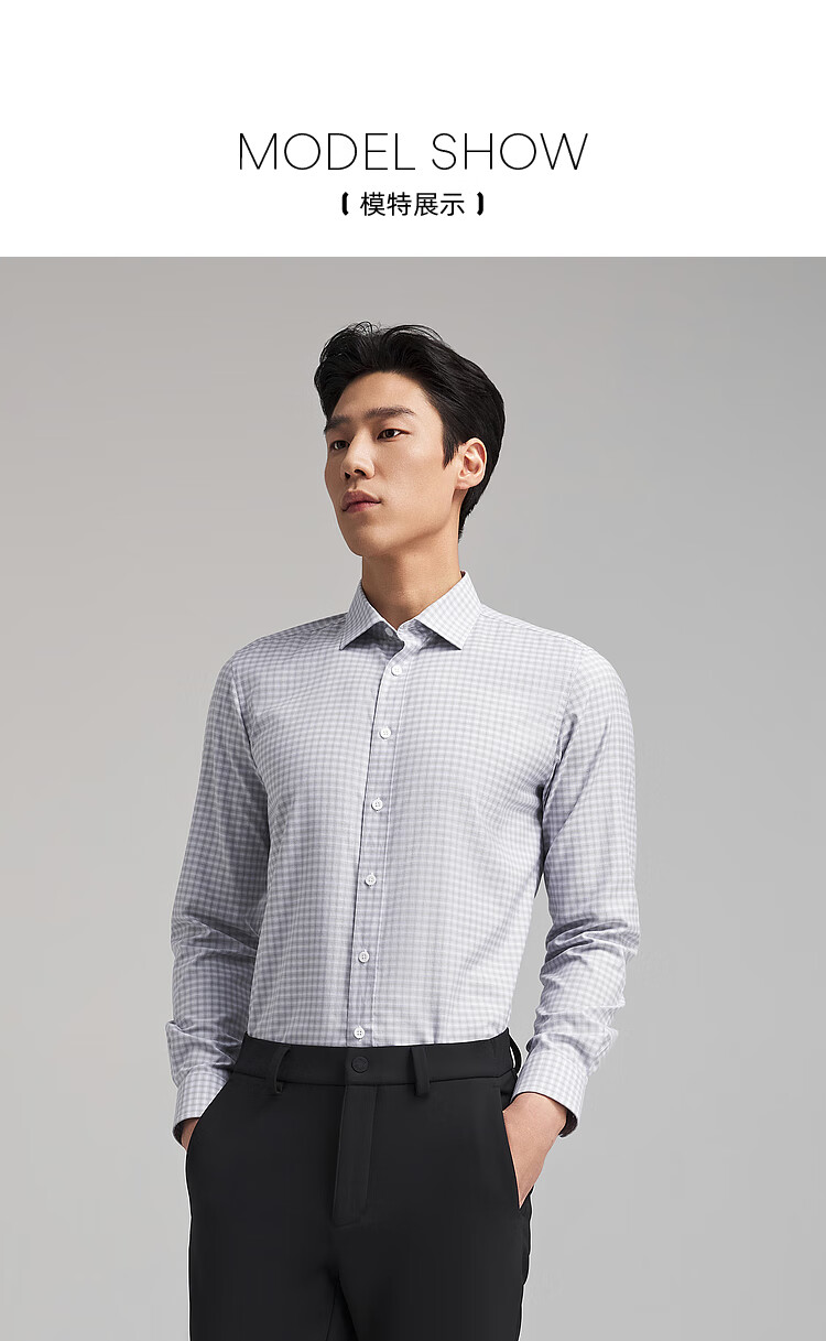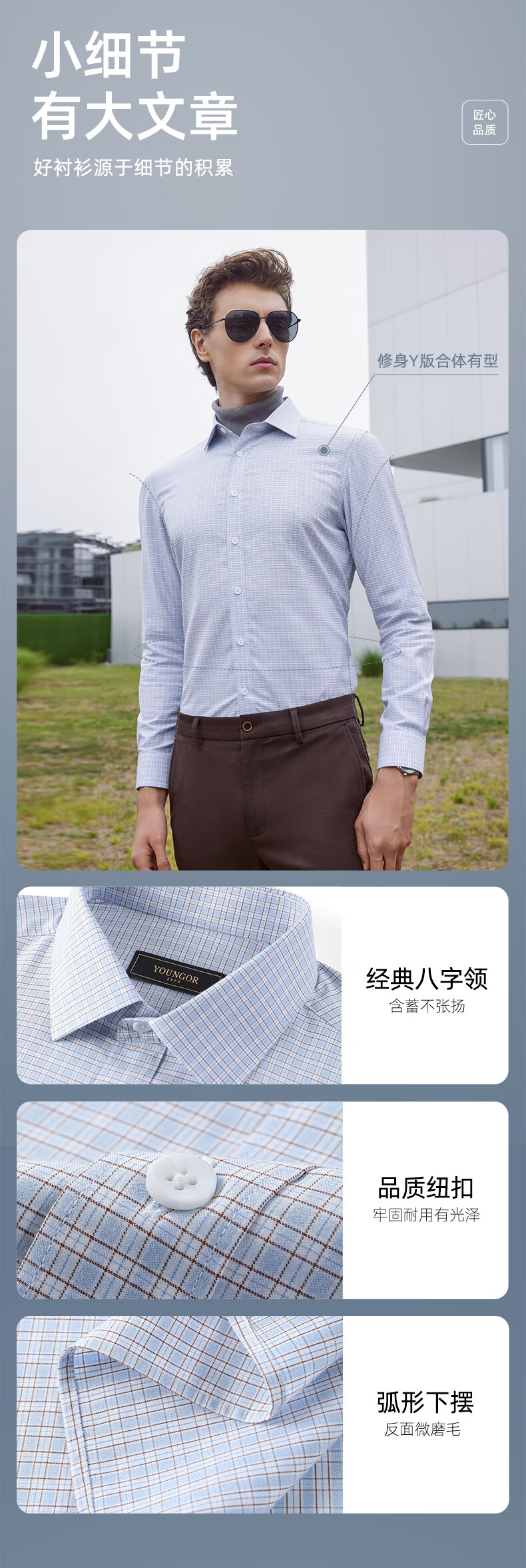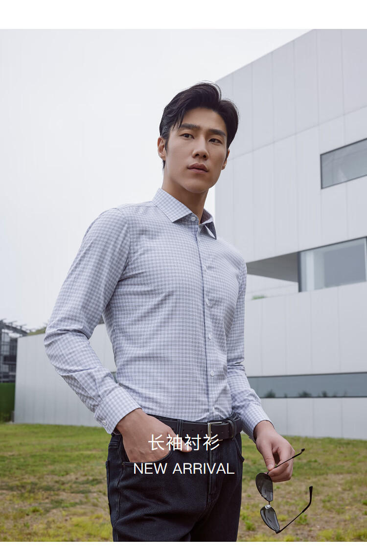 雅戈尔衬衫男免烫衬衫秋冬青年男长袖衬衫全棉格子衬衫 灰色VLDP119723DBY 41