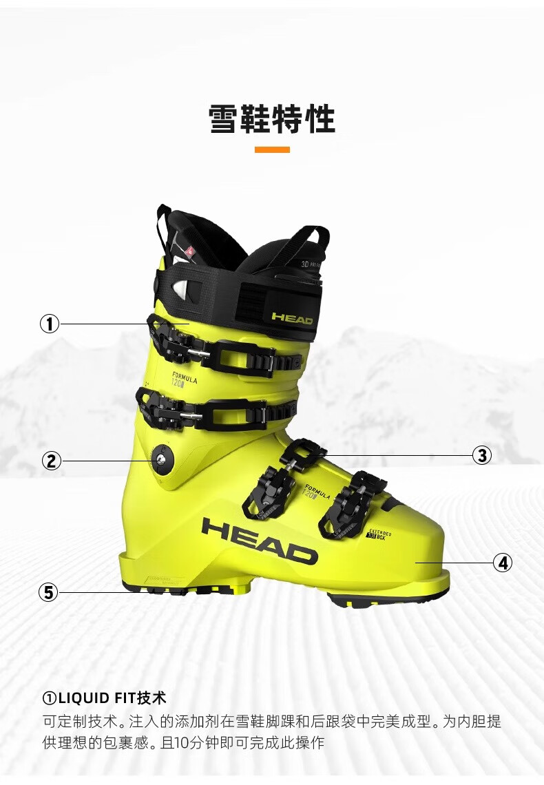 HEAD海德男竞技滑雪双板鞋窄版鞋楦全地形滑雪鞋FORMULA 120 GW 黄色 43.5