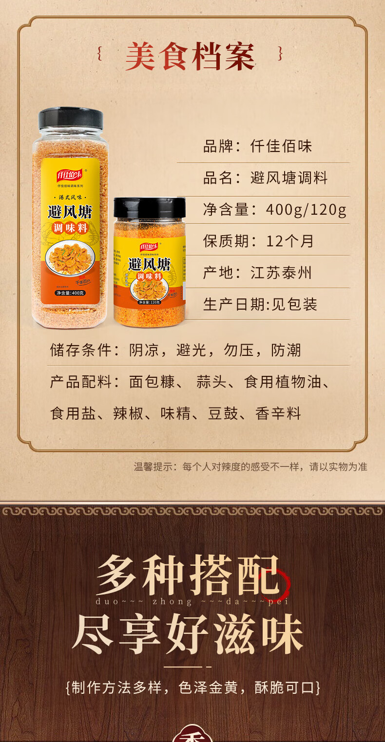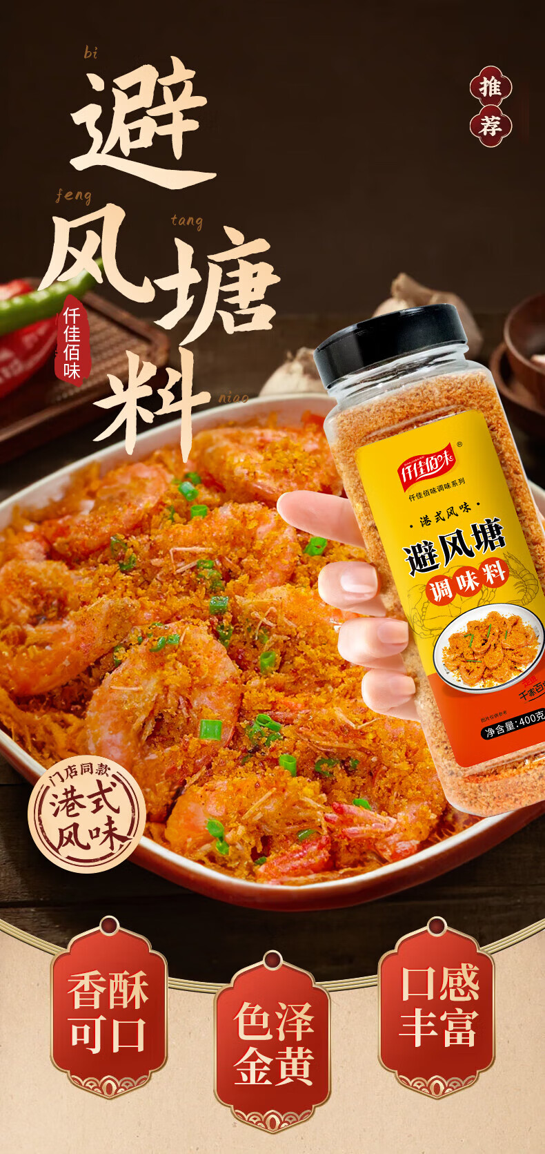仟佳佰味避风塘炒料炒虾炒蟹调料港式蒜香风味调味料面包糠撒粉 避风塘400g*1瓶