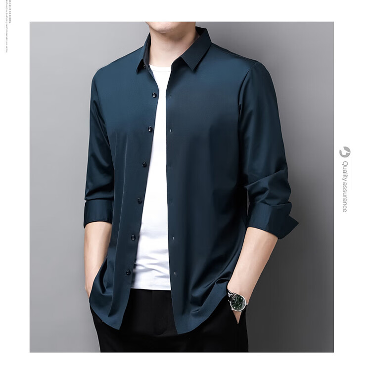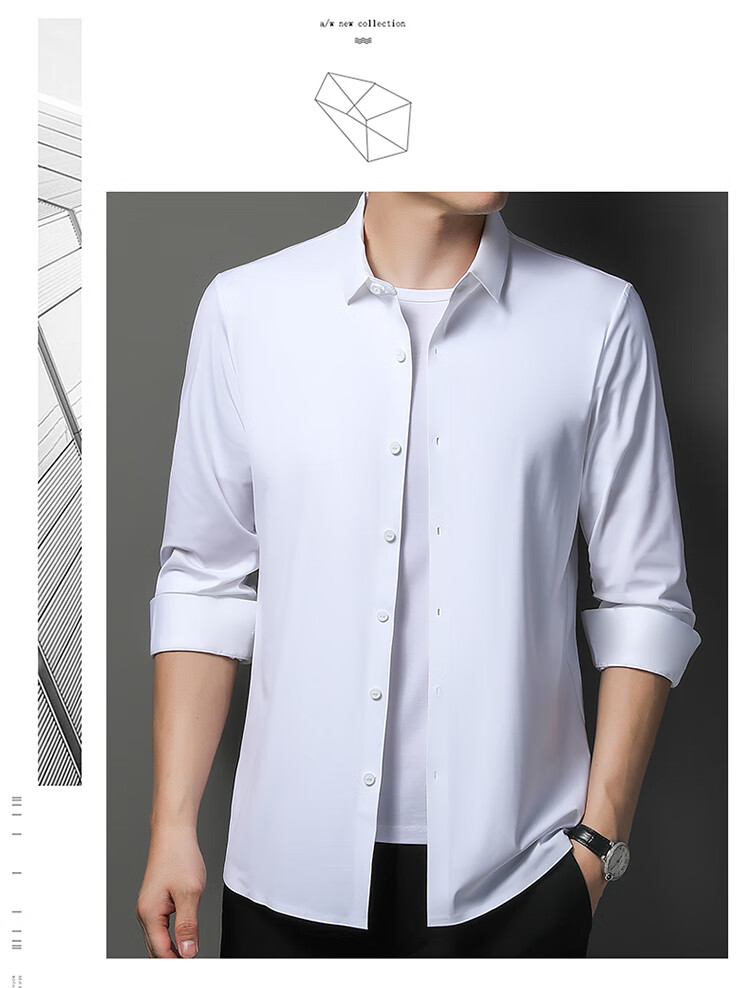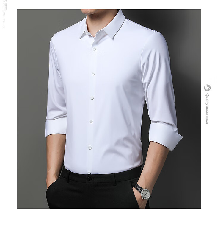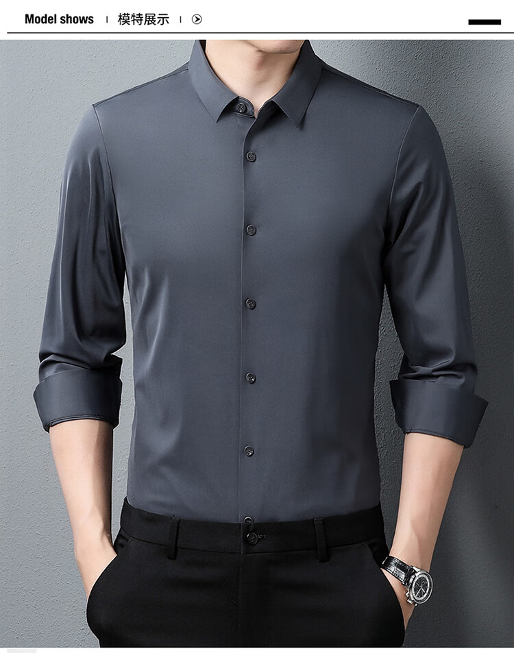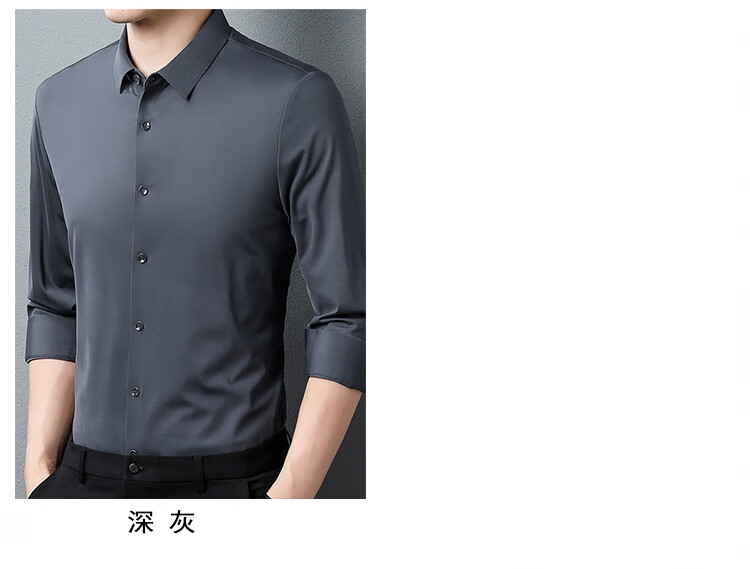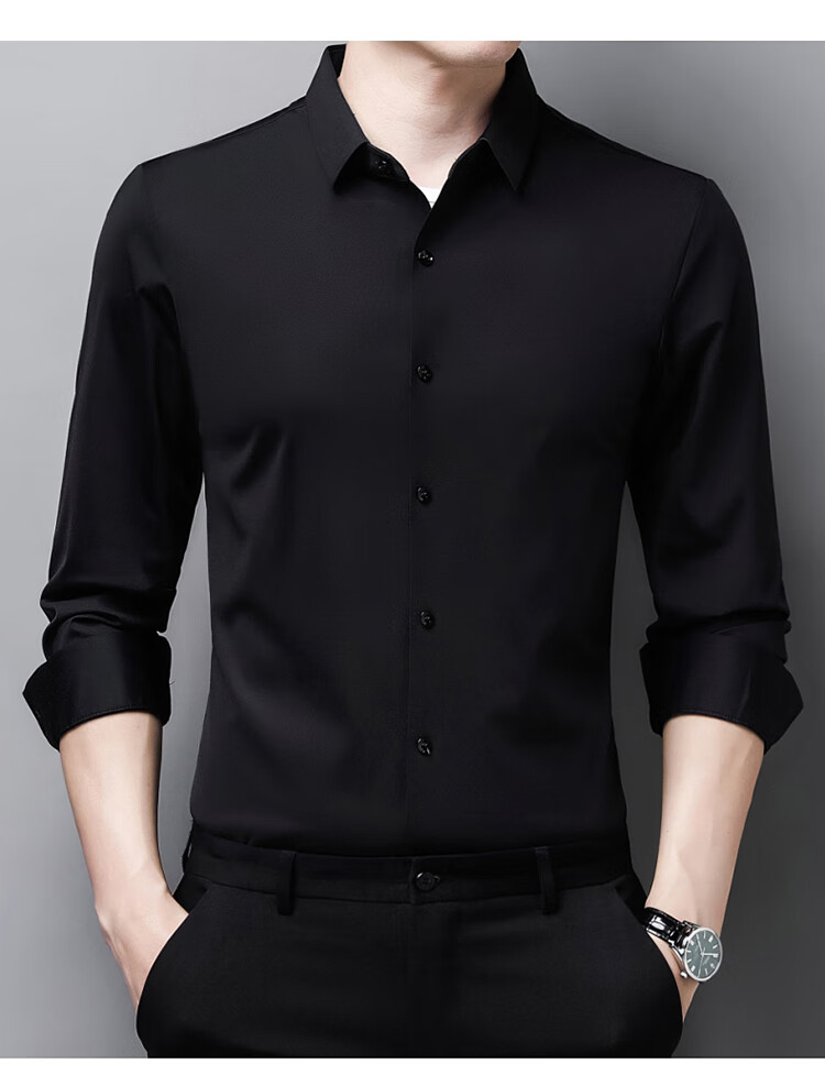 恒源祥无痕免烫衬衫男长袖高级感春秋夏中年商务休闲免烫衬衣男士上衣 1808黑色【款】 常规 XL 175【建议140-155斤】