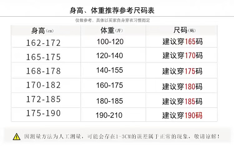 China (cm) 160-165/84-86 165-170 / 88-90 167-172 / 92-96 168-173 / 98-102 170-176 / 106-110