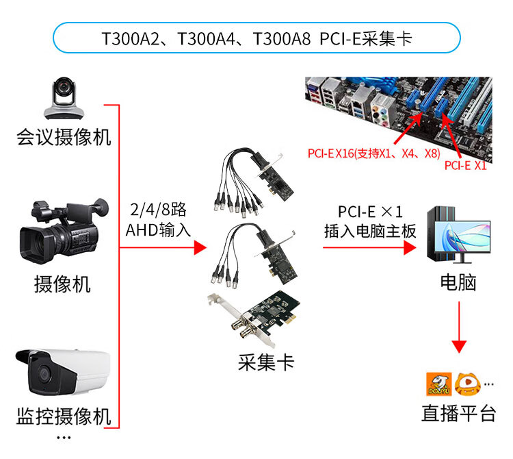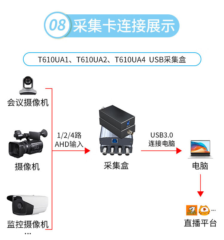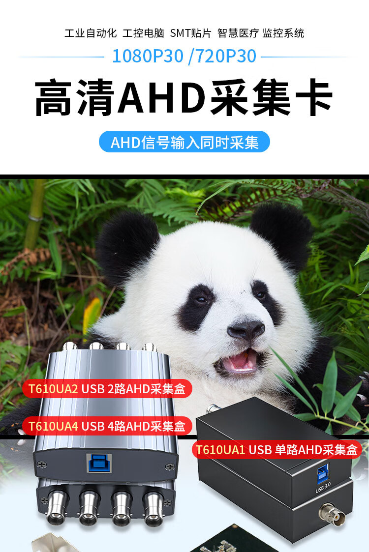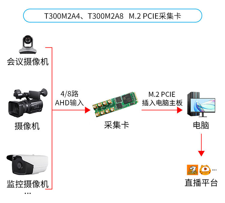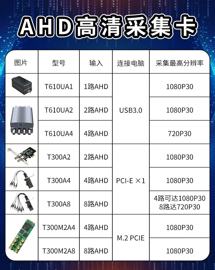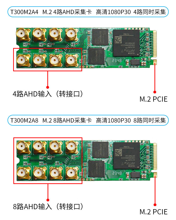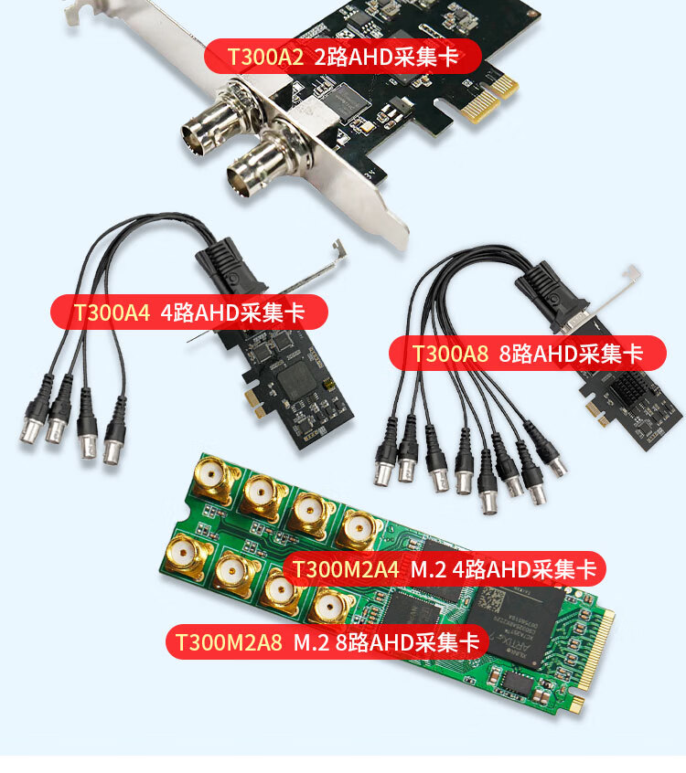 同三维高清AHD视频采集卡USB3.0/PCIE/M.2录制1/2/4/8路 高清监控摄像头视频会议网络直播教学安防监控 T300M2A4 四路高清AHD采集卡M.2