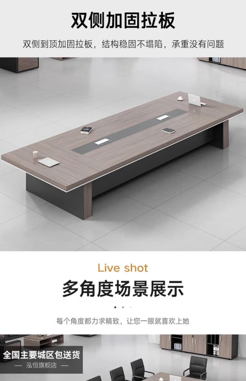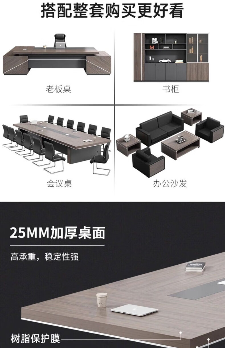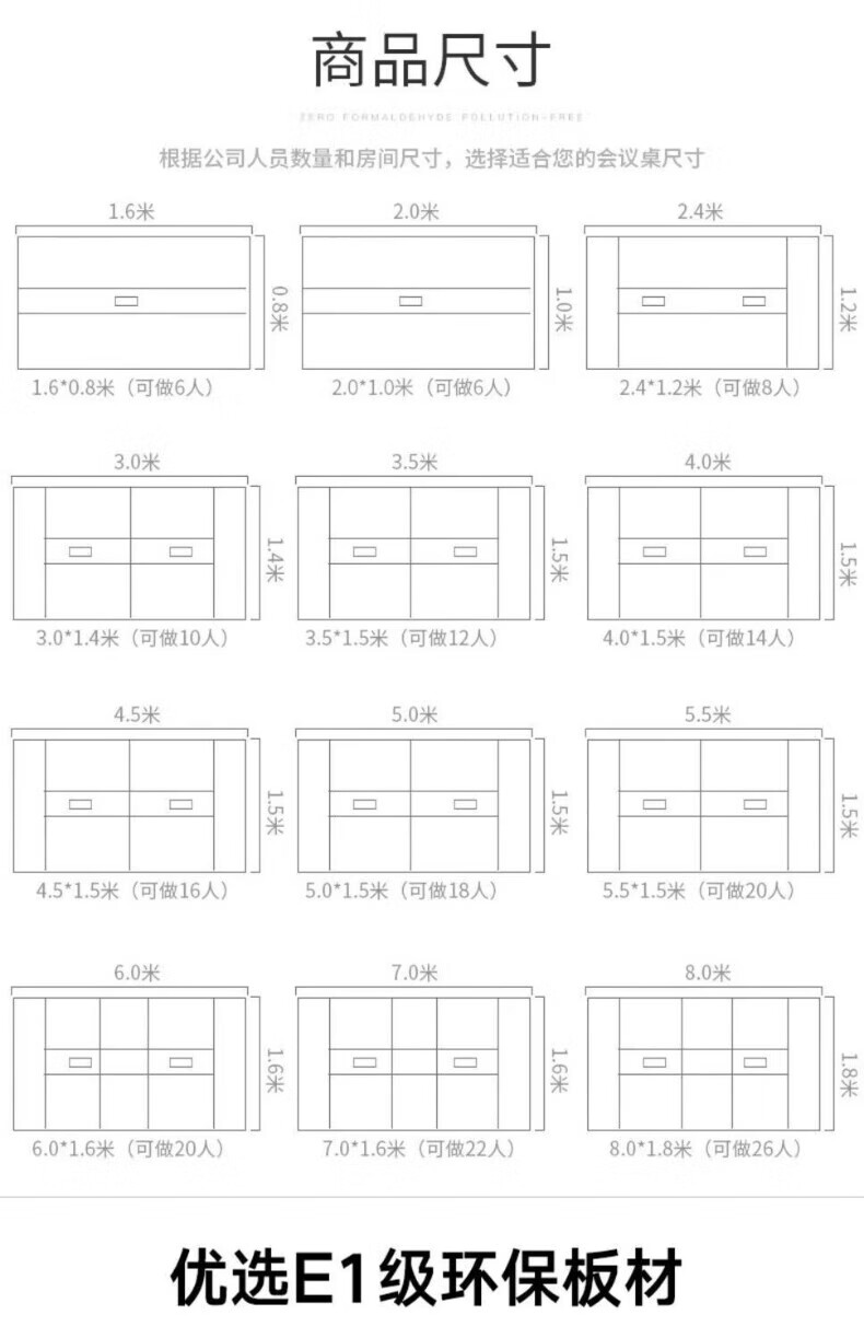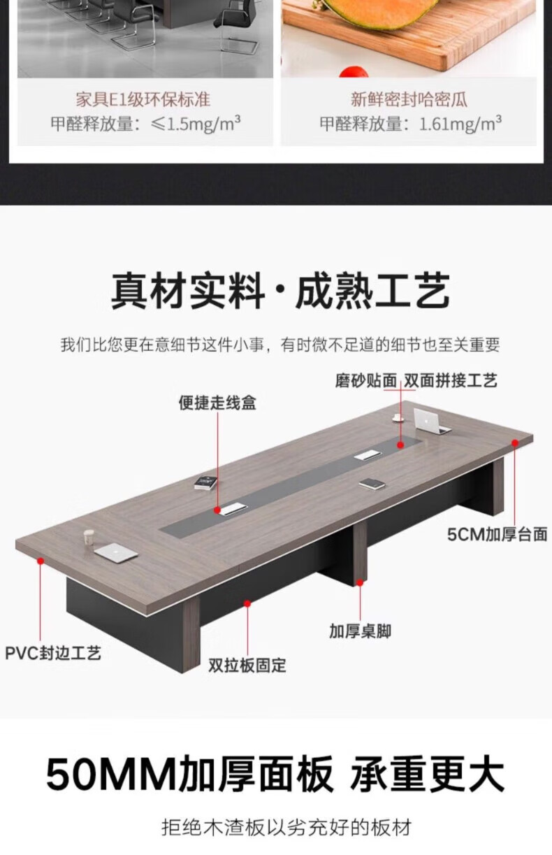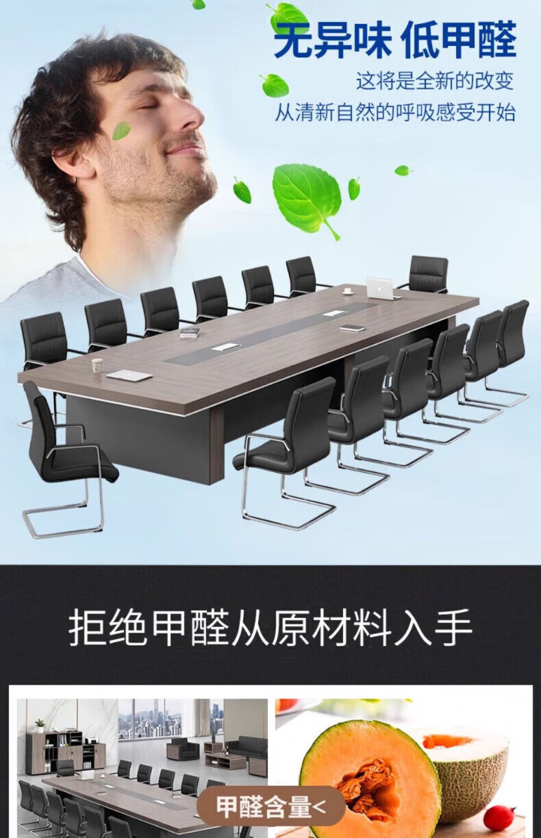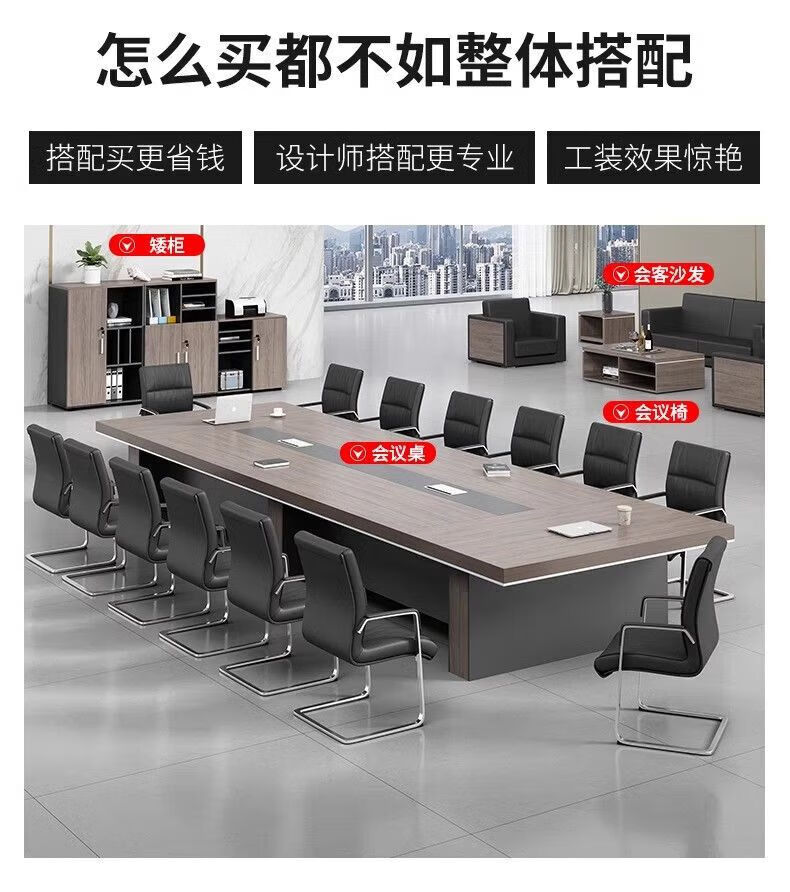 办公家具长方形大型会议桌长桌简约现代会议室洽谈桌椅组合办公桌 2.0米*1.2米会议桌