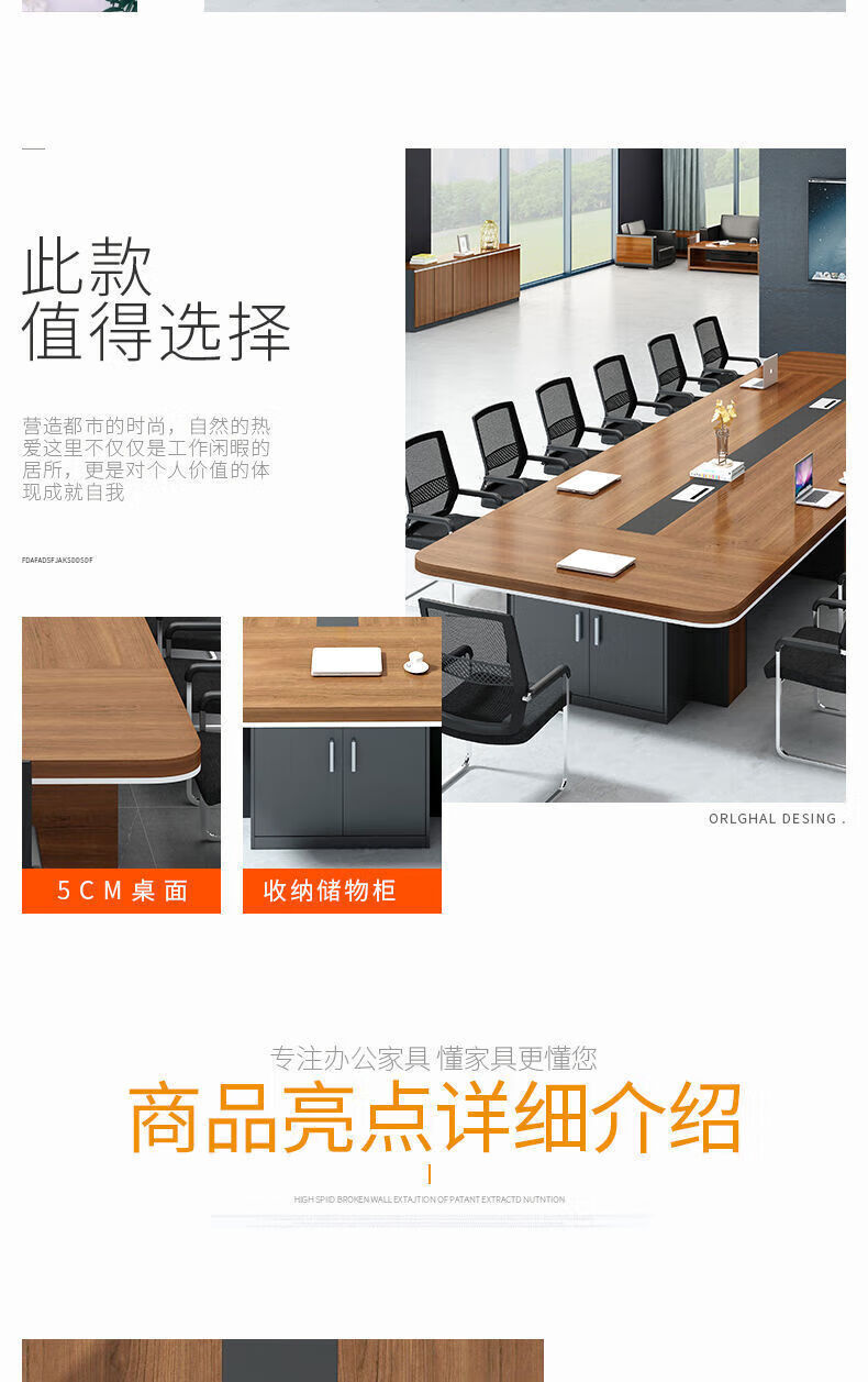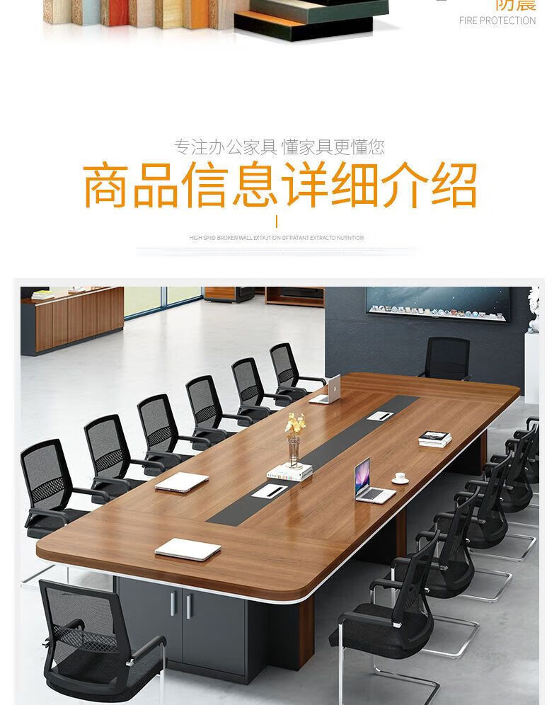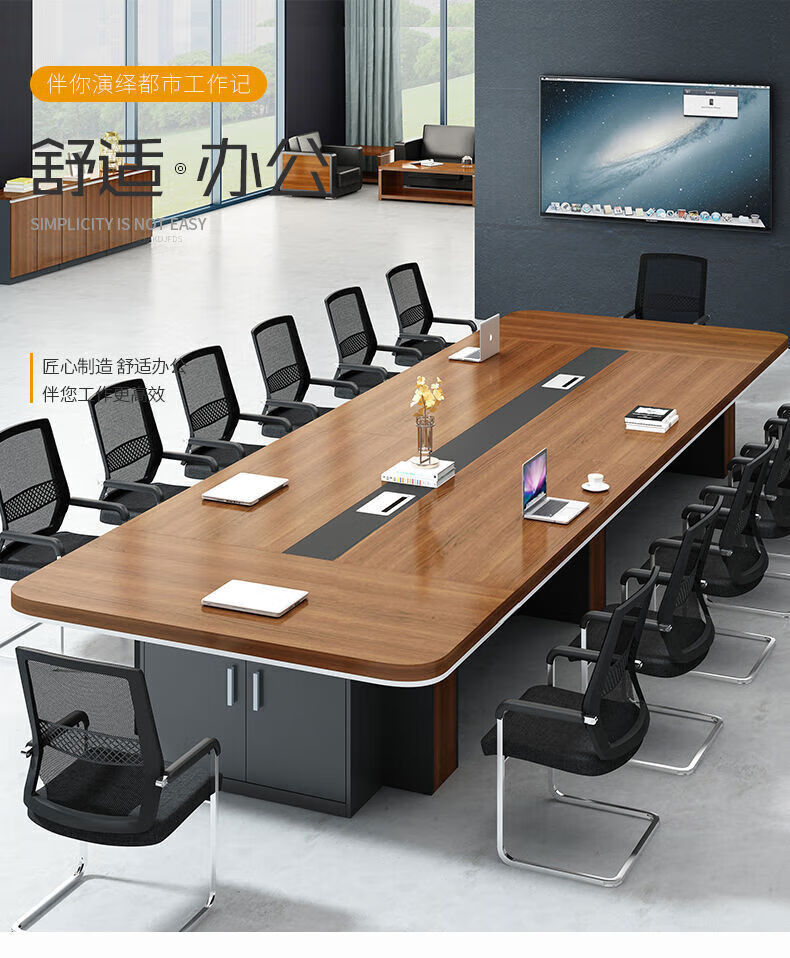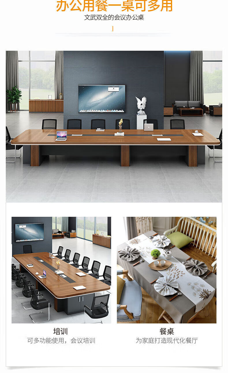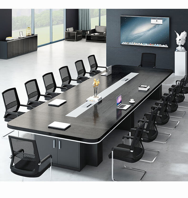 会议桌大型长桌长条桌简约现代洽谈桌培训桌会议桌椅组合办公桌子 (台面加厚)2.0米*1.0米会议桌