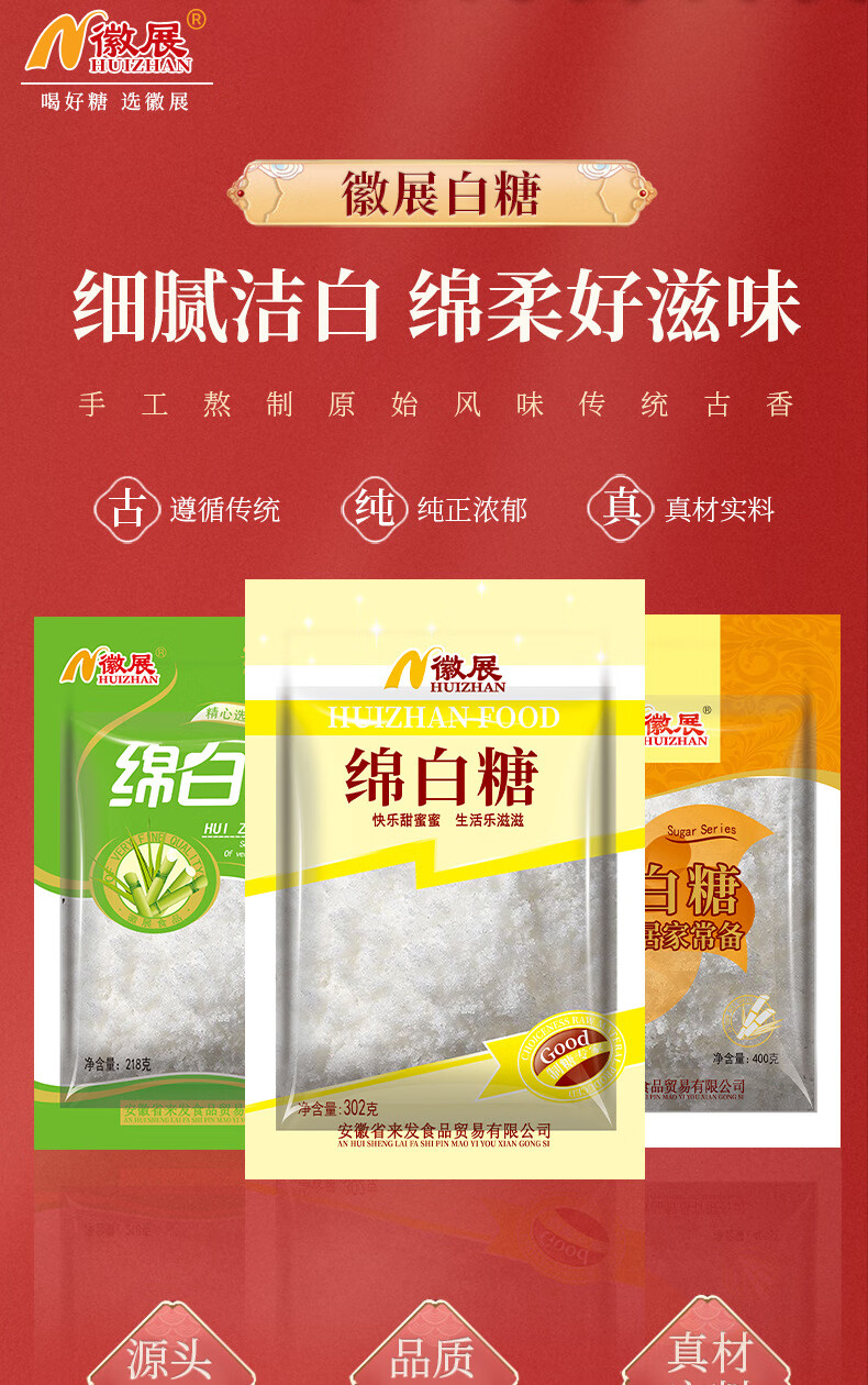 徽展【包邮汇总5kg10斤绵白糖批发徽展小袋装烘焙炒菜白糖超市 218g绵白糖*5袋