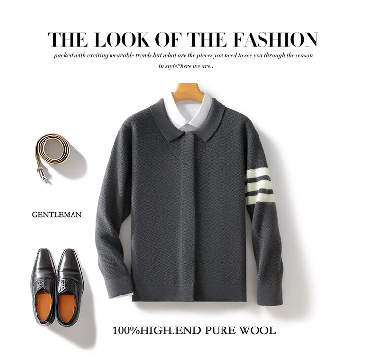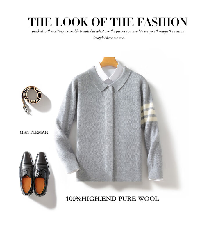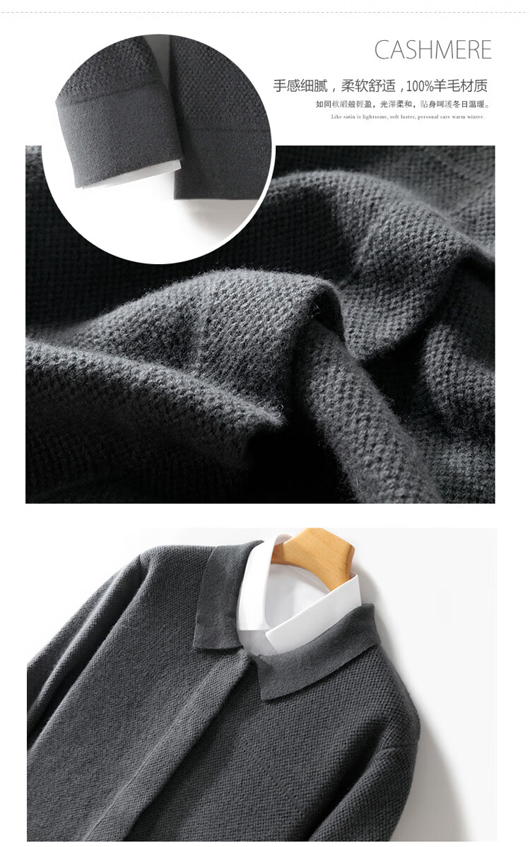1436 ERDOS Ordos city-made men's high-end pure cashmere sweater men's 100 cashmere high-quality cashmere sweater elephant gray S