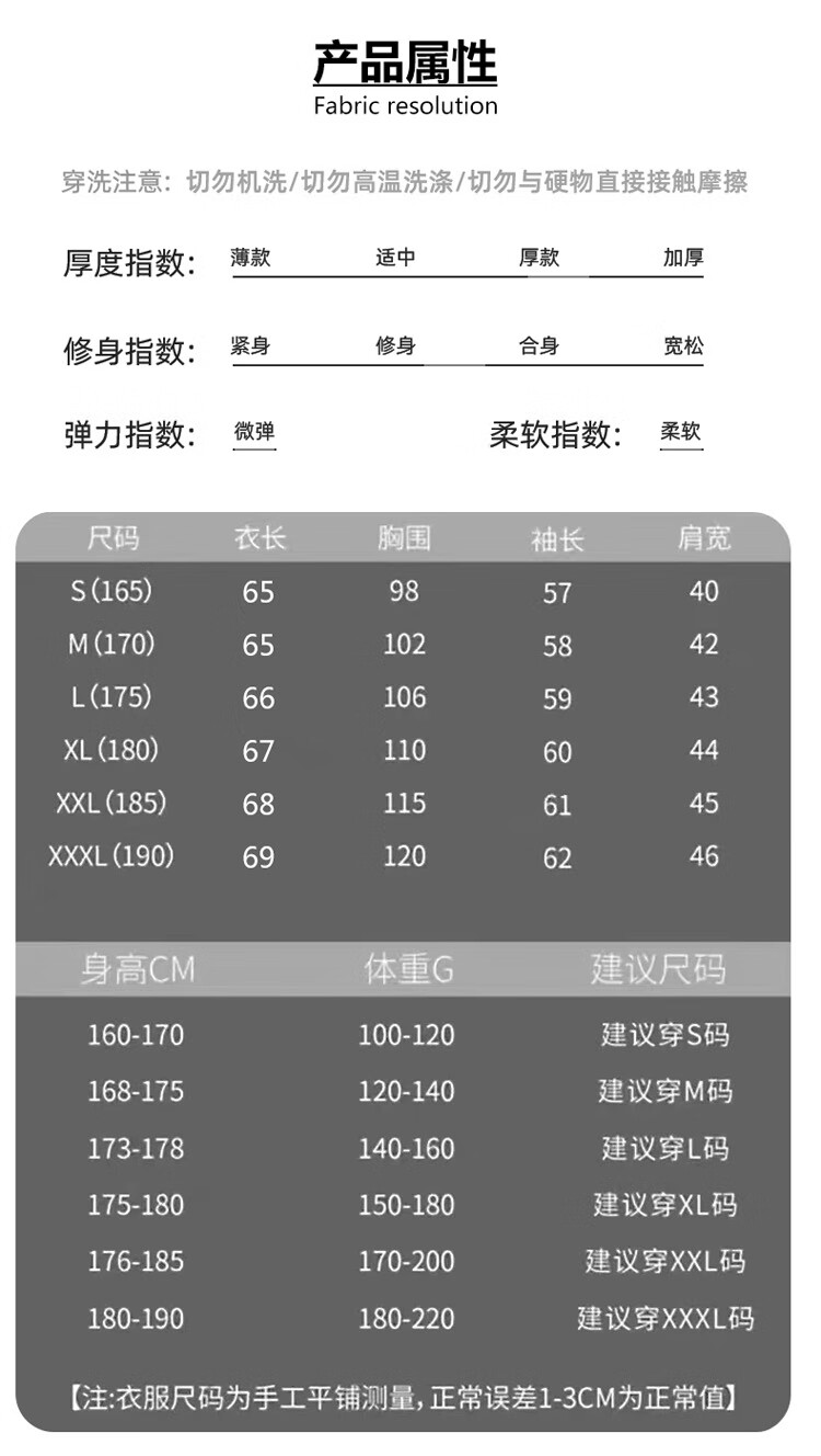 China (cm) 165 / 88-90 170 / 96-98 175 / 108-110 180 / 118-122 185 / 126-130