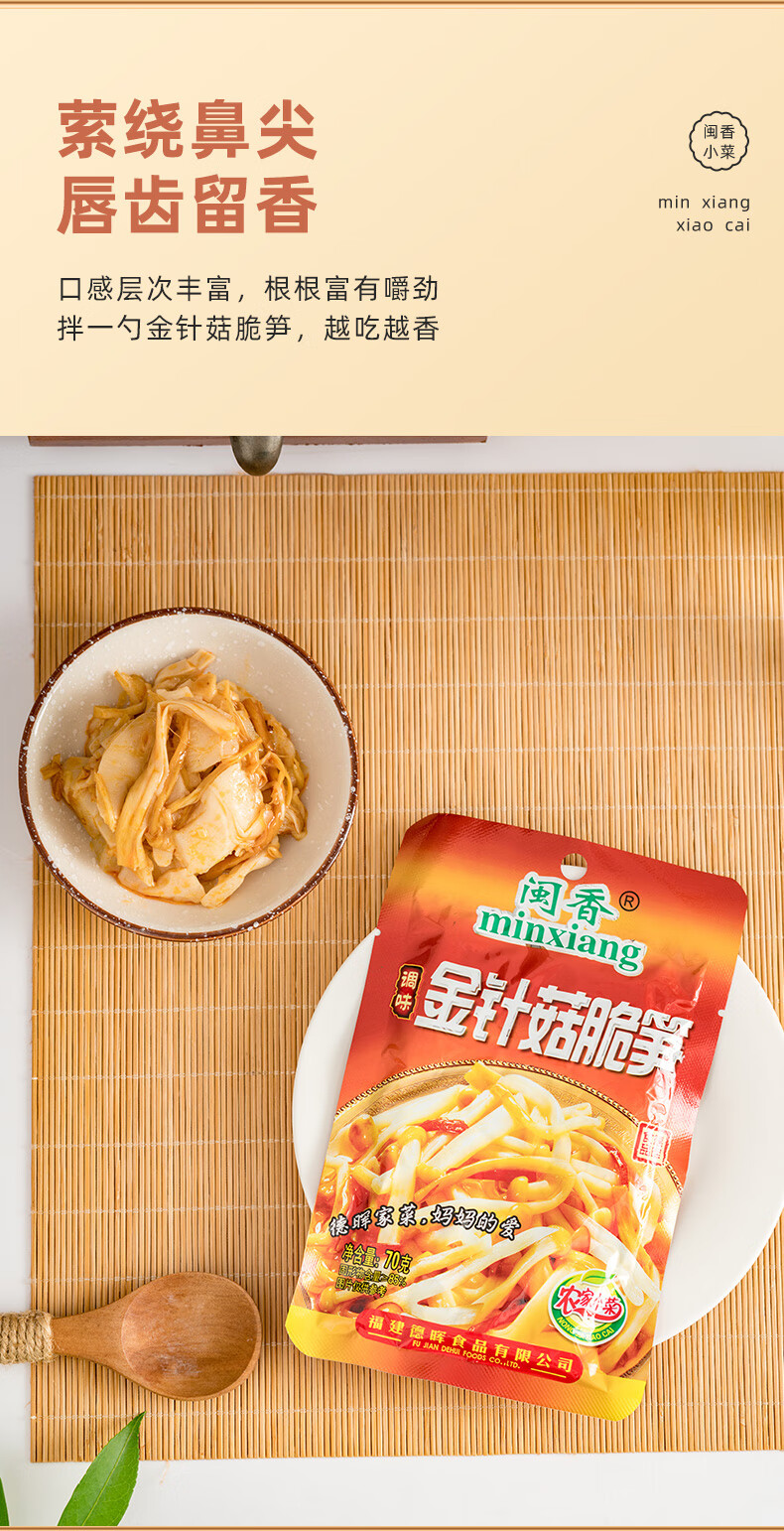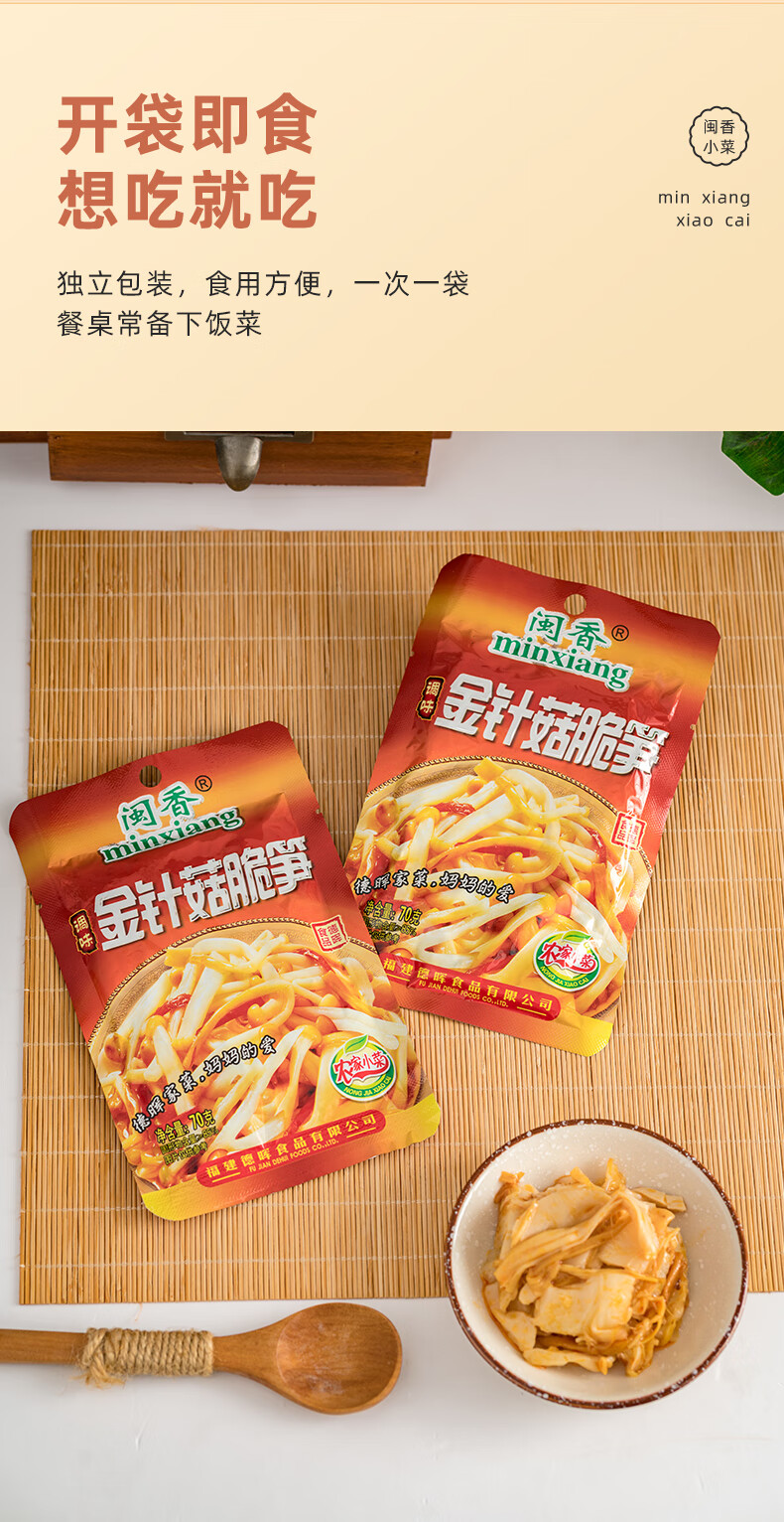 闽香金针菇脆笋70g下饭菜酱菜腌菜佐餐泡菜笋片拌饭配粥即食咸菜 杏鲍菇60克*30袋【整箱】