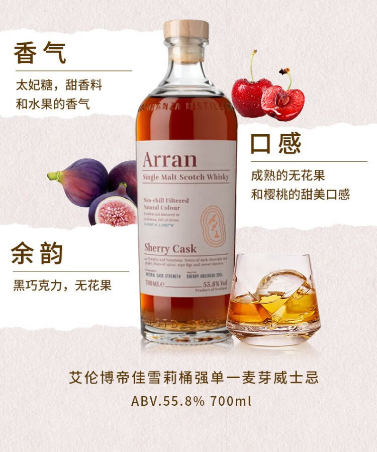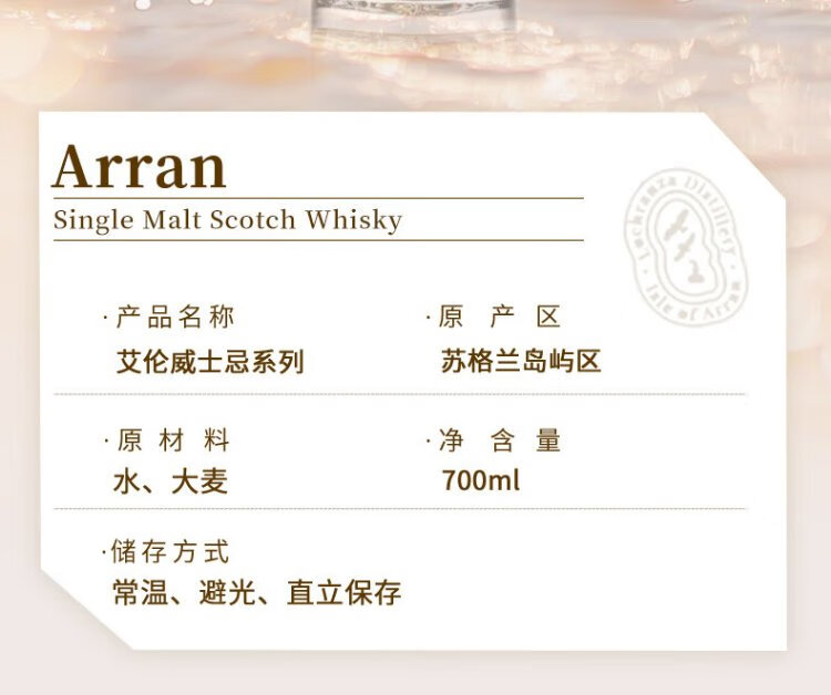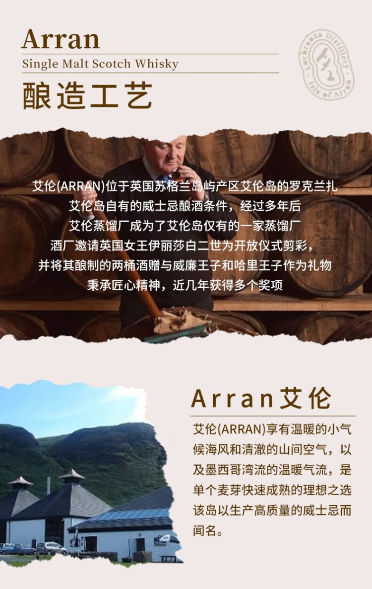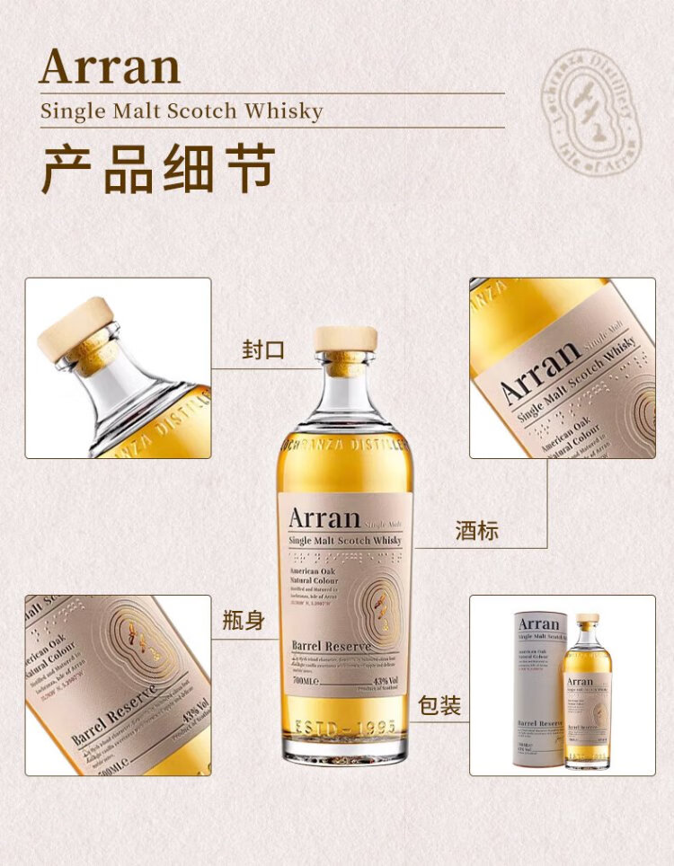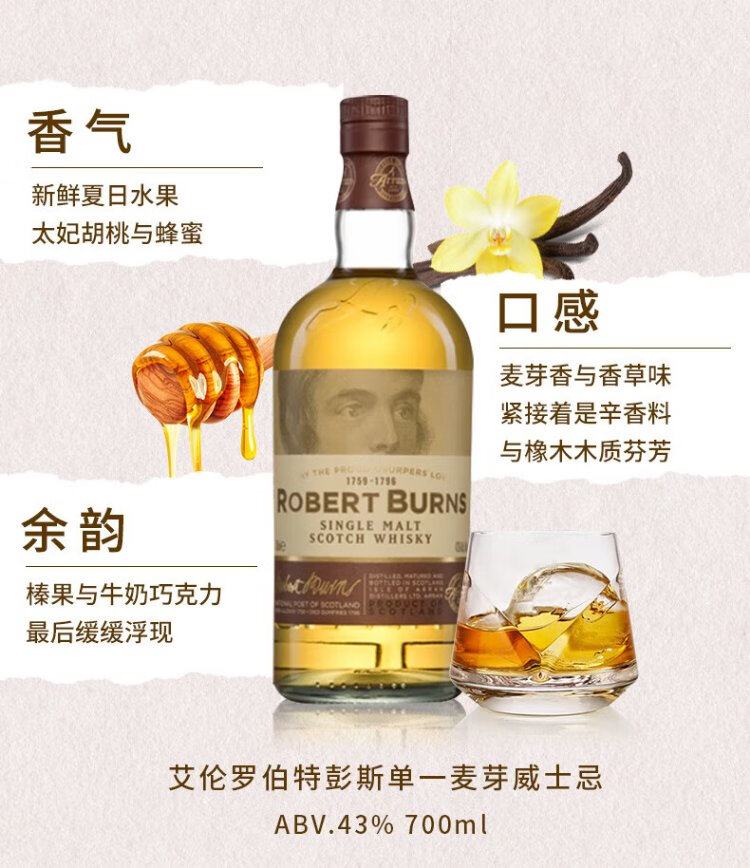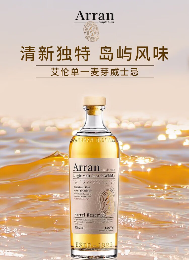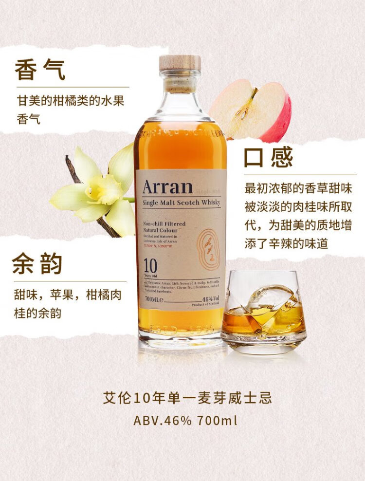艾伦(Arran)10年单一麦芽威士忌 波本桶 岛屿产区 苏格兰 洋酒 原瓶进口 送礼 艾伦罗伯特彭斯 700mL 1瓶