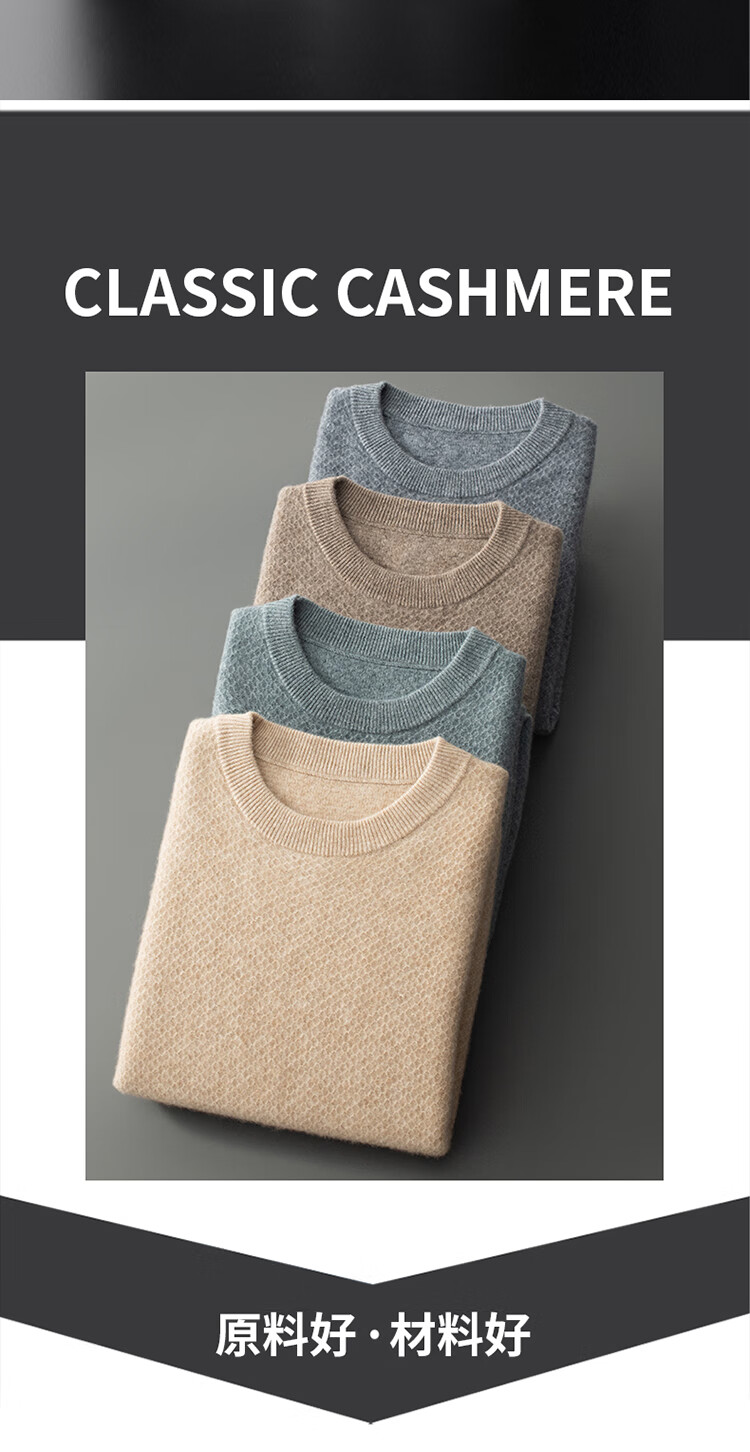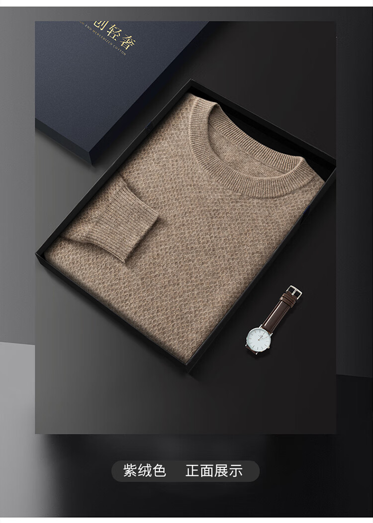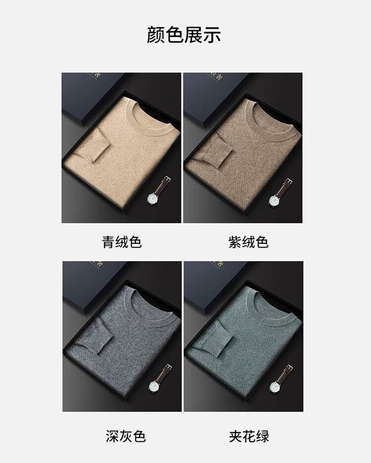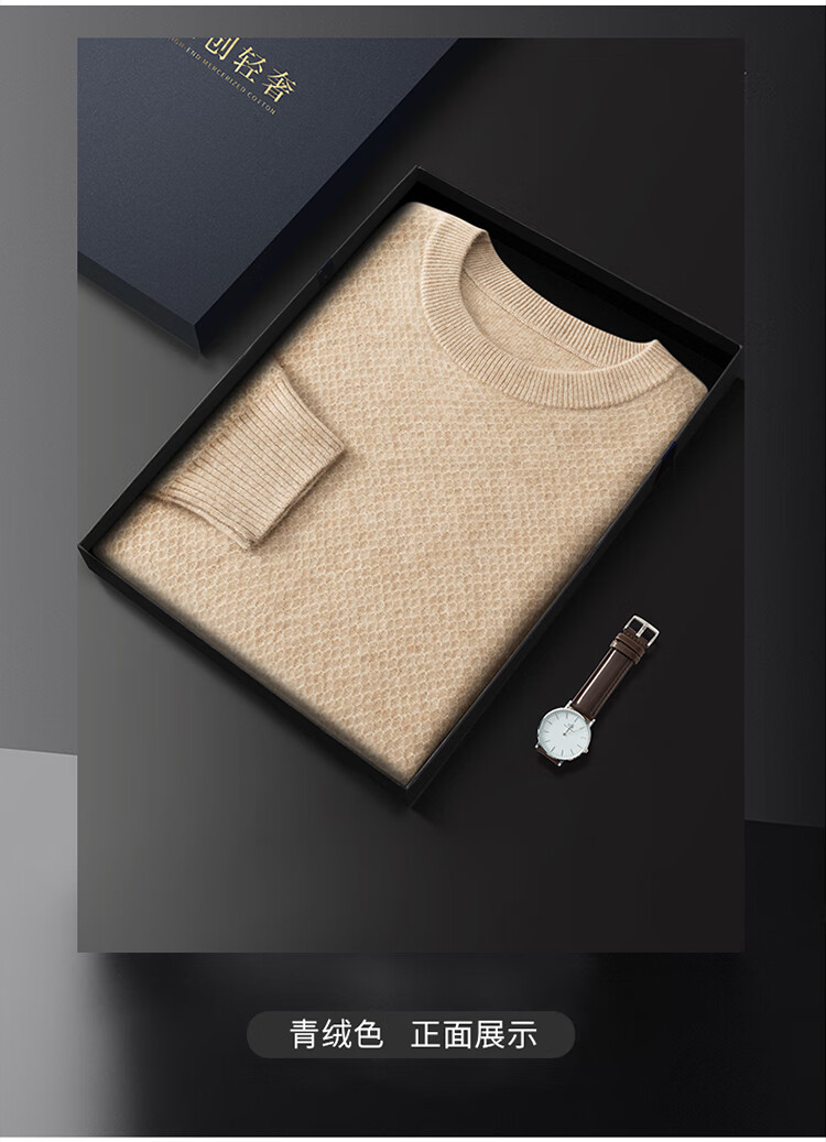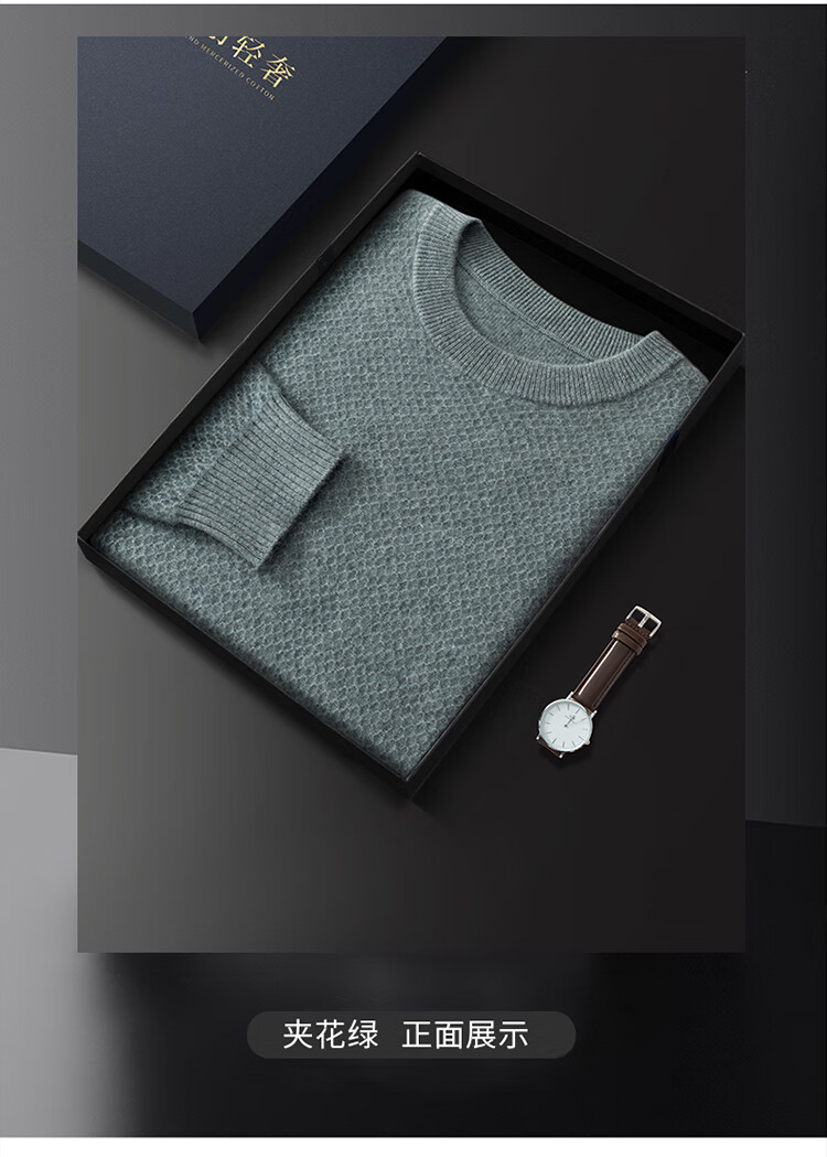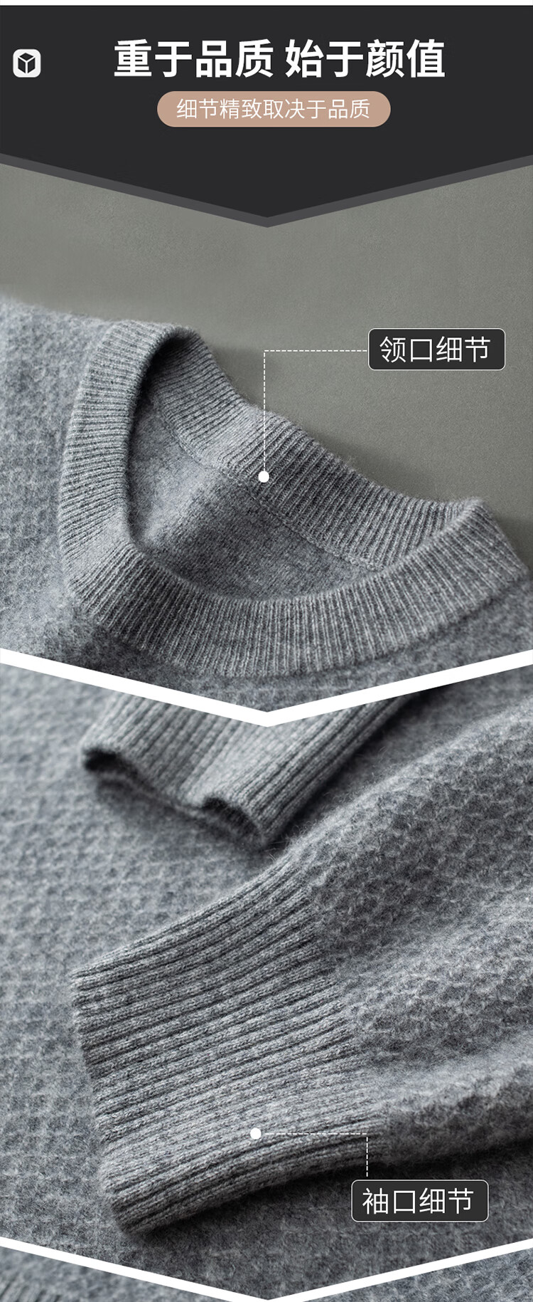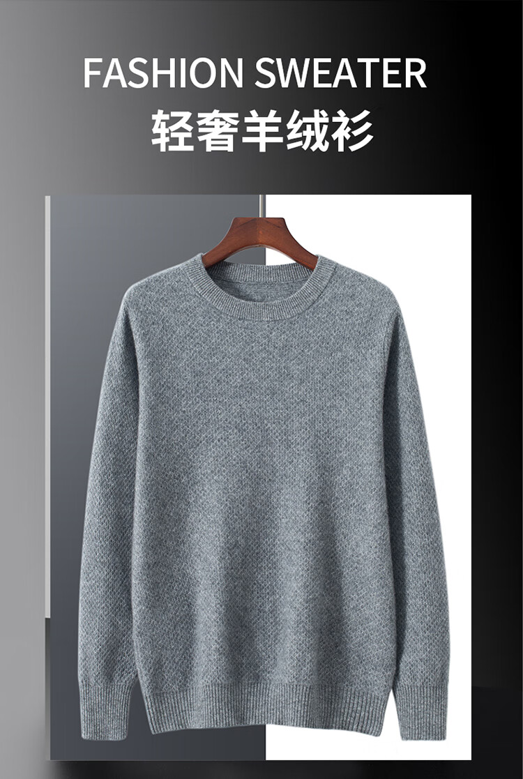 1436 ERDOS鄂尔多斯市产男士高档高端纯羊绒衫男100山羊绒高品质羊绒衫毛衣 青绒 M