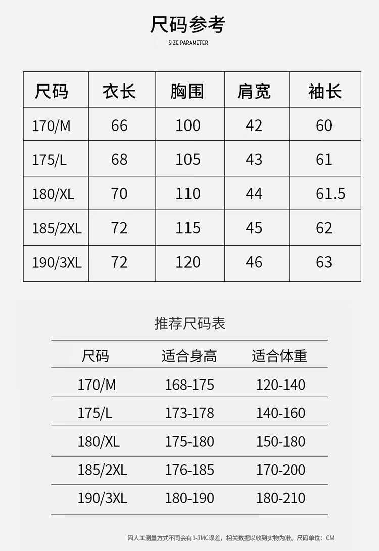 China (cm) 165 / 88-90 170 / 96-98 175 / 108-110 180 / 118-122 185 / 126-130