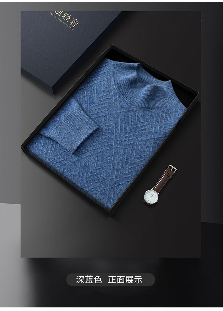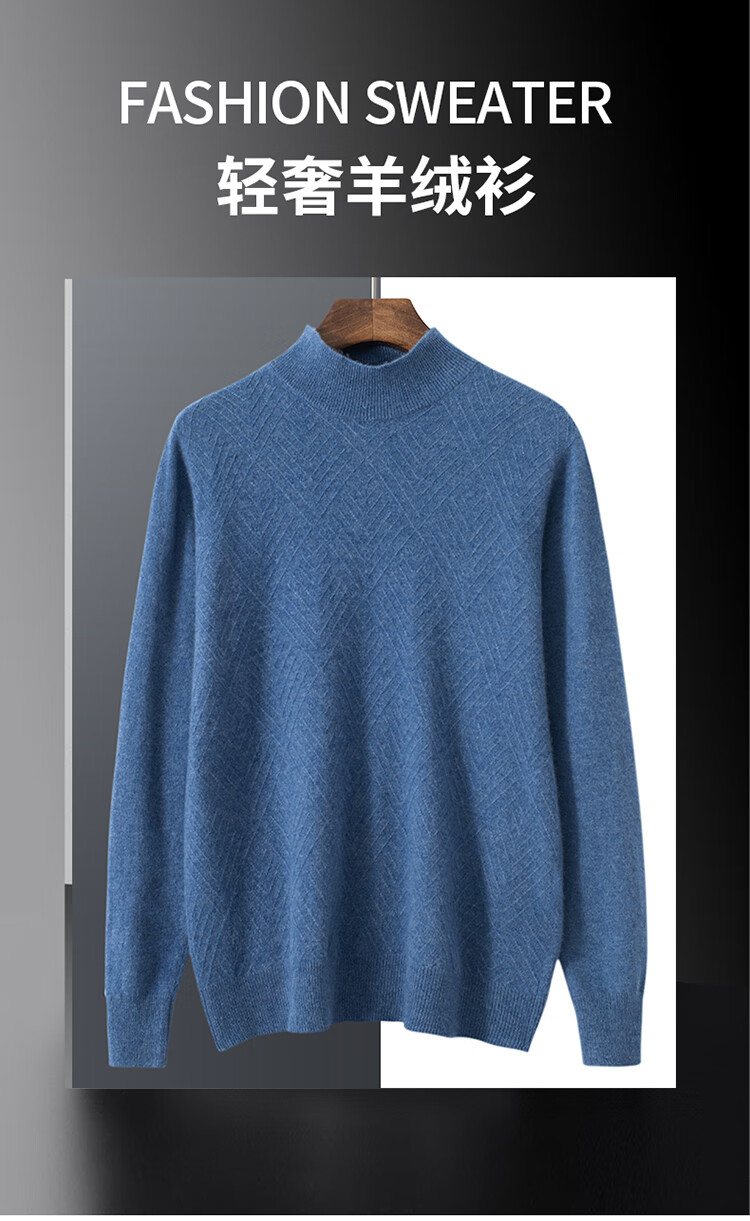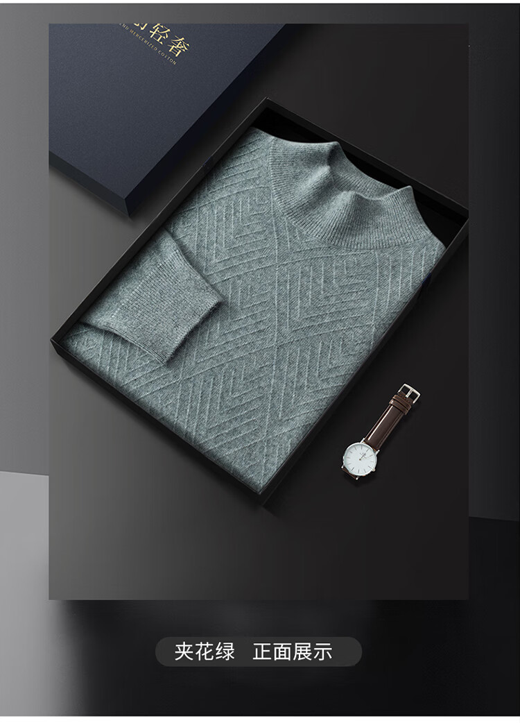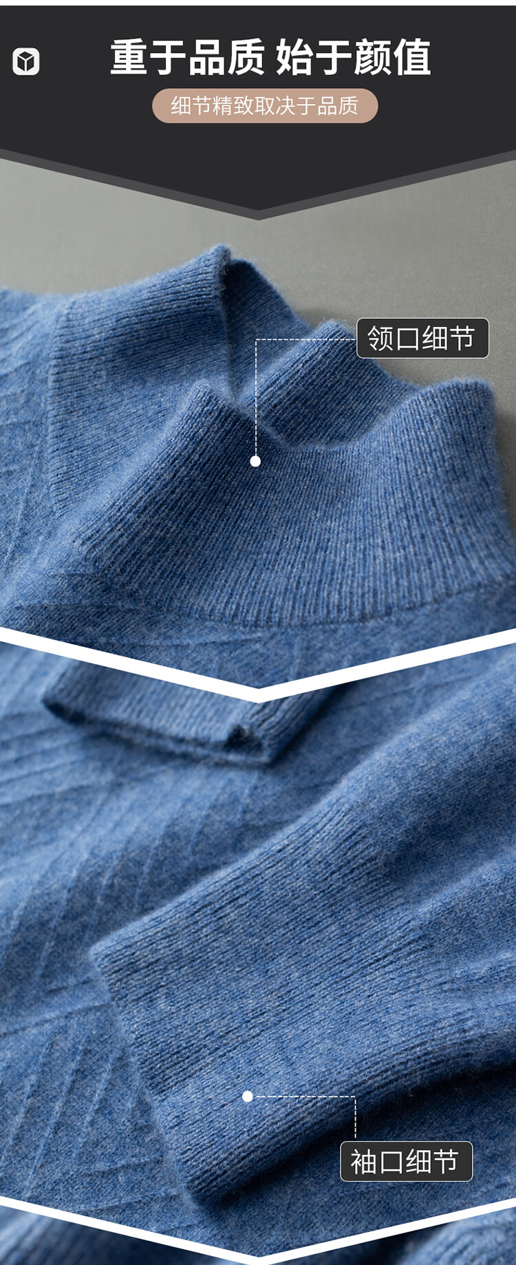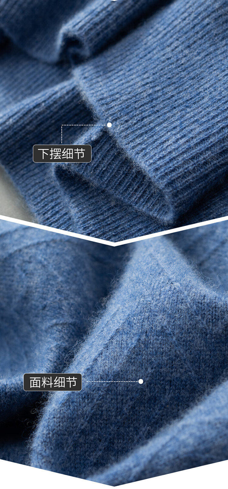 鄂尔多斯市产男士高档高端纯羊绒衫男100山羊绒高品质羊绒衫毛衣 青绒色 M