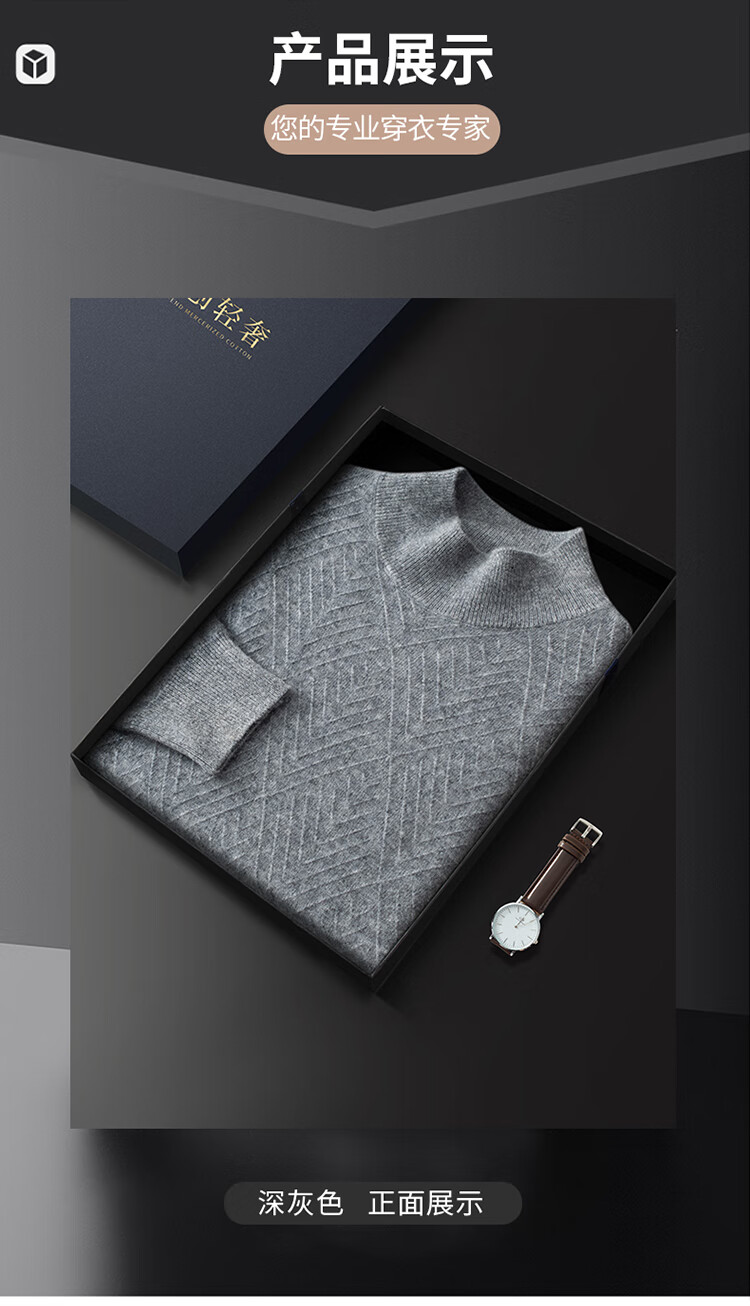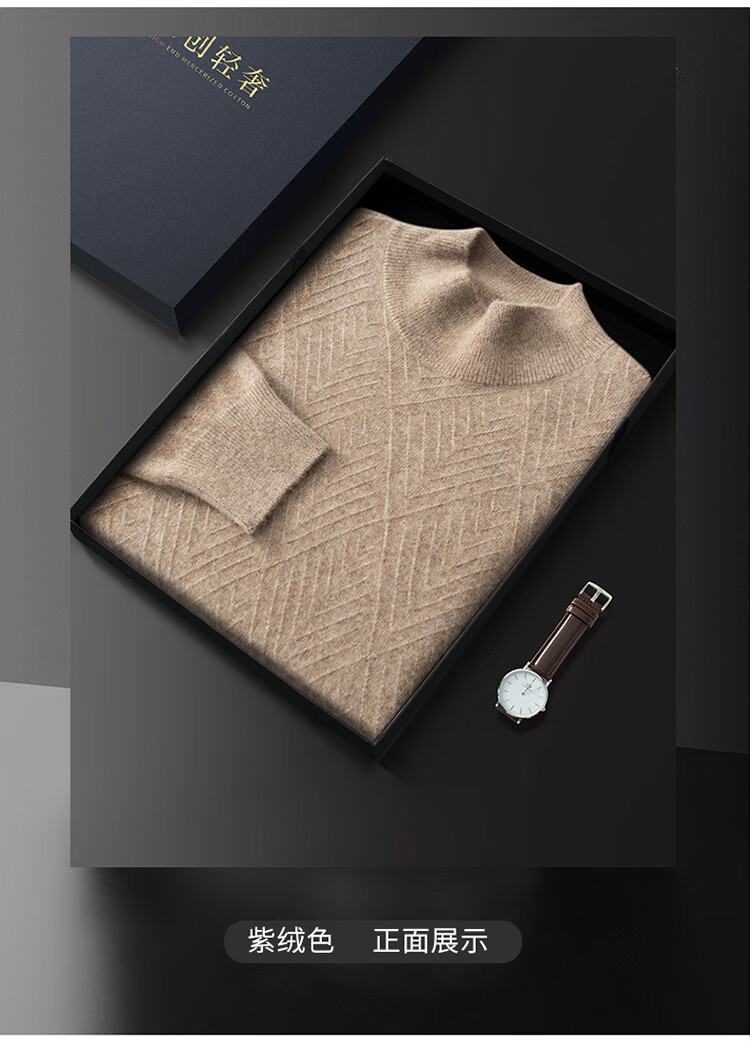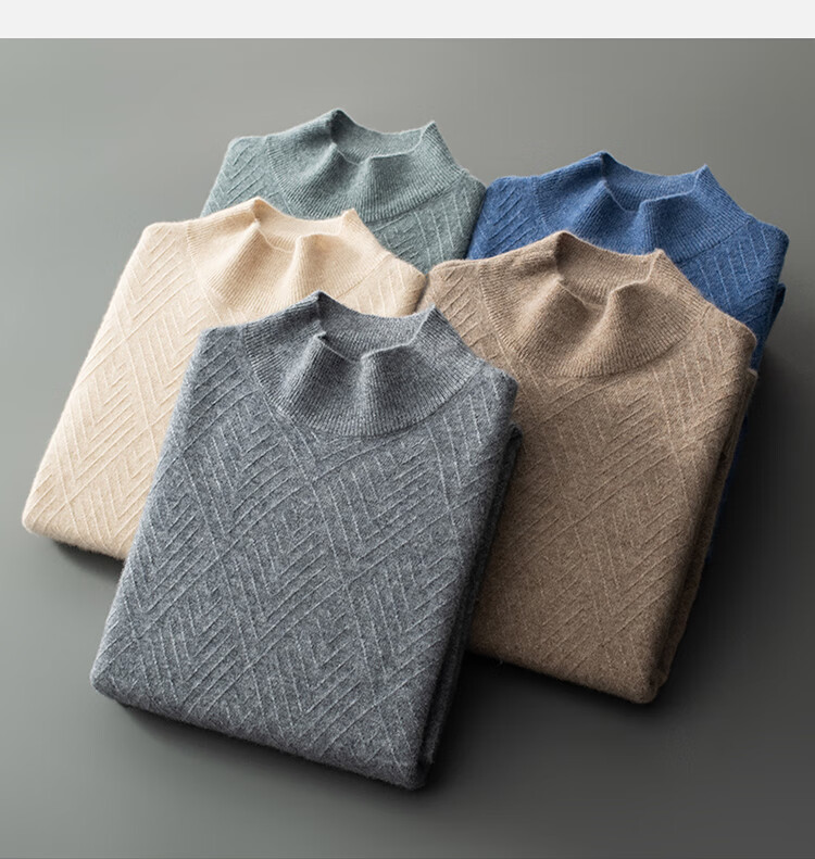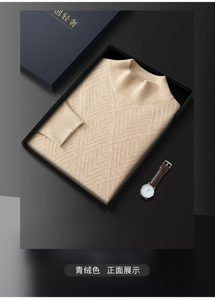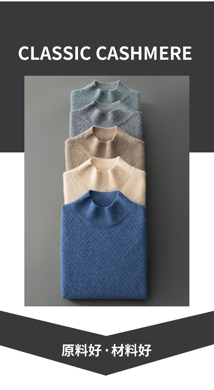 鄂尔多斯市产男士高档高端纯羊绒衫男100山羊绒高品质羊绒衫毛衣 青绒色 M