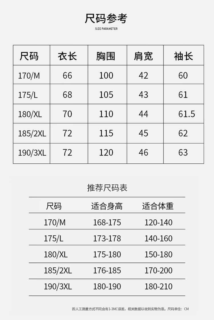 China (cm) 165 / 88-90 170 / 96-98 175 / 108-110 180 / 118-122 185 / 126-130