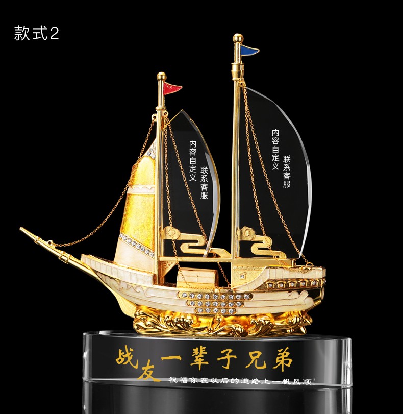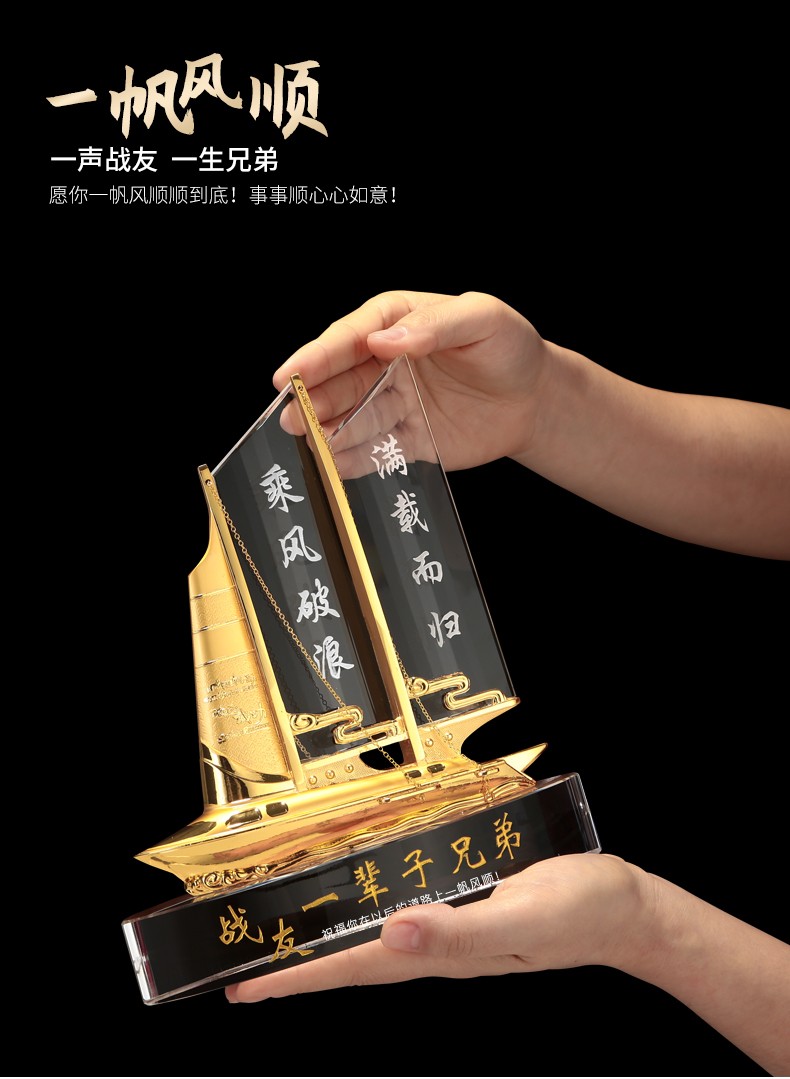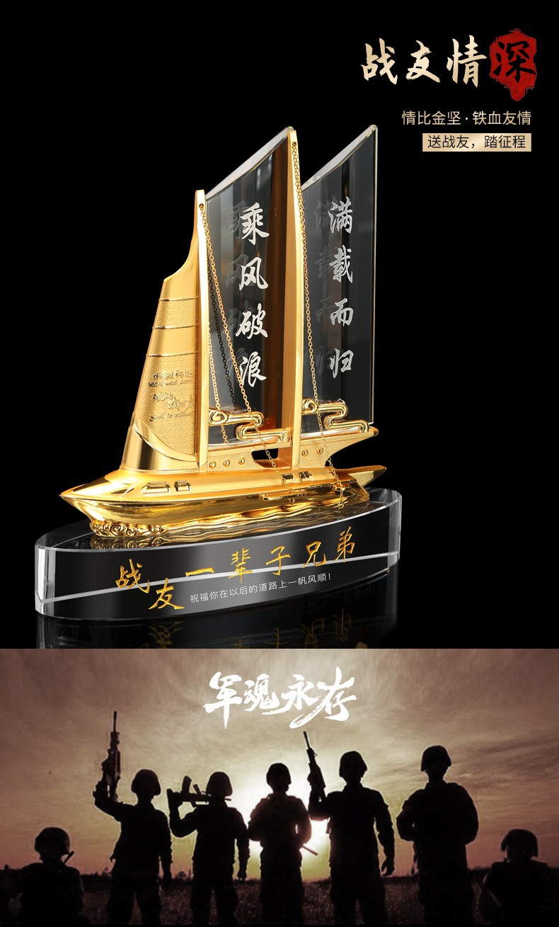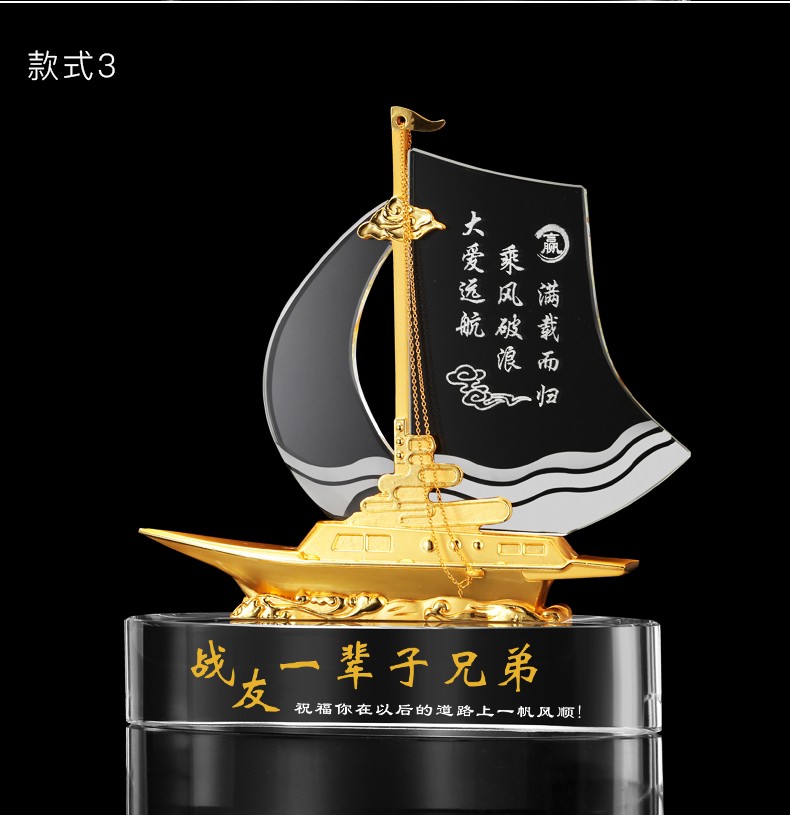 Meicaile Veterans souvenirs, custom-made sailboat ornaments, creative gifts for comrades in arms, crystal boat brothers, retired veterans party, military veterans' engraving commemorative customization, smooth sailing 2 large size