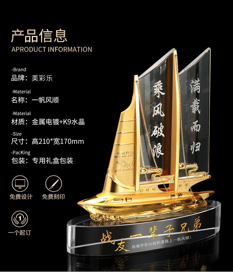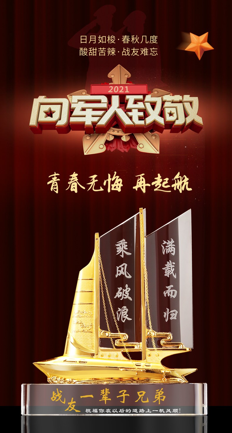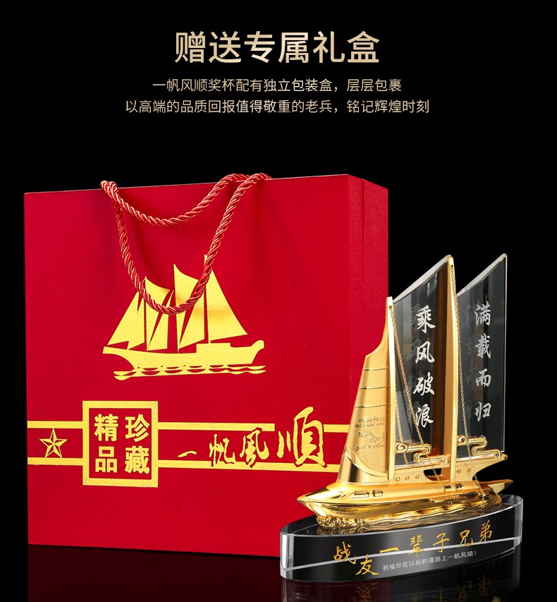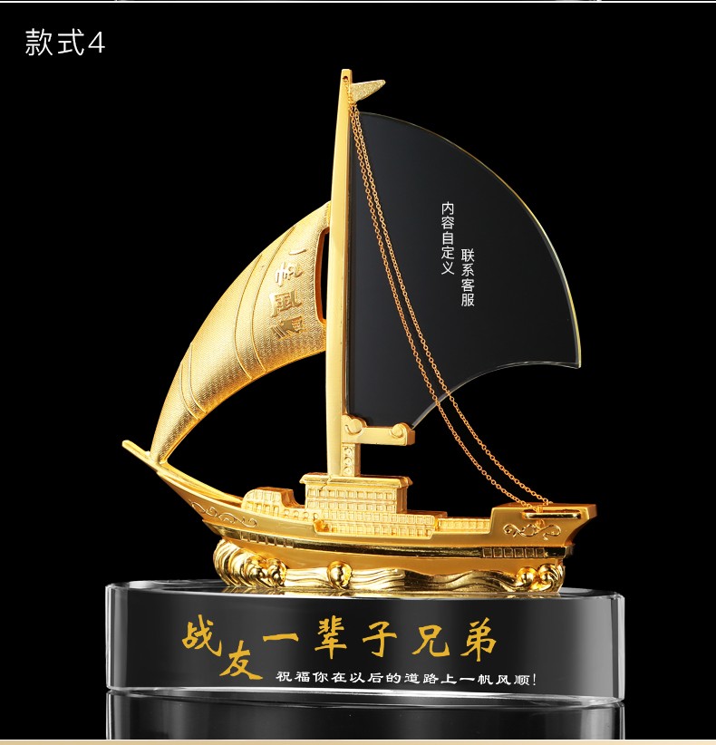 Meicaile Veterans souvenirs, custom-made sailboat ornaments, creative gifts for comrades in arms, crystal boat brothers, retired veterans party, military veterans' engraving commemorative customization, smooth sailing 2 large size