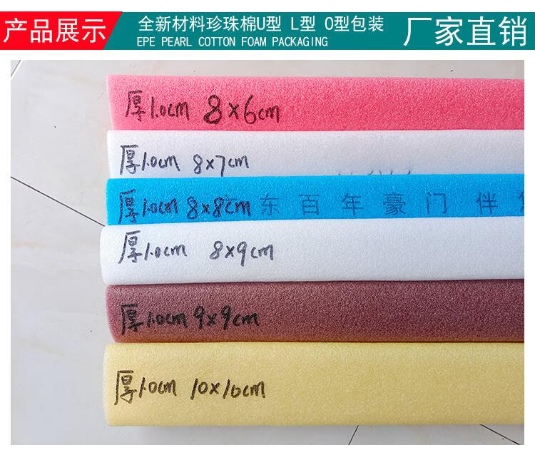 珍珠棉epe包装材料移门窗U型护角办公家具包边防撞抗震环保泡沫棉 厚10mm内宽80mm边高60(288米)