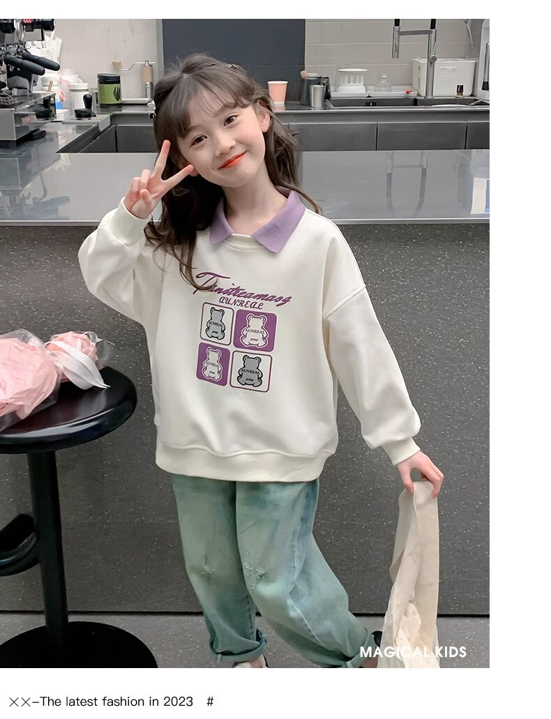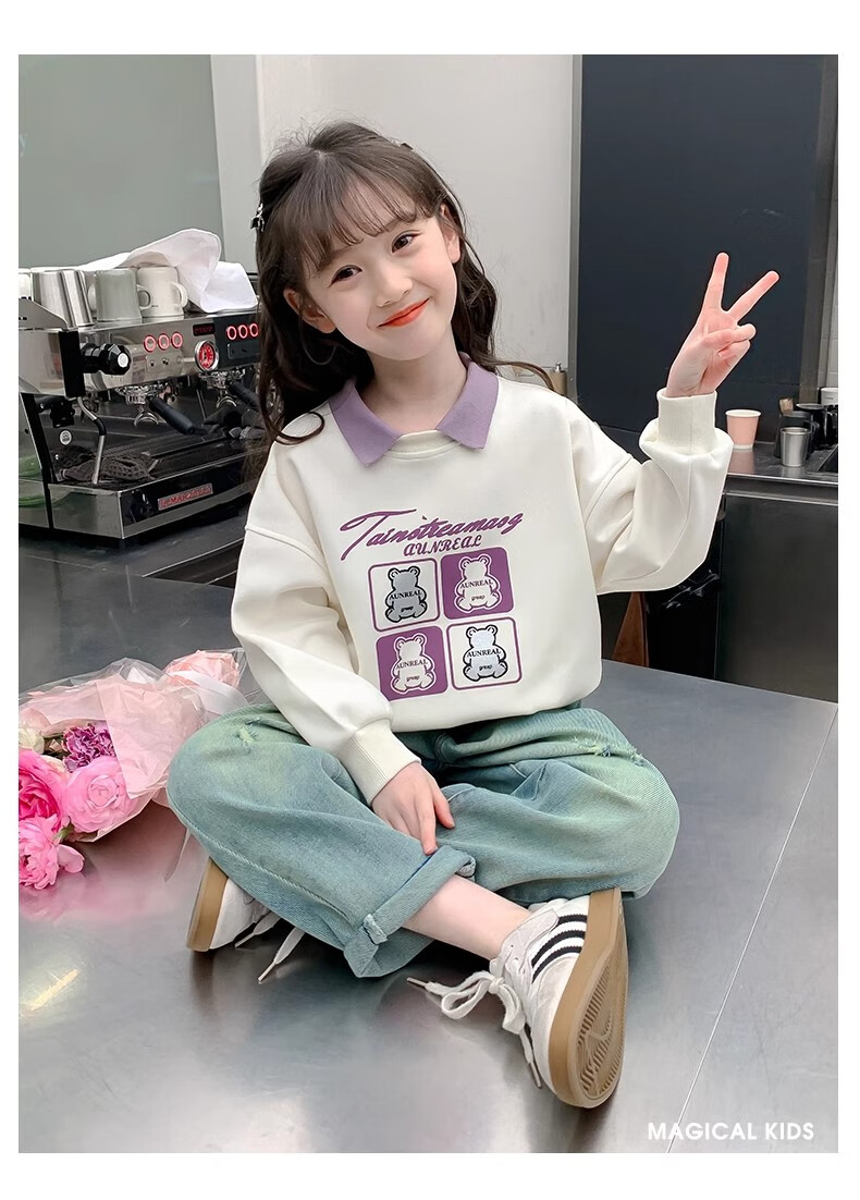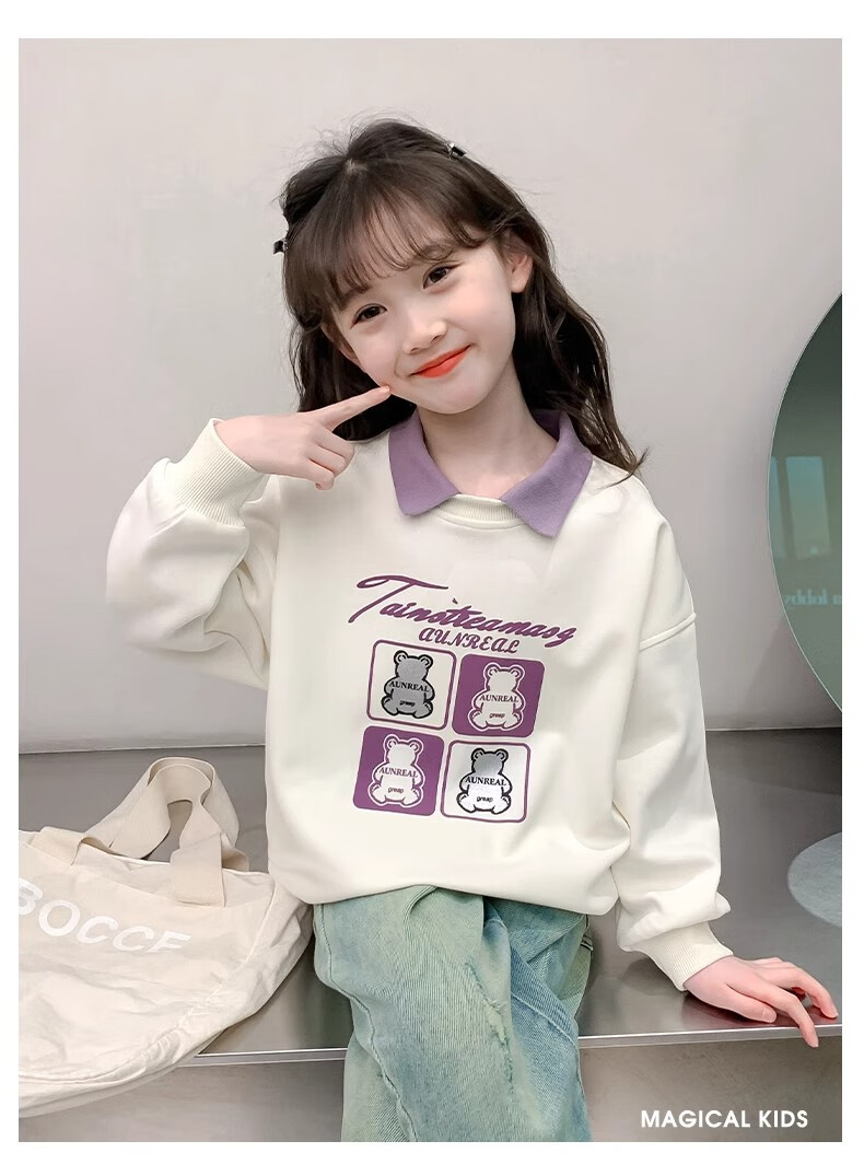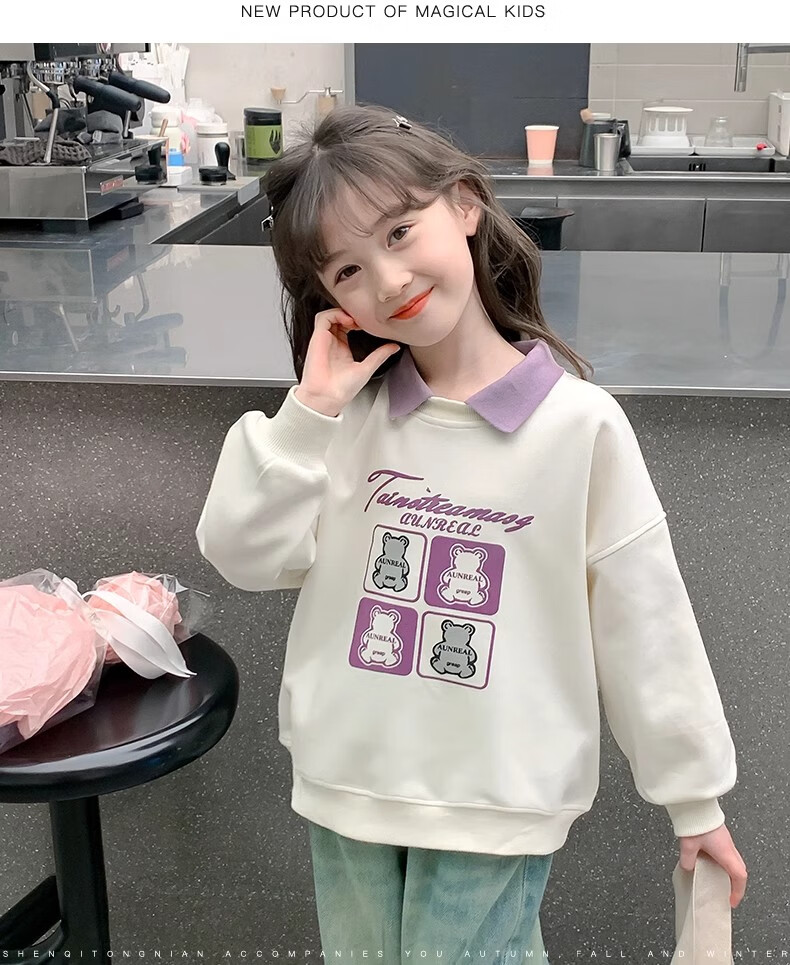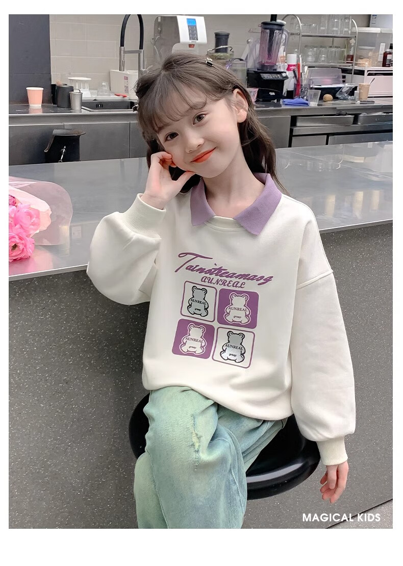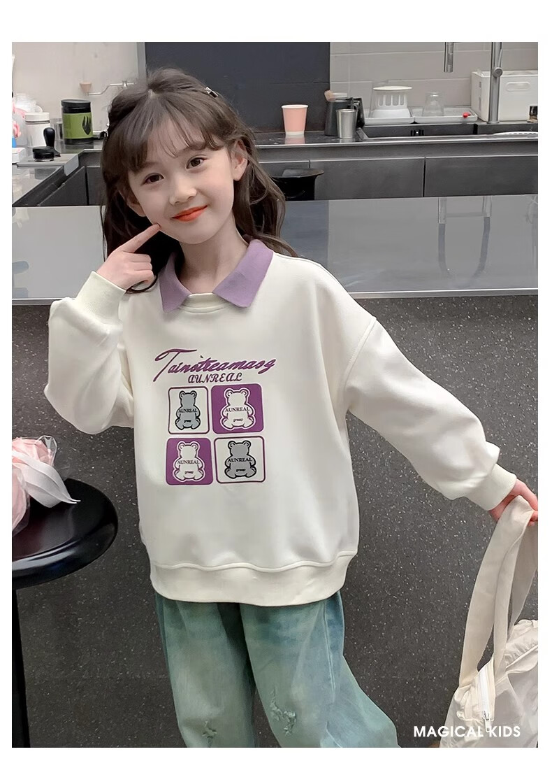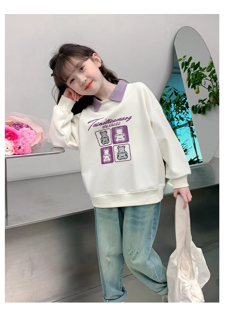 【女童春秋卫衣】2025儿童polo领春季百搭衣服中大童春秋款上衣薄 NN-A948【米白色】 140cm