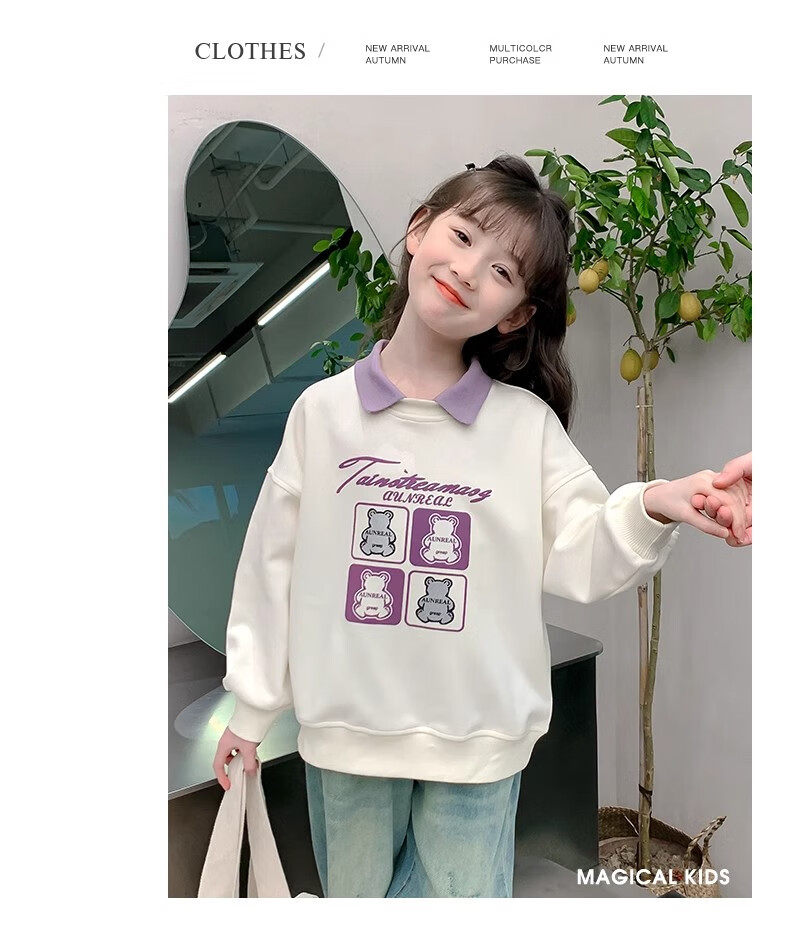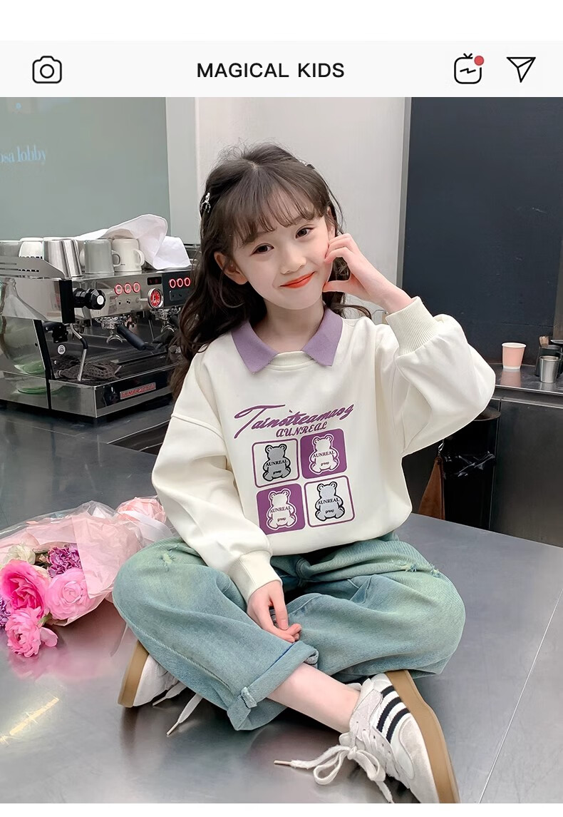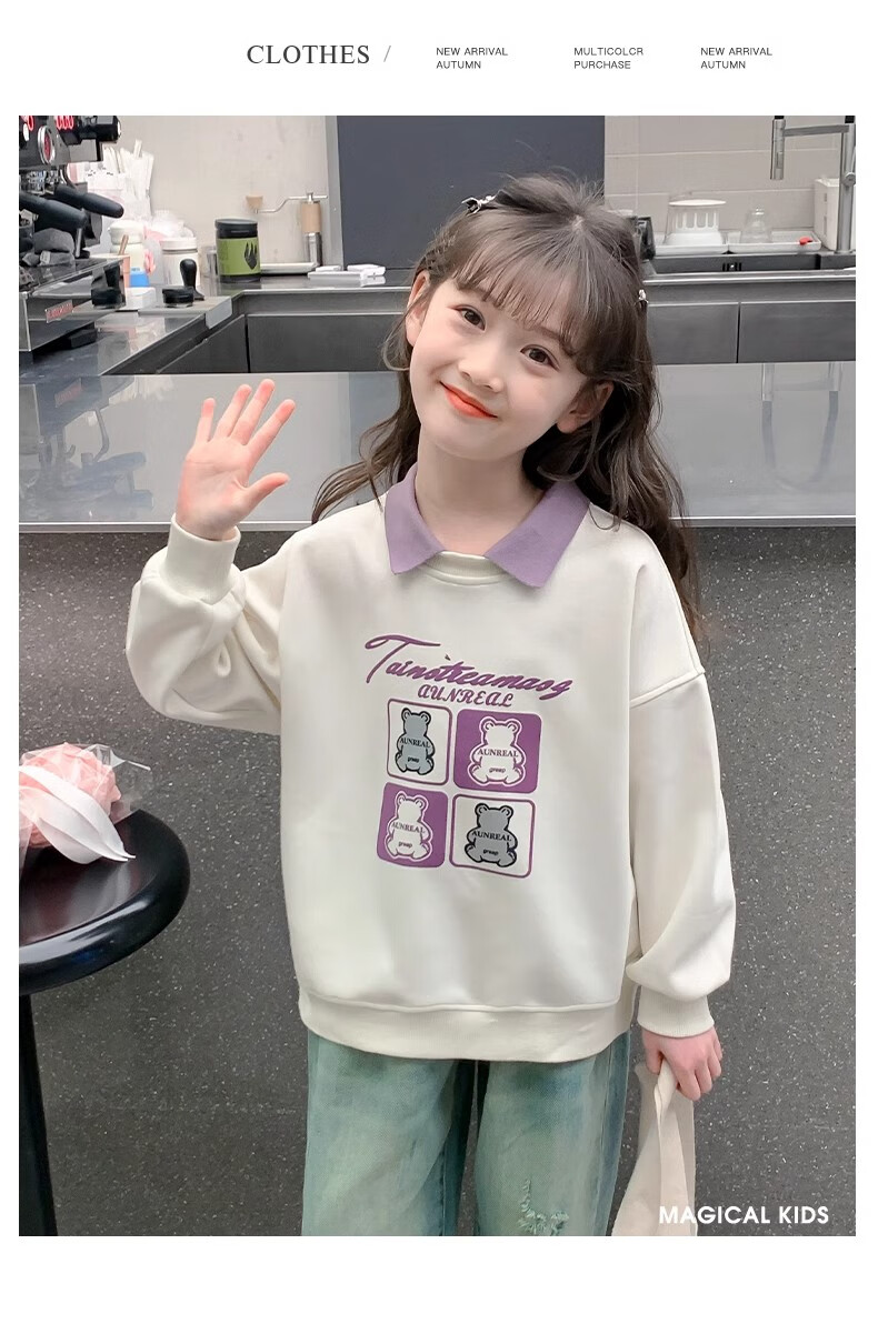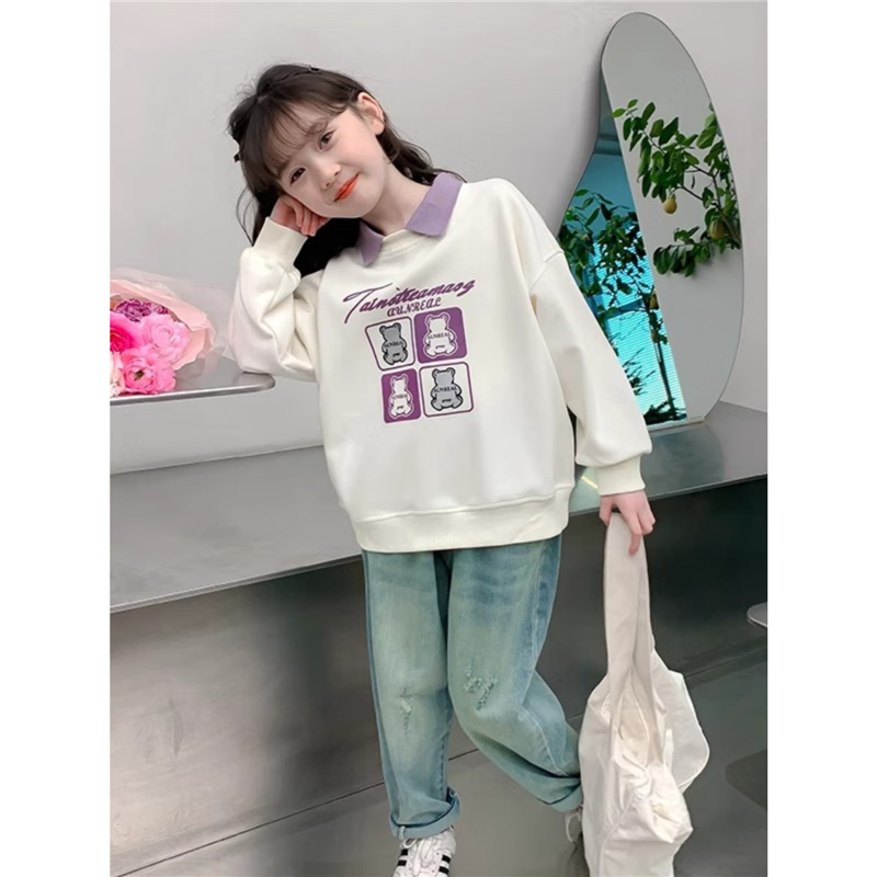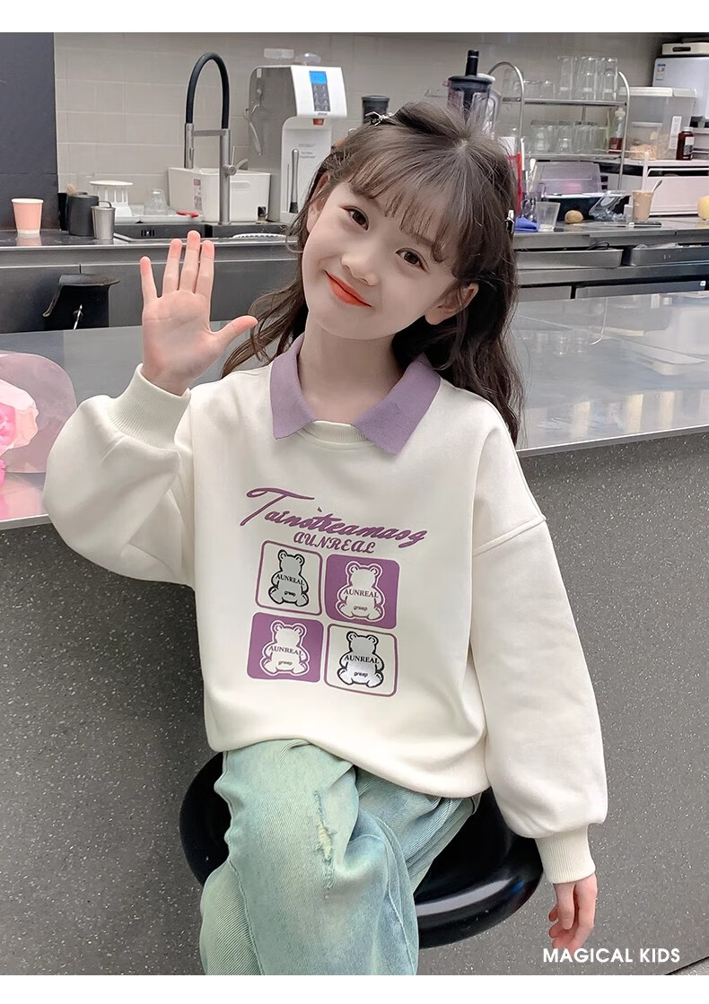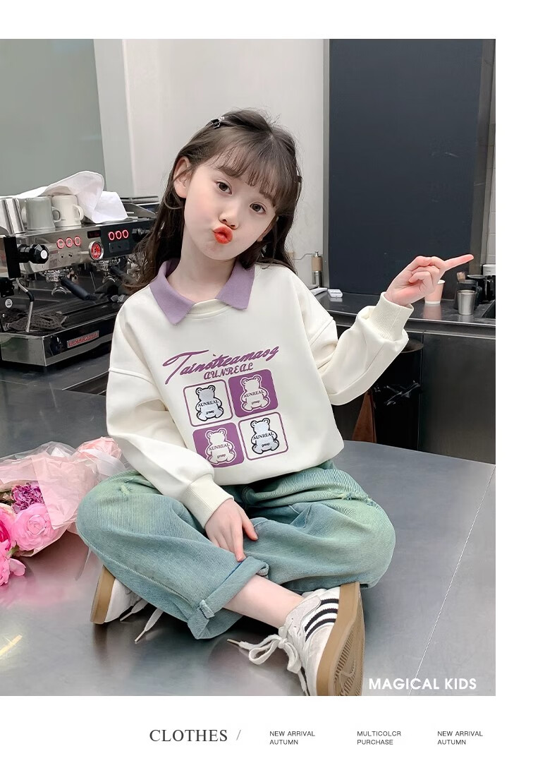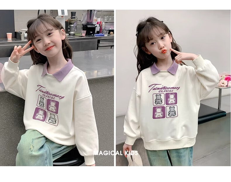 【女童春秋卫衣】2025儿童polo领春季百搭衣服中大童春秋款上衣薄 NN-A948【米白色】 140cm