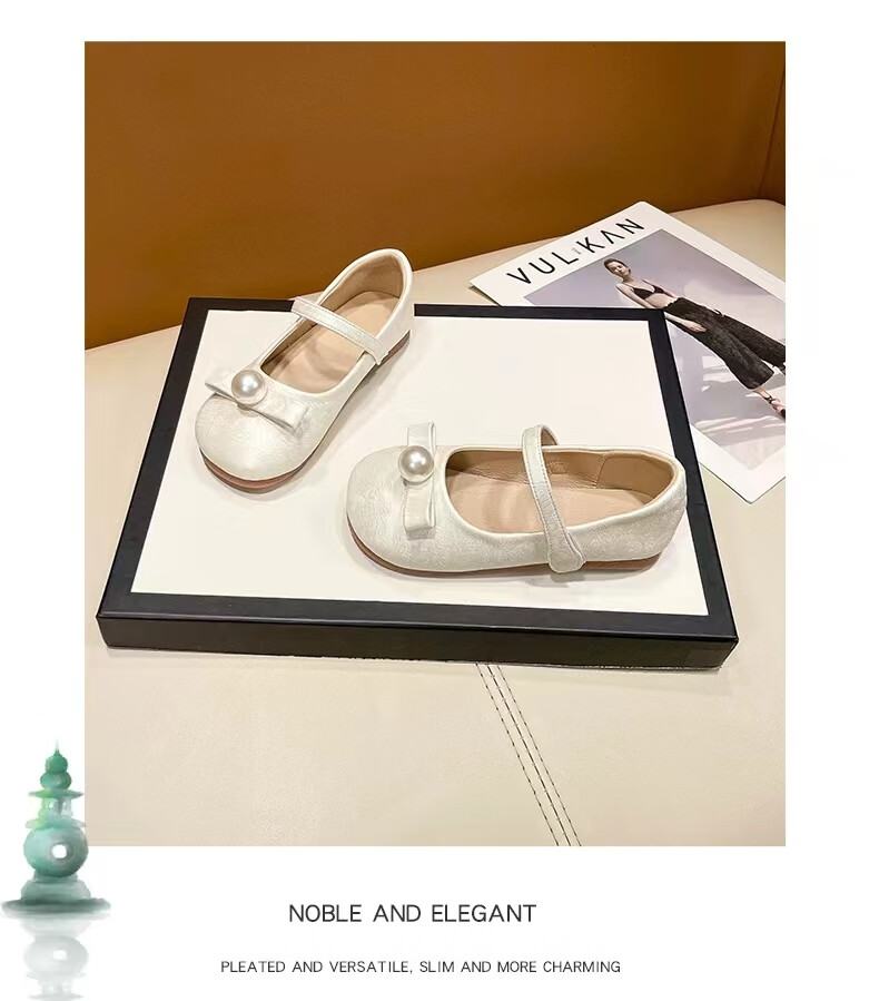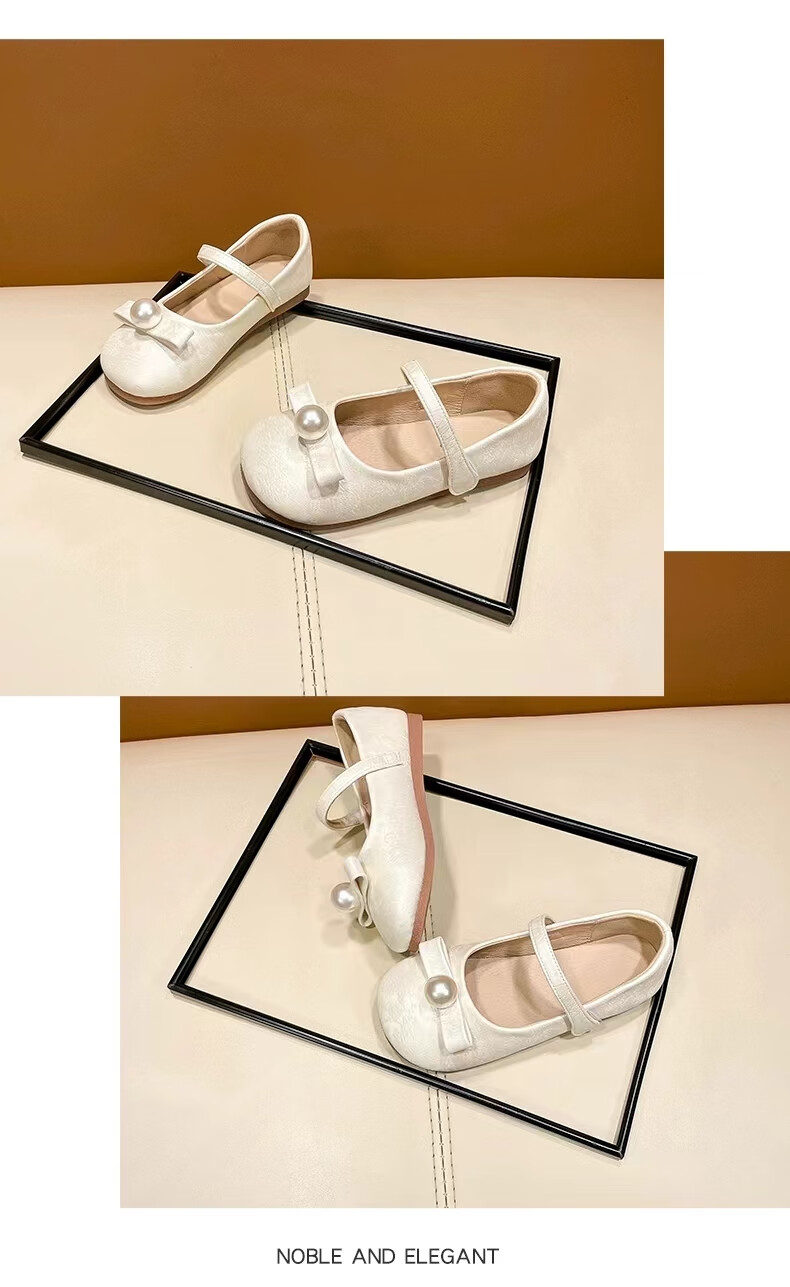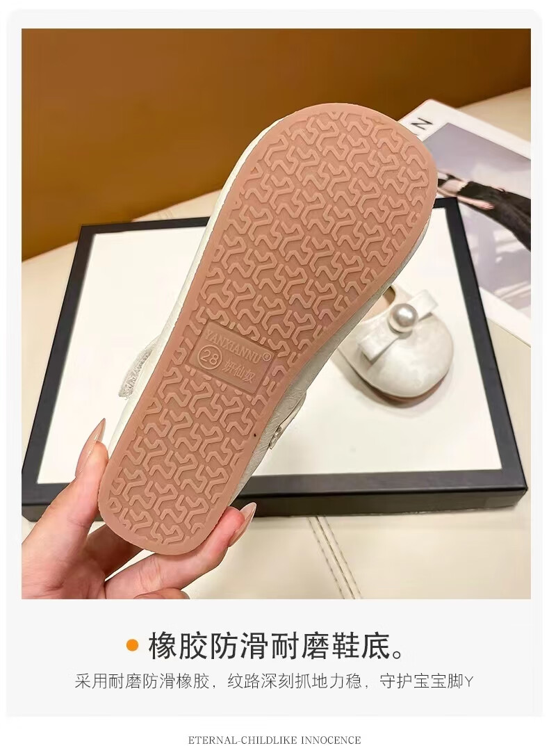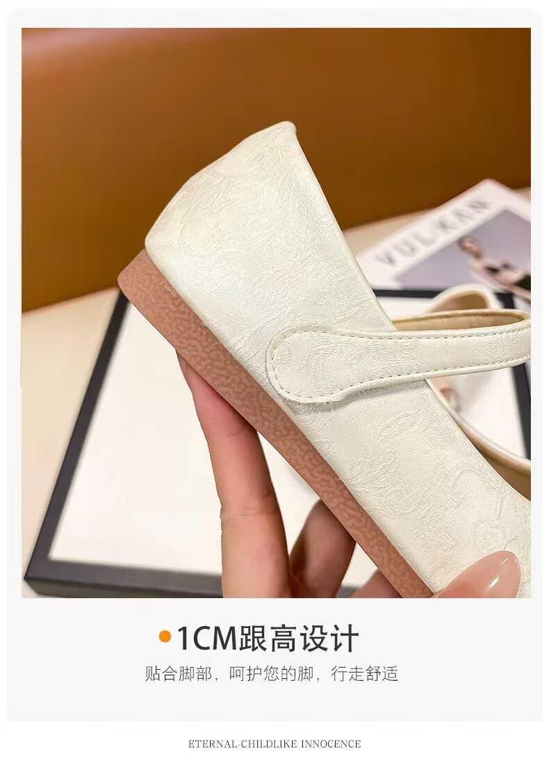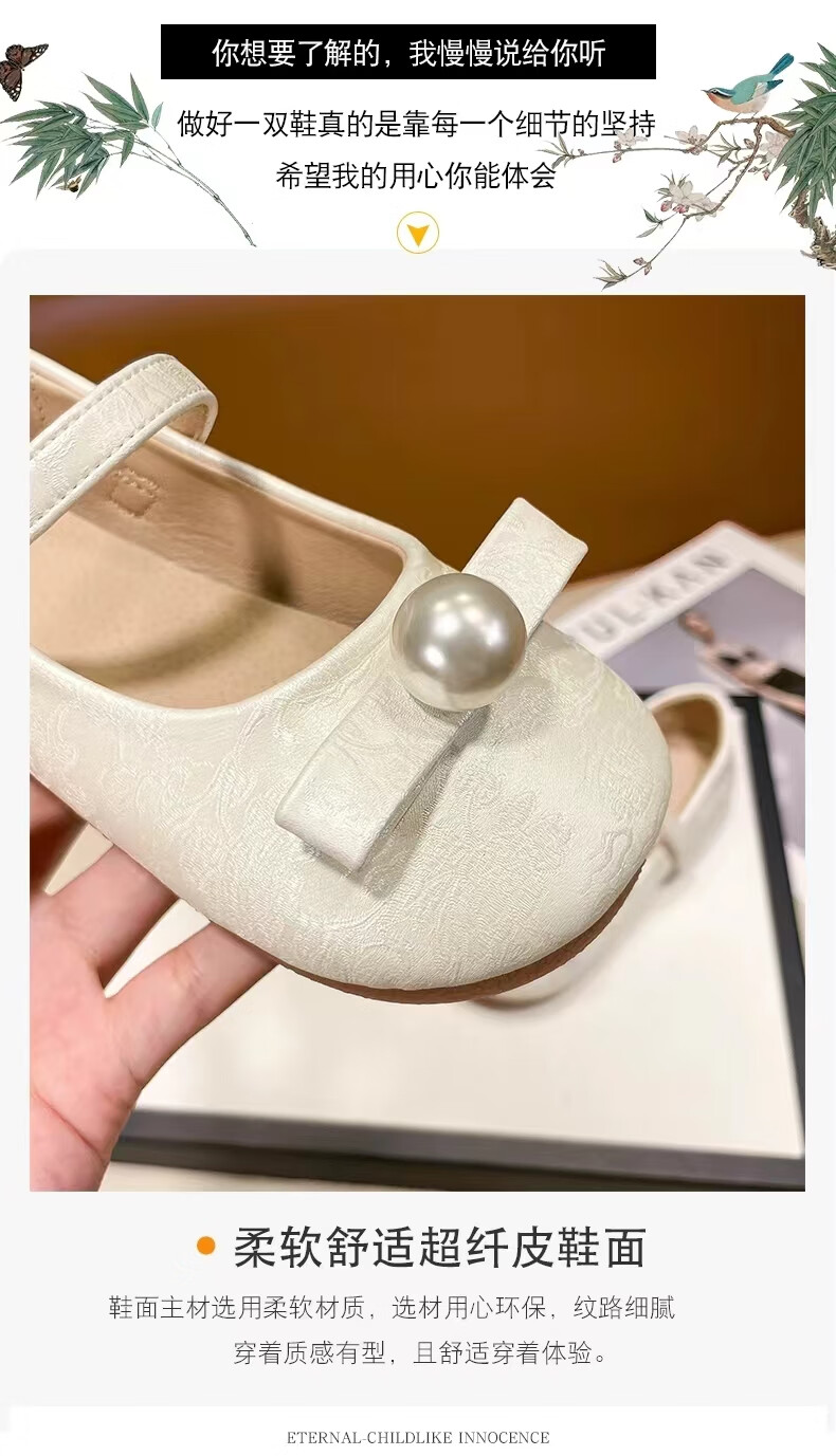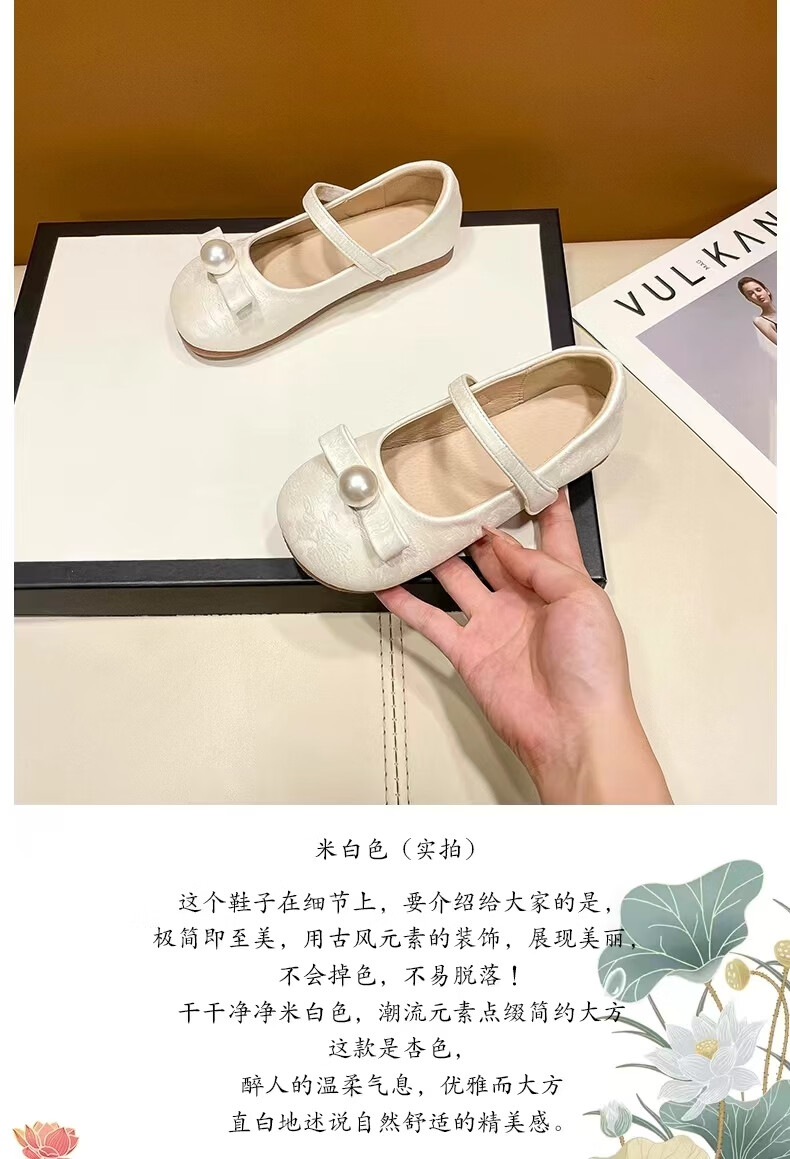 G.duck小黄鸭女童公主鞋2024新款春秋儿童小皮鞋女宝宝软底国风汉服鞋 米白色 (脚长加1cm下单哦) 35 (内长21.4cm)