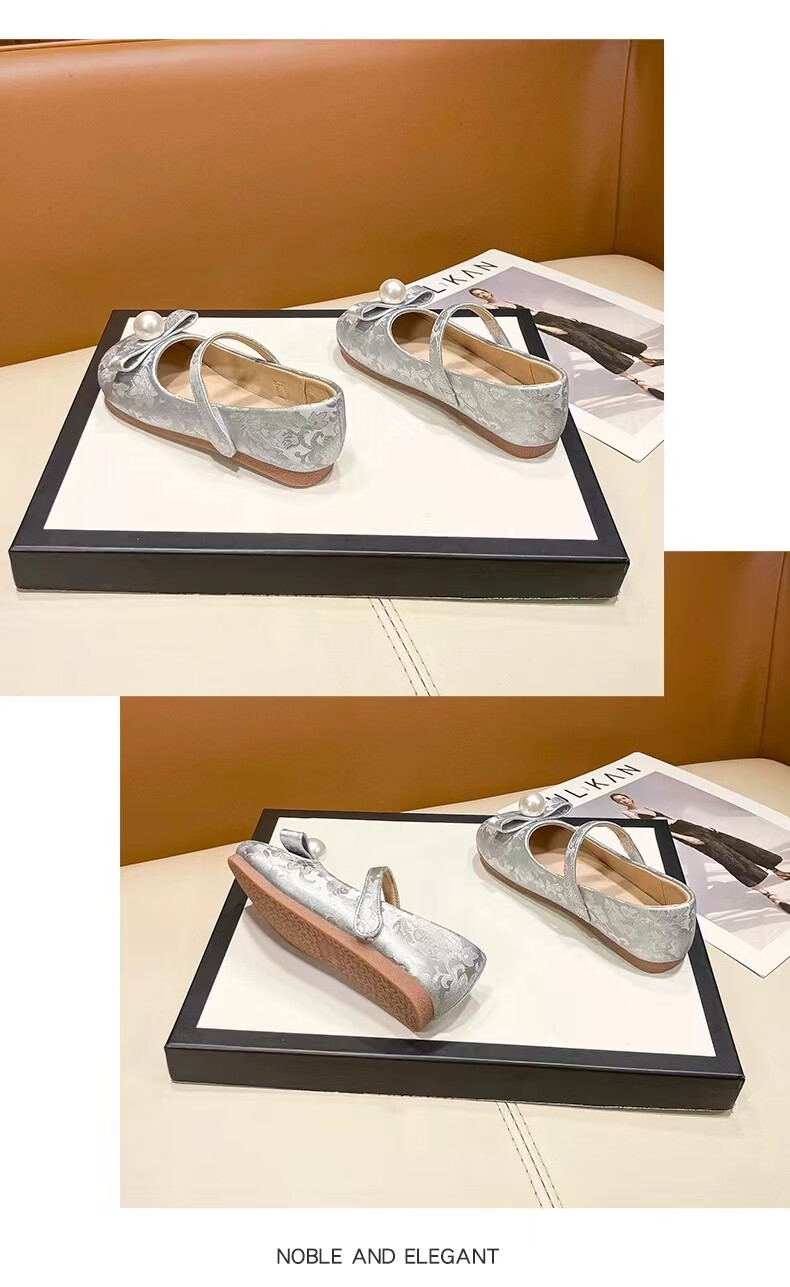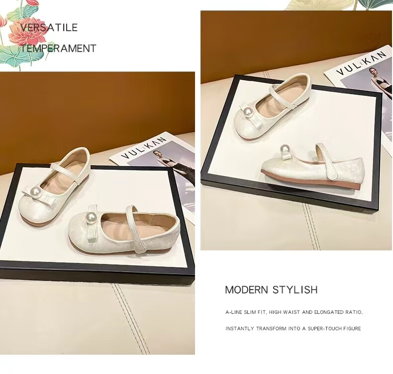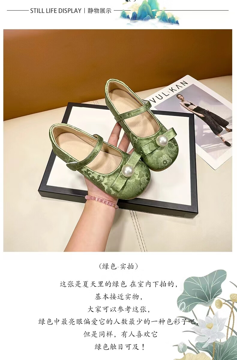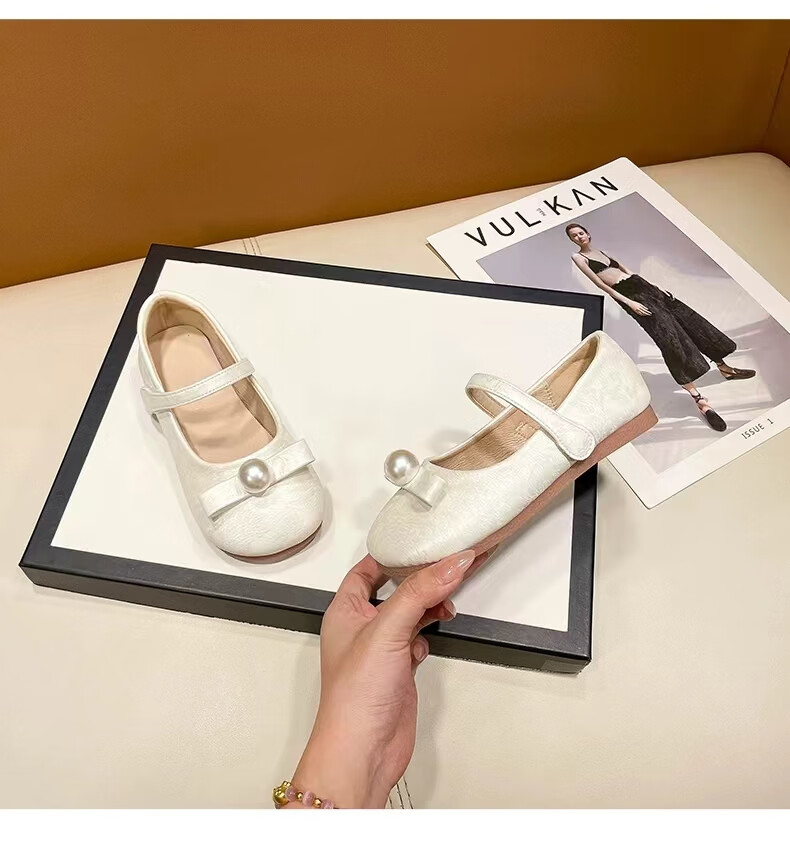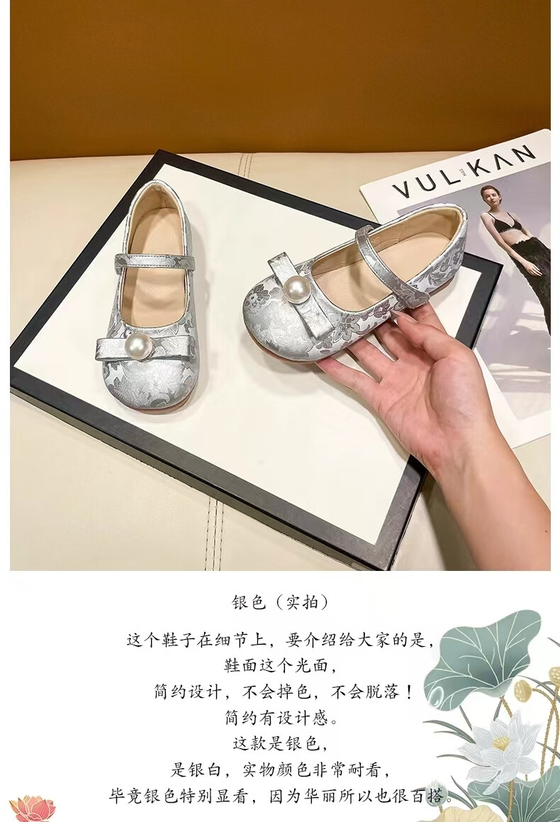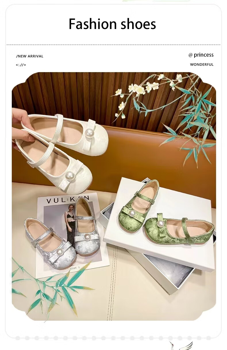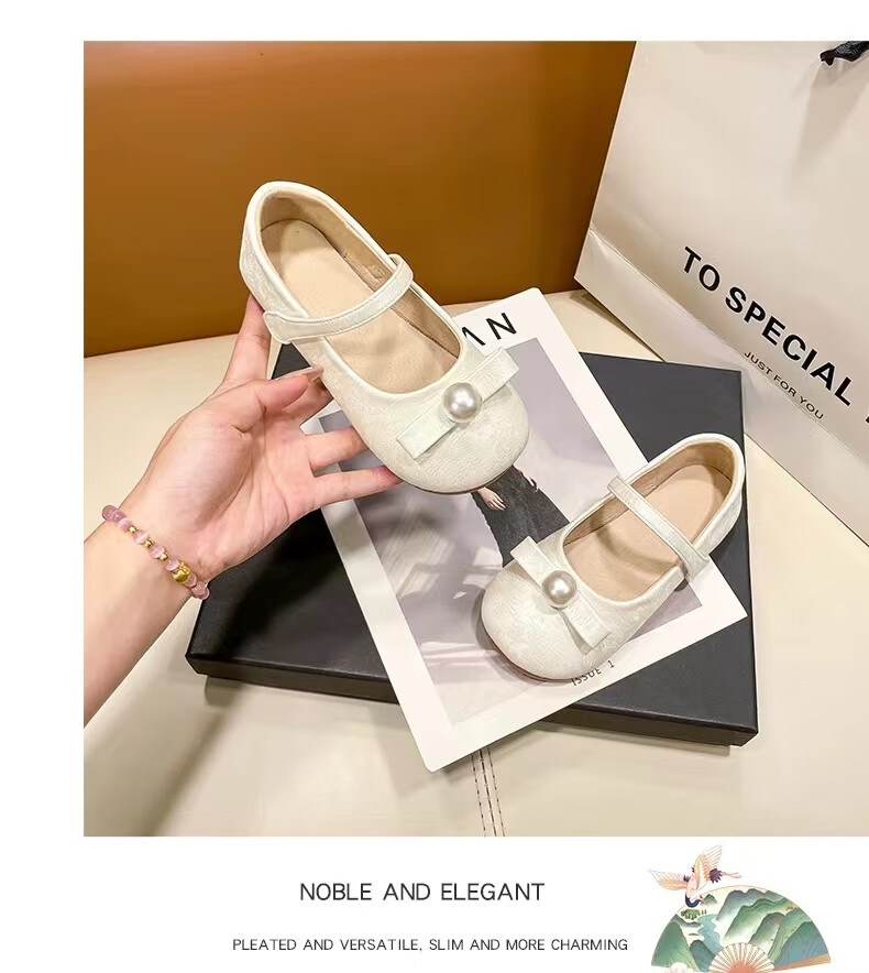 G.duck小黄鸭女童公主鞋2024新款春秋儿童小皮鞋女宝宝软底国风汉服鞋 米白色 (脚长加1cm下单哦) 35 (内长21.4cm)