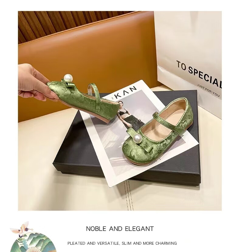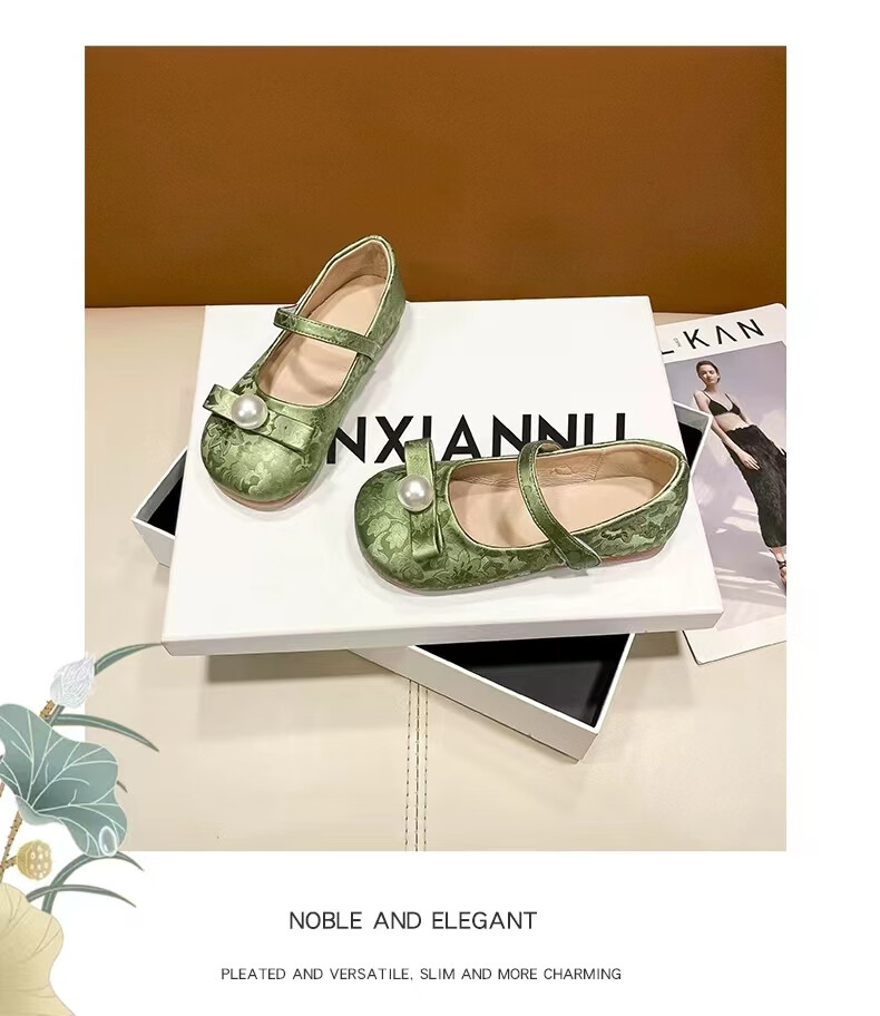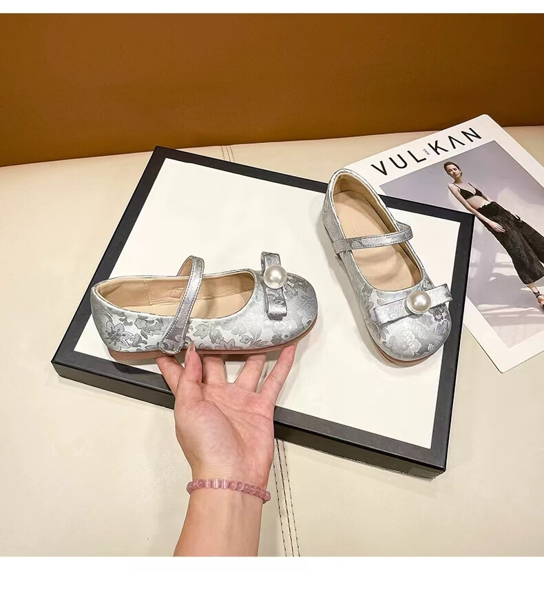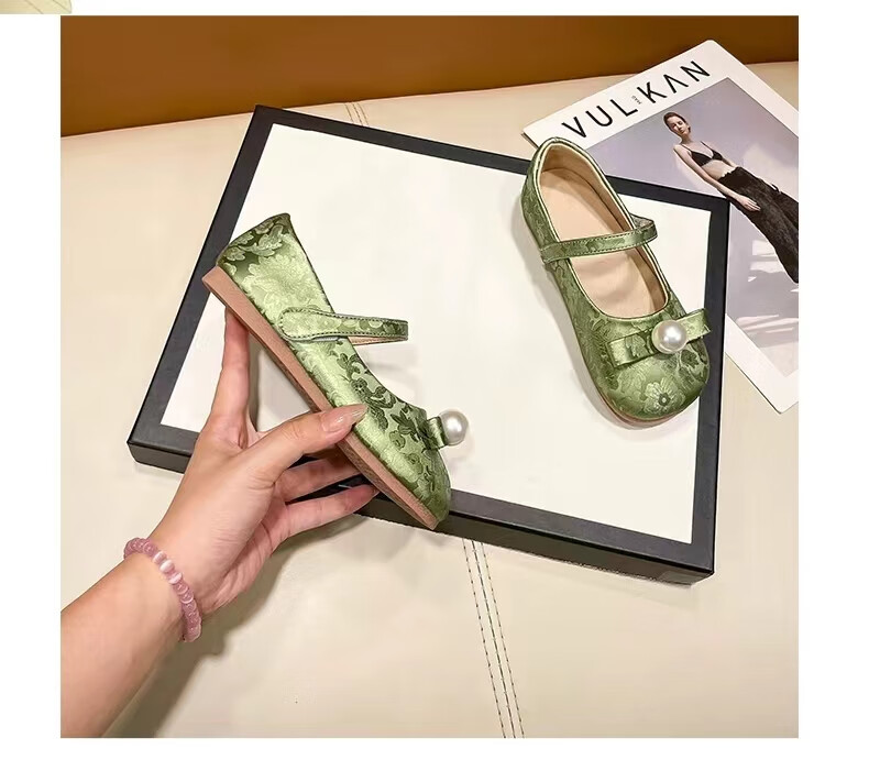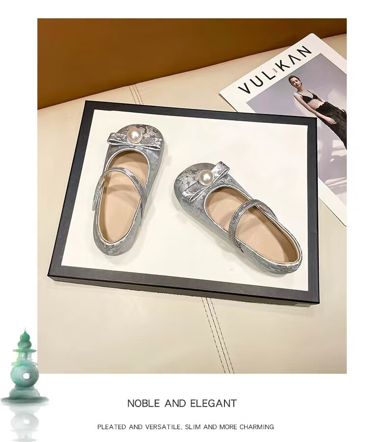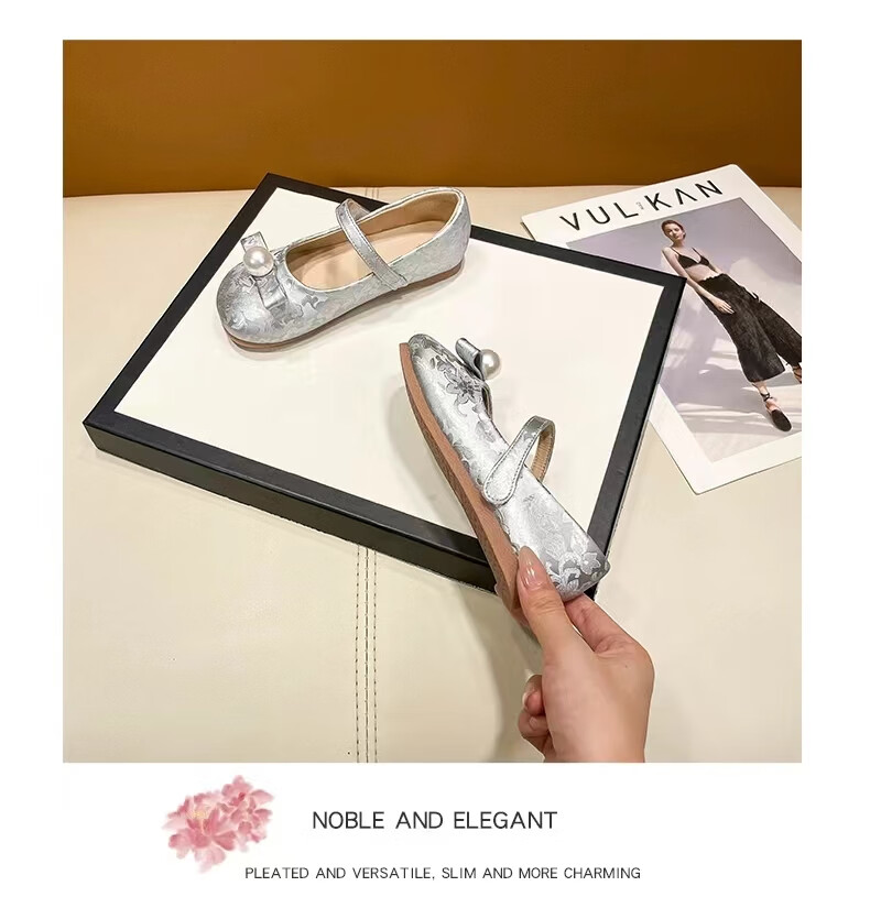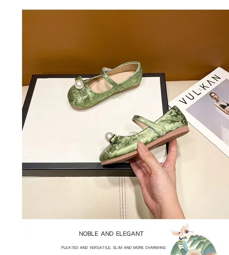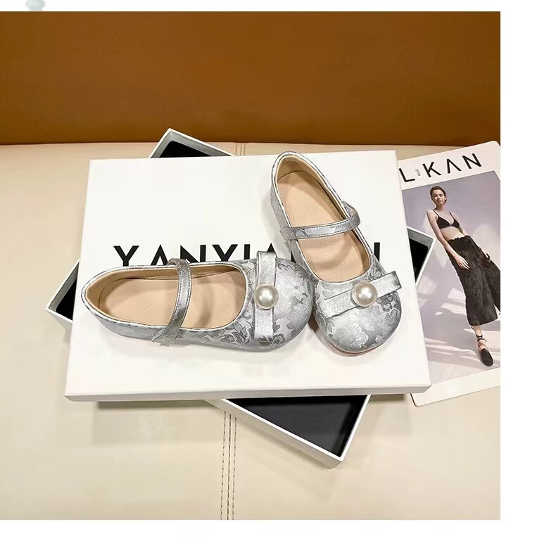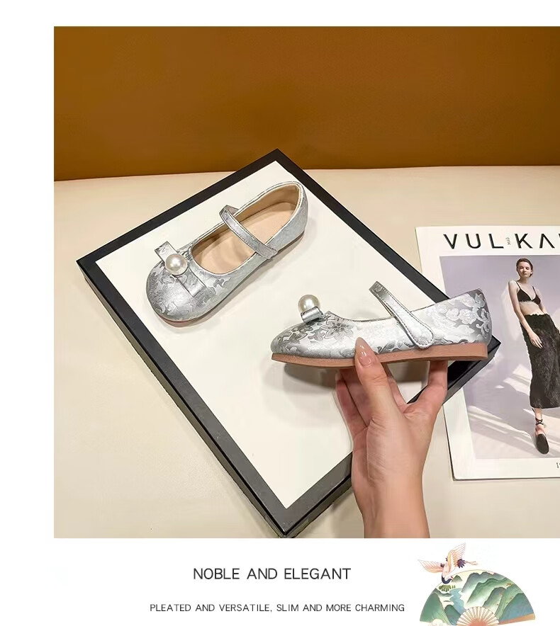 G.duck小黄鸭女童公主鞋2024新款春秋儿童小皮鞋女宝宝软底国风汉服鞋 米白色 (脚长加1cm下单哦) 35 (内长21.4cm)