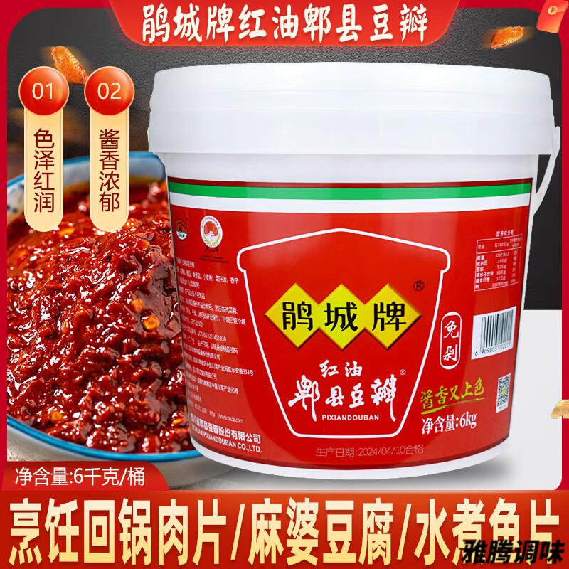 Juancheng brand red oil bean paste 6kg barreled commercial no-chop chili sauce stir-fry hot pot bean paste seasoning Juancheng