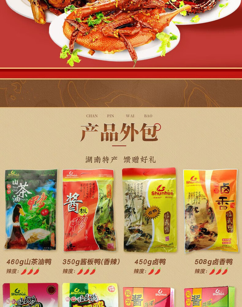 Shunhua sauce salted duck Hunan specialty Chenzhou Linwu duck camellia oil duck snacks braised cooked food elders + gift 350g spicy sauce salted duck (bag)