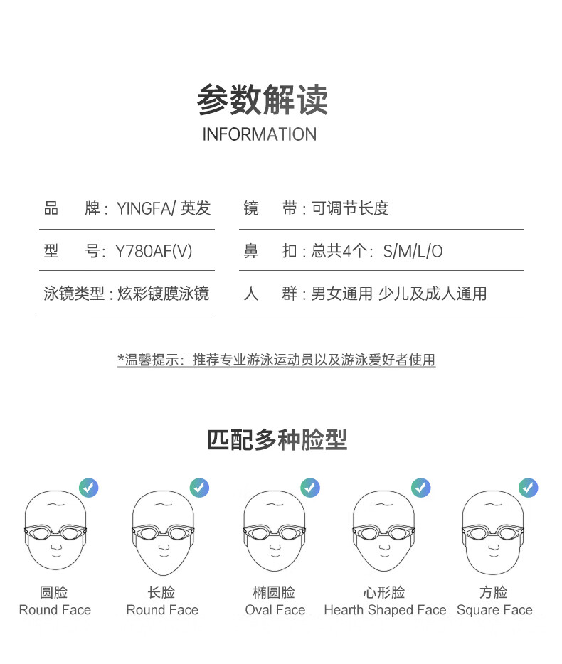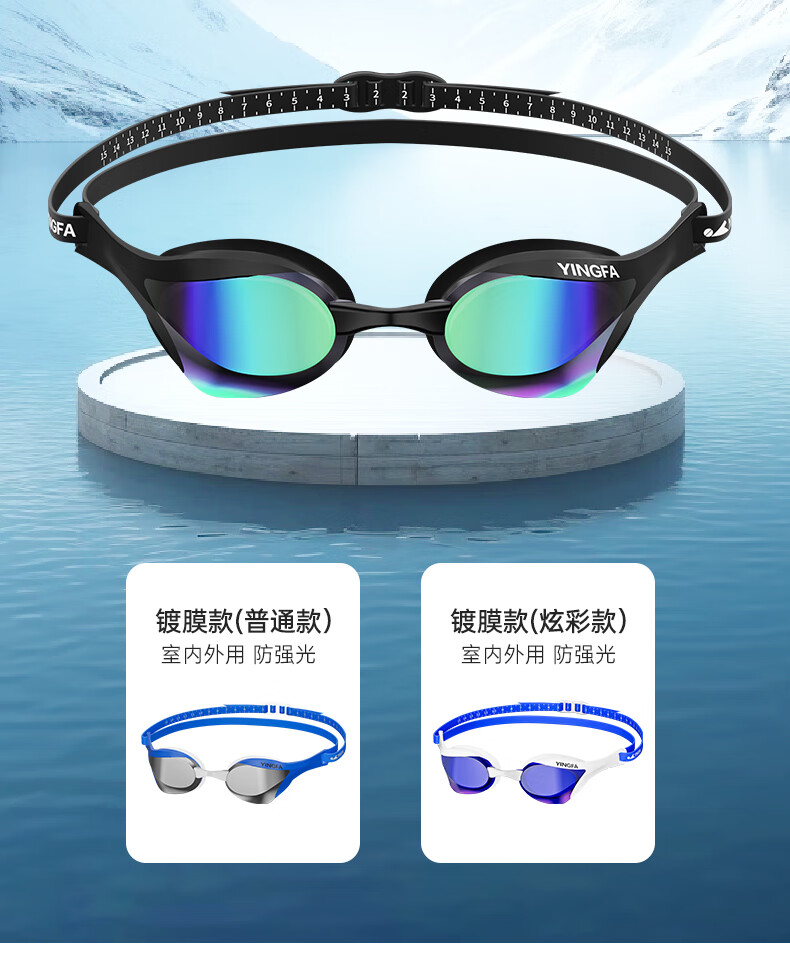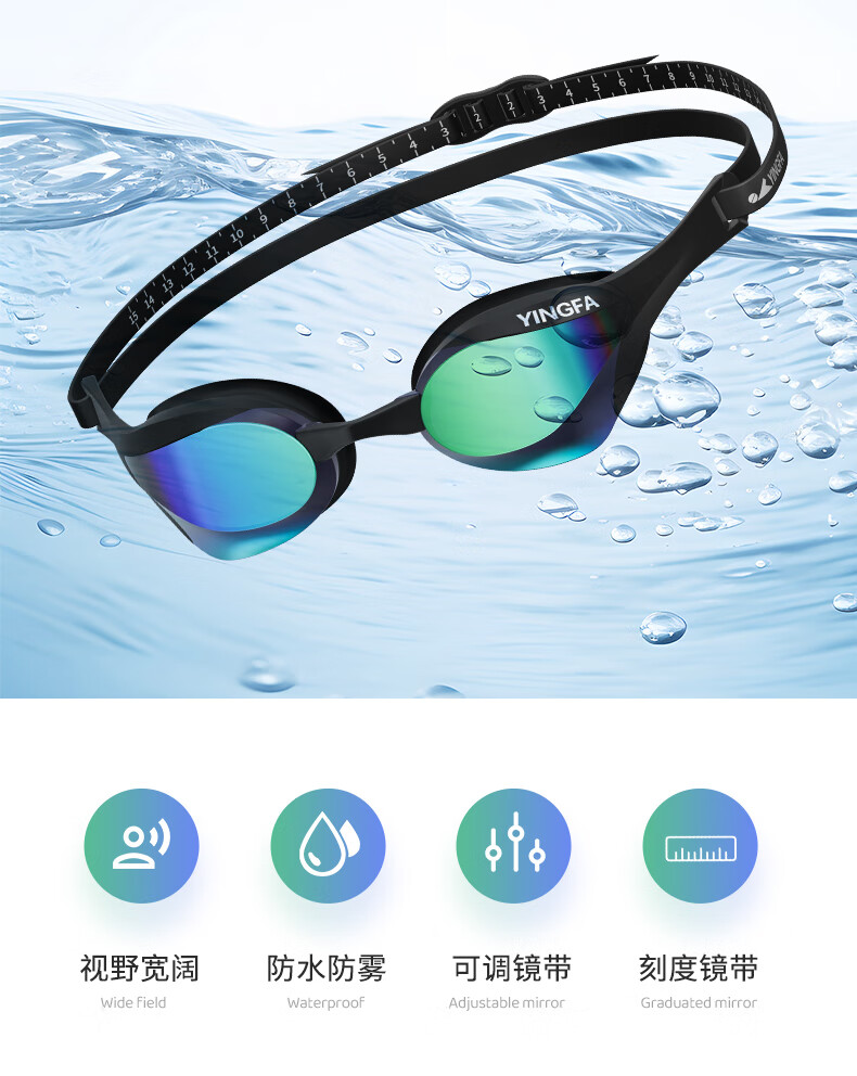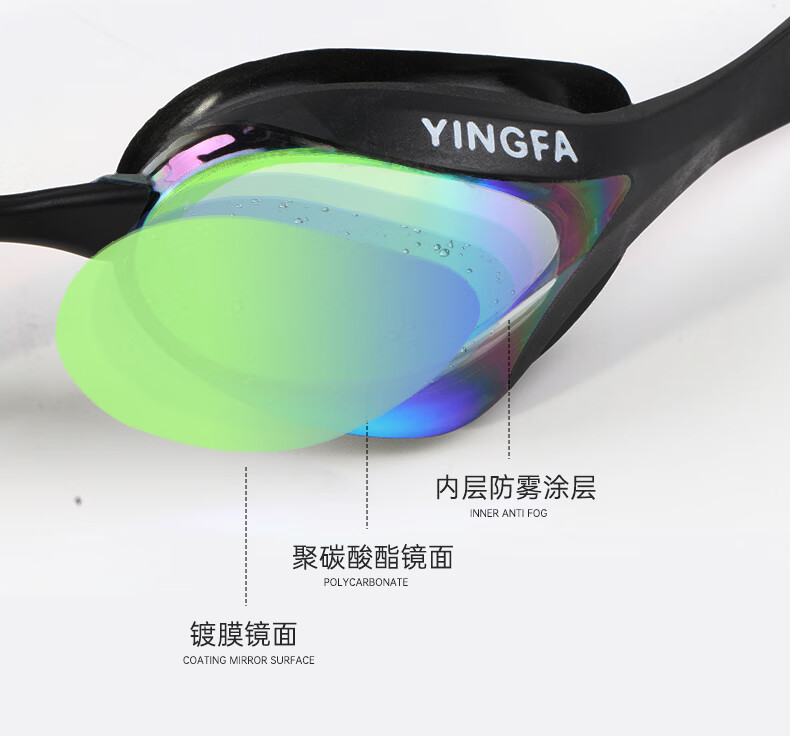 YINGFA Professional Competition Swimming Goggles HD Anti-fog Men's and Women's Cobra Training Competition Blade Coated Swimming Goggles Black