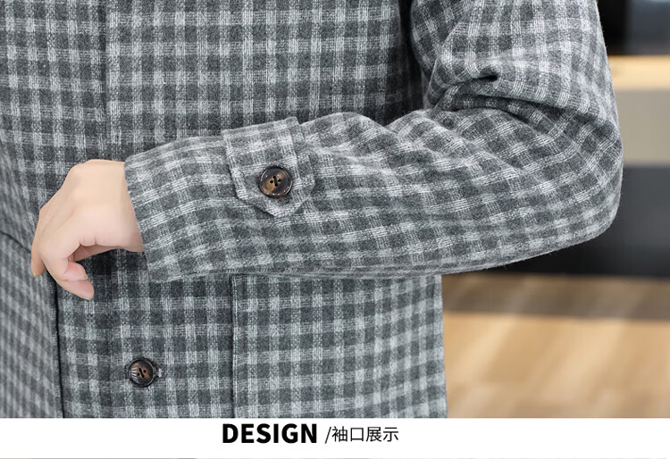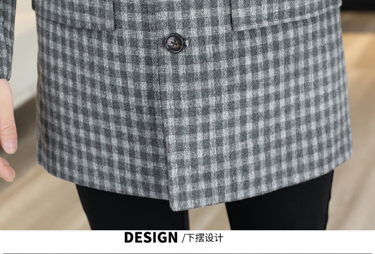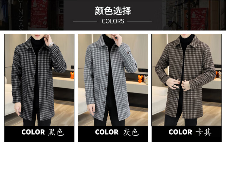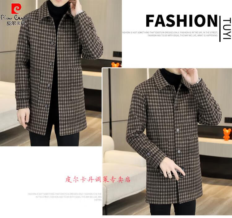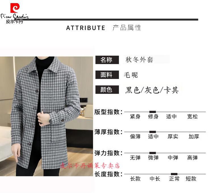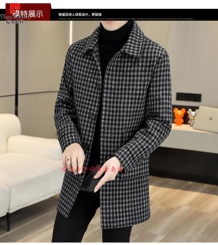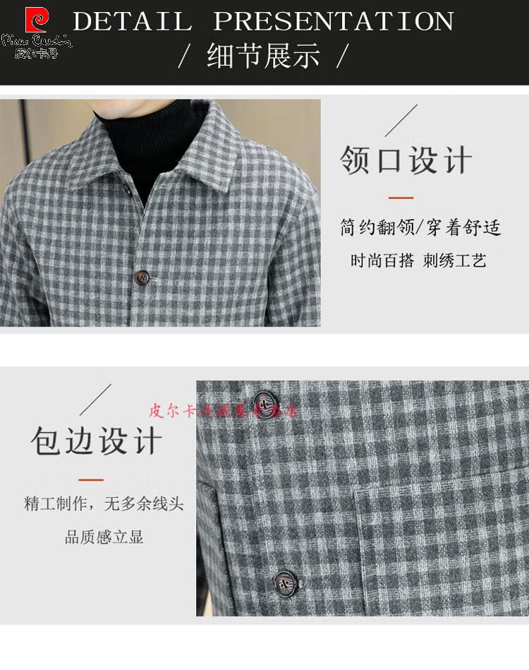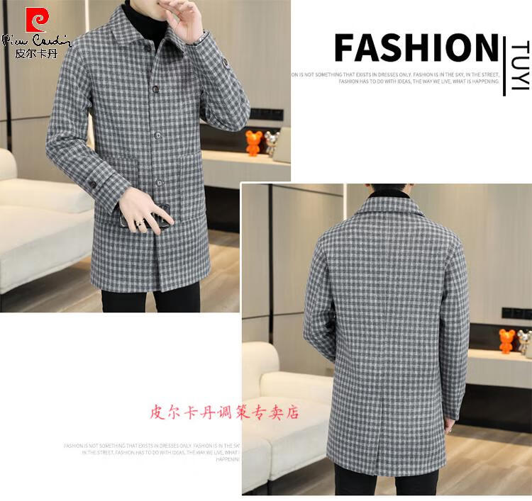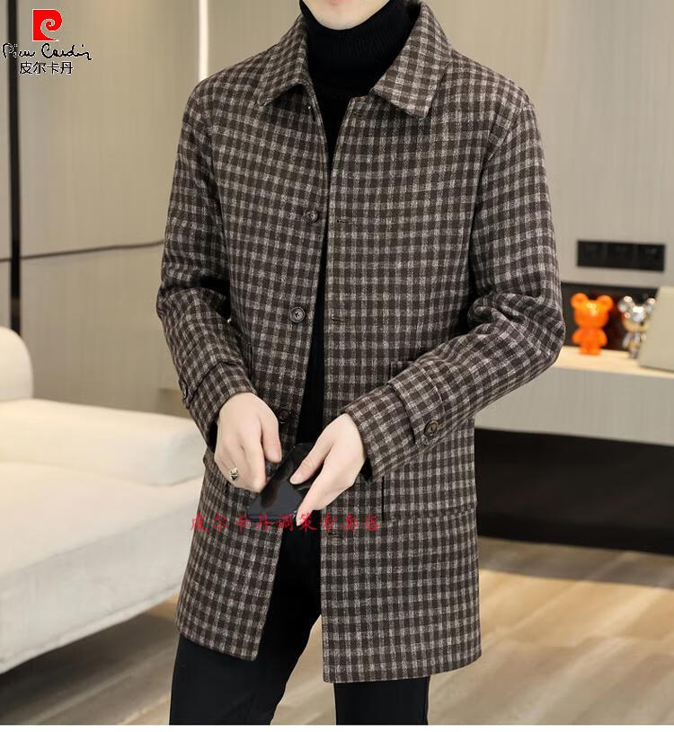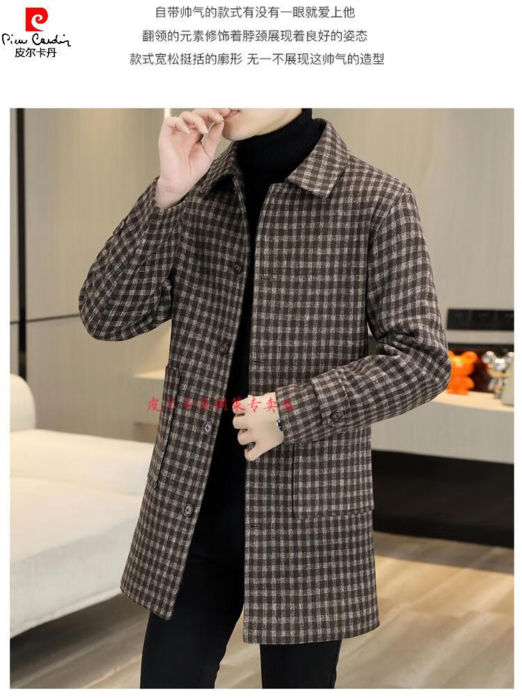 Pierre Cardin Herren Wollmantel kariert Winter High-End Nizi Windjacke Mittellanger Wollmantel im britischen Stil 1005 schwarz Baumwolle Stil XL