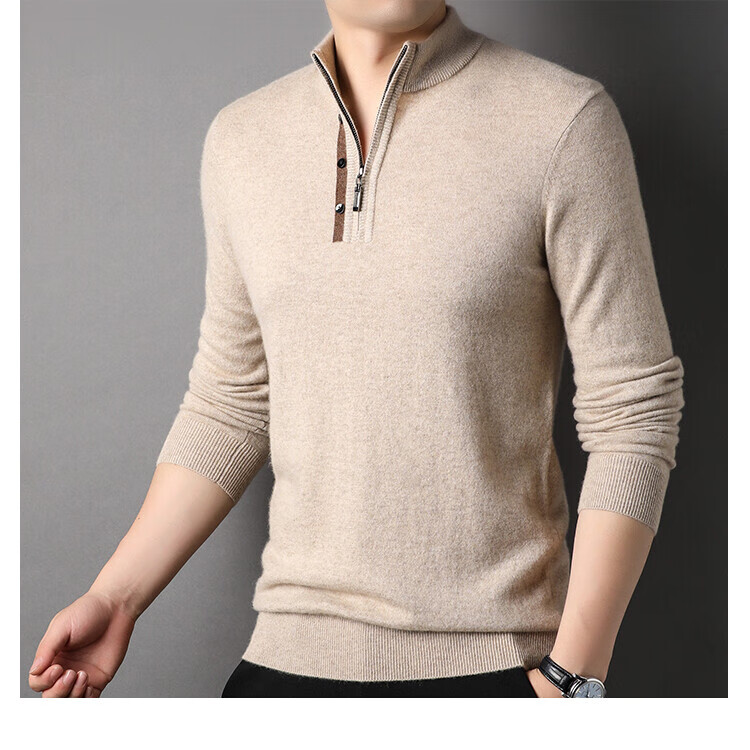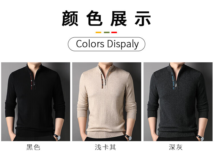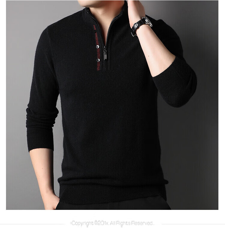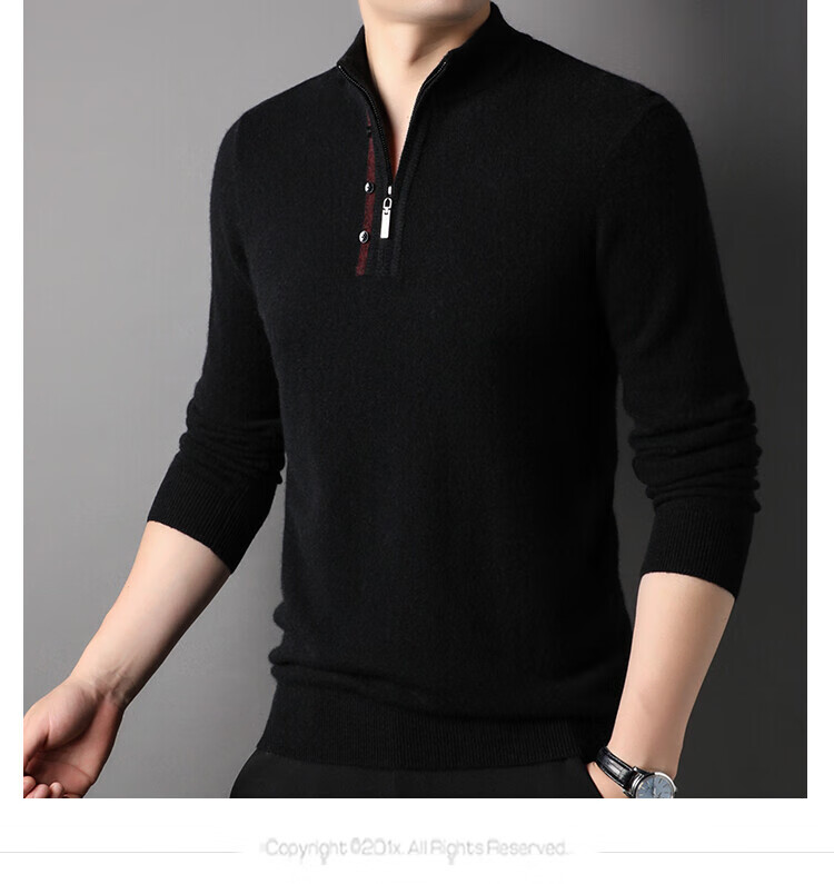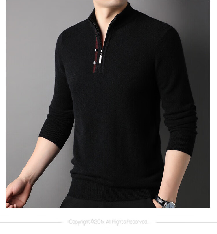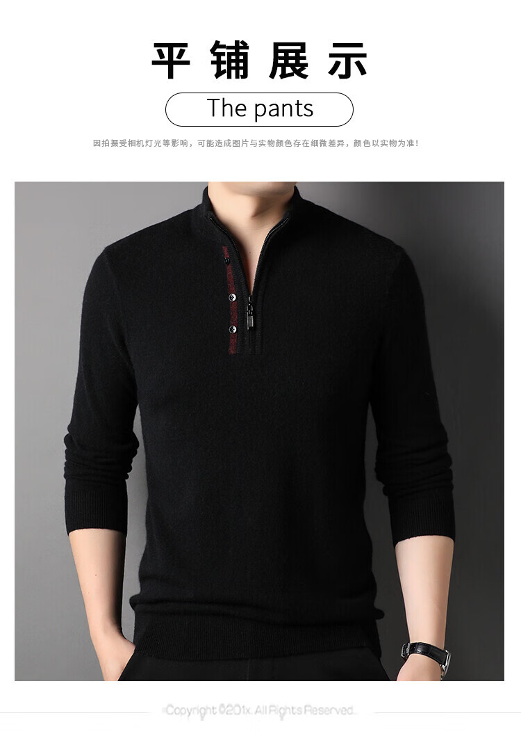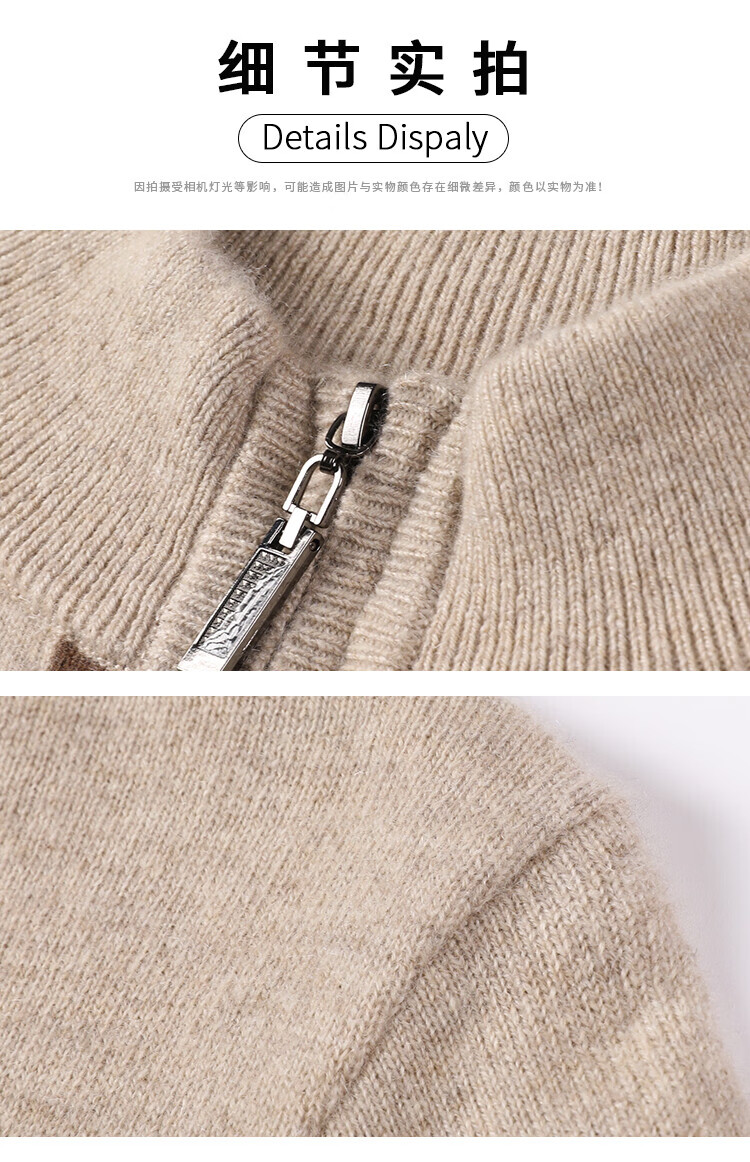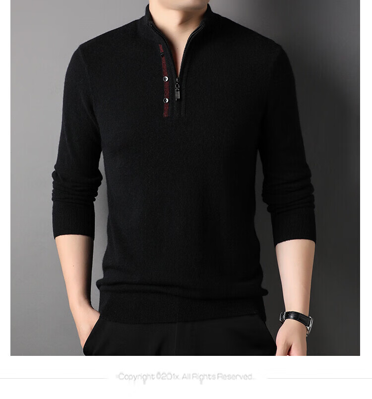 恒源祥(HYX)羊绒衫男100纯羊绒保暖时尚拉链半高领男士高端羊毛毛衣男装 黑色 105